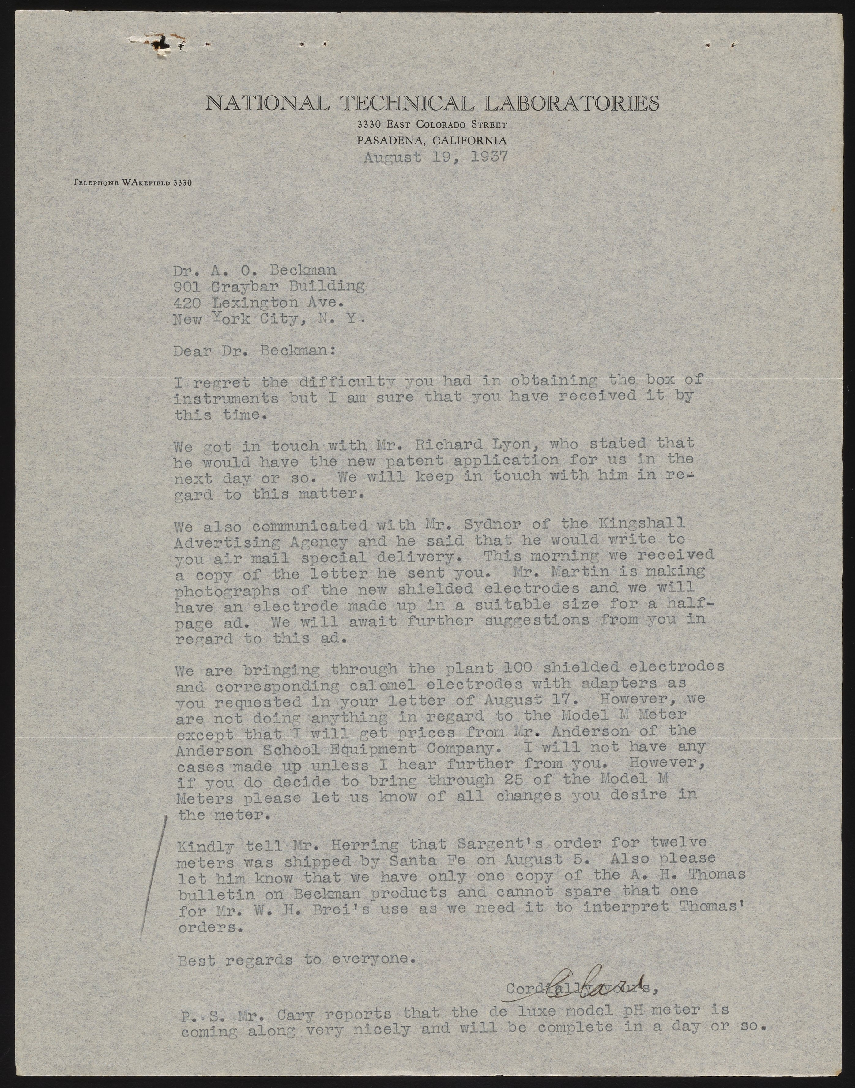 Letter from Clare Evans to Arnold O. Beckman