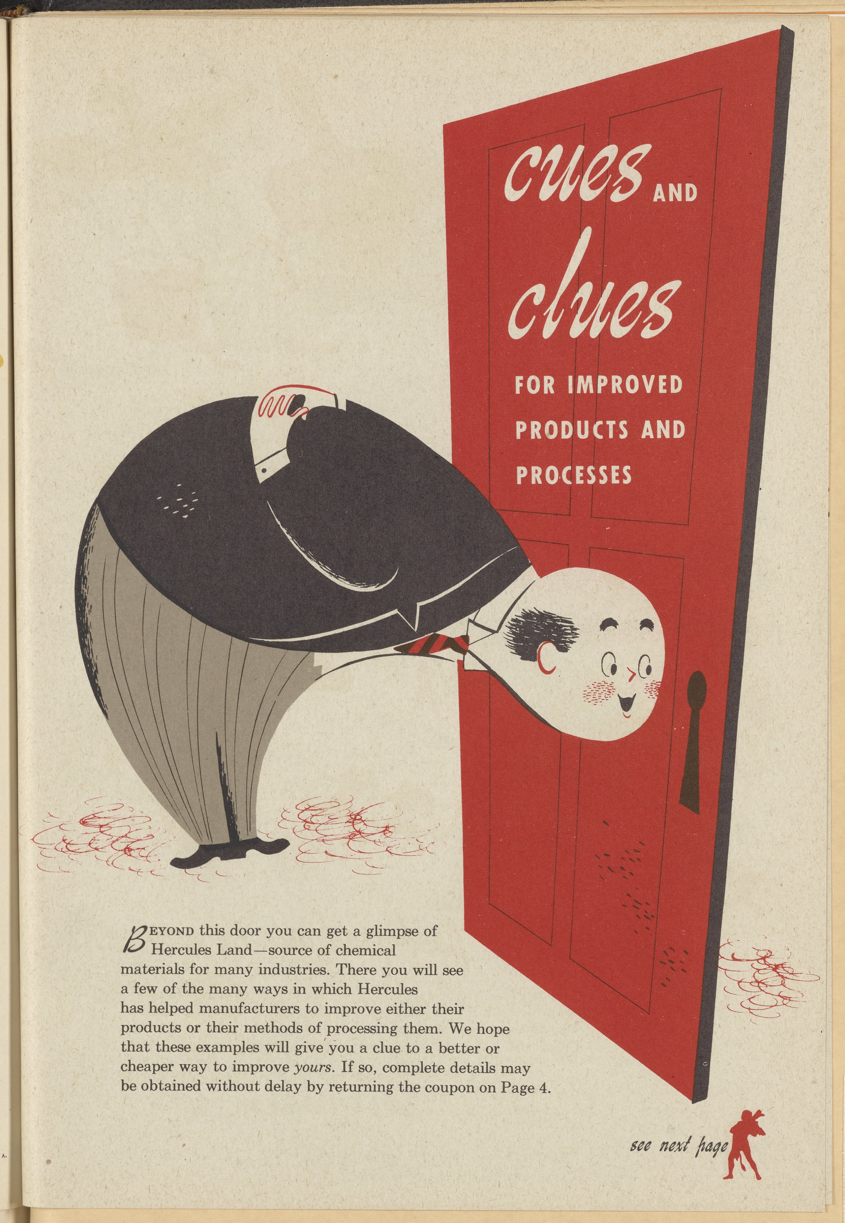Hercules Incorporated. “Cues and Clues for Improved Products and Processes.” 1946 Hercules Advertisements, 1946. Records of Hercules Incorporated, Volume 1946. Science History Institute. Philadelphia. https://digital.sciencehistory.org/works/2z3ht7h.
