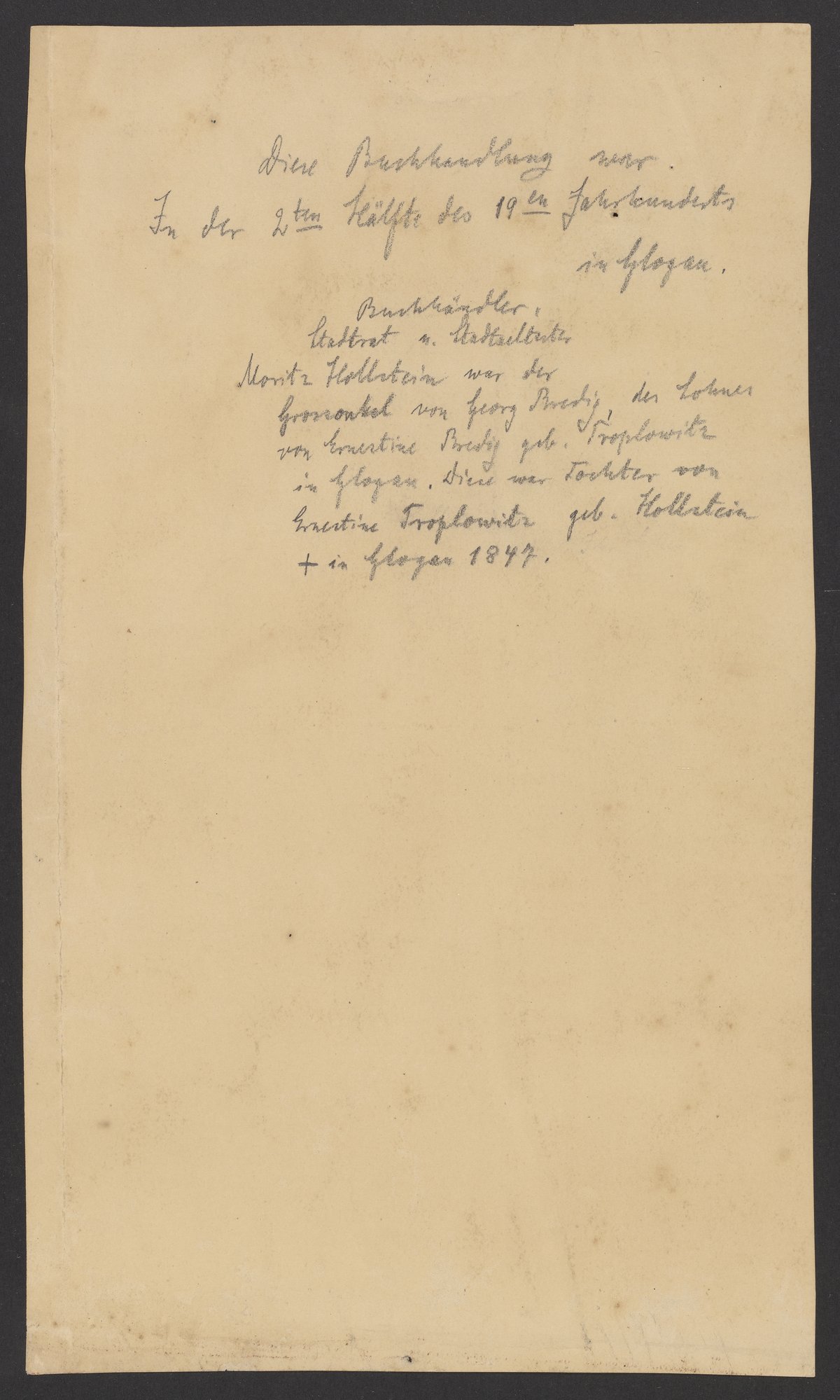 Small JPG1200 x 2001px — 358 KBLarge JPG2880 x 4802px — 2.0 MBFull-sized JPG3872 x 6456px — 3.4 MBOriginal fileTIFF — 3872 x 6456px — 71.6 MBWatercolor illustration of the Moritz Hollstein Bookstore. The bookstore was located in Glogow, Germany until the late 19th century. Bookseller and City Councilman, Moritz Hollstein was the great uncle of Georg Bredig (1868-1944).