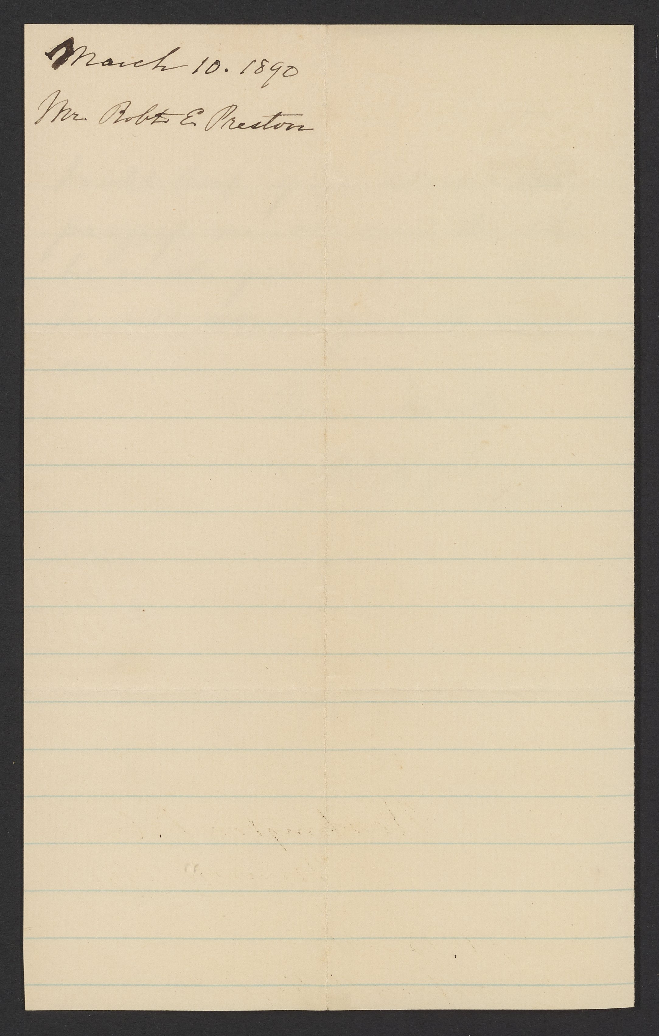 Letter from R.E. Preston to Margaret M. Booth, March 10, 1890