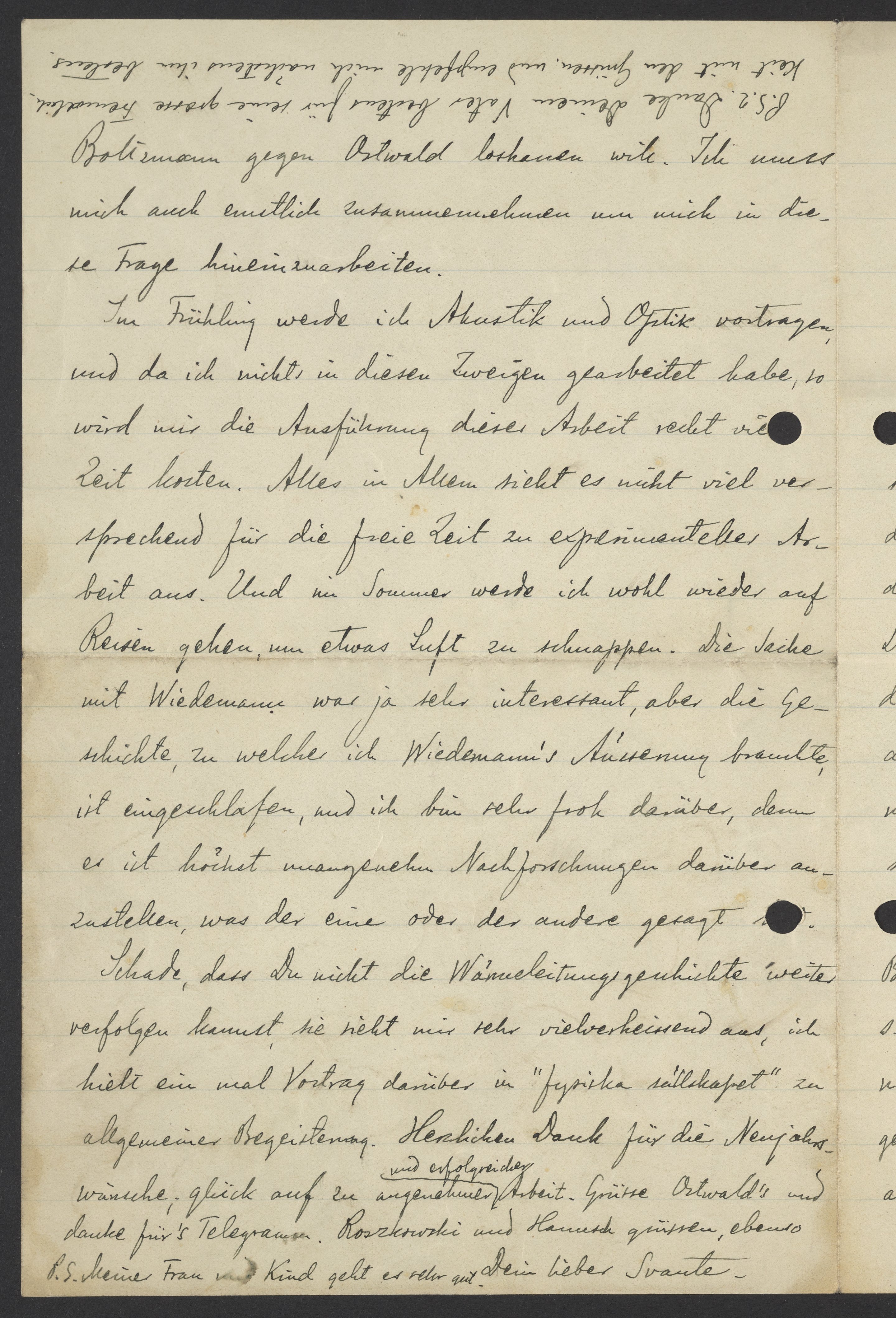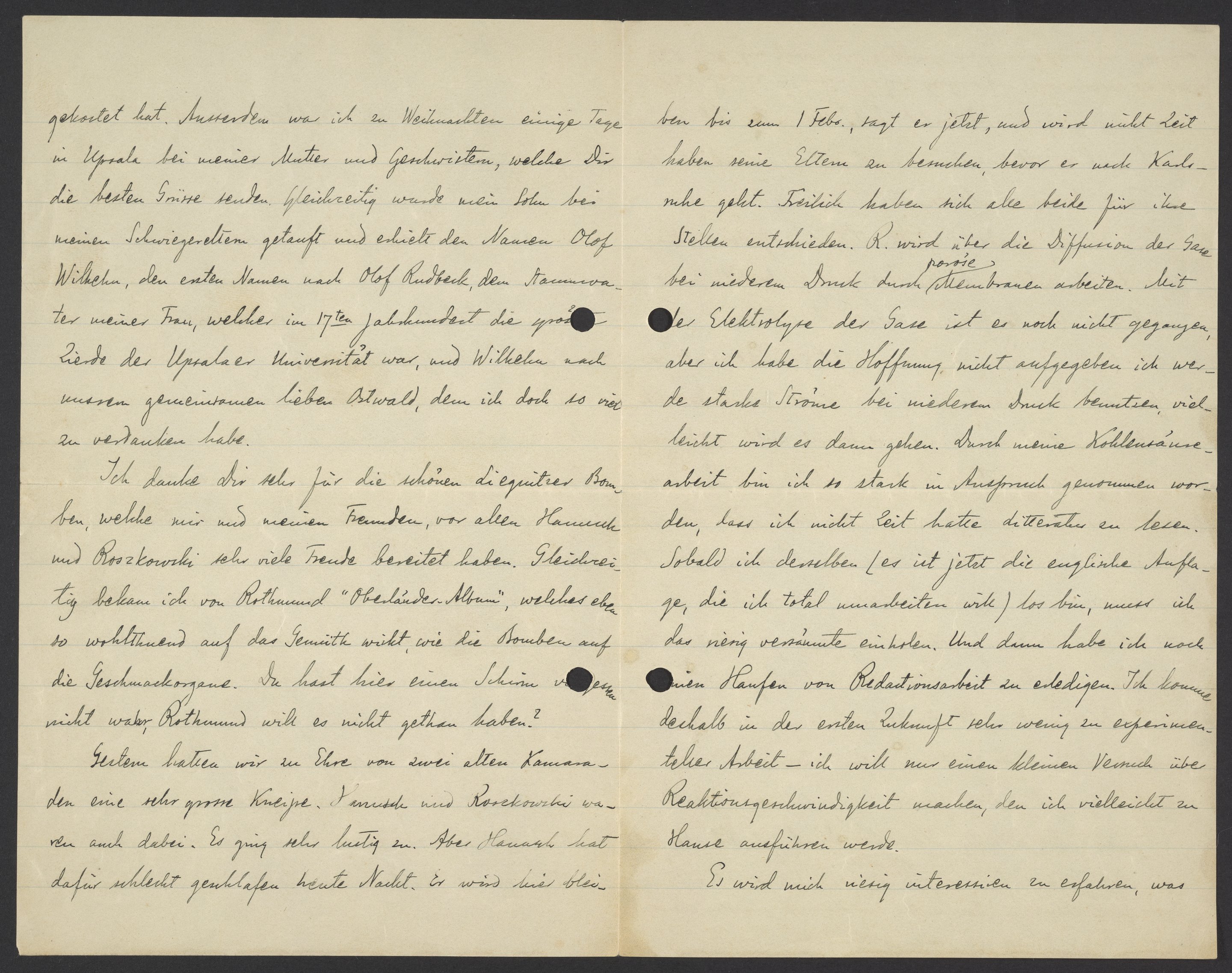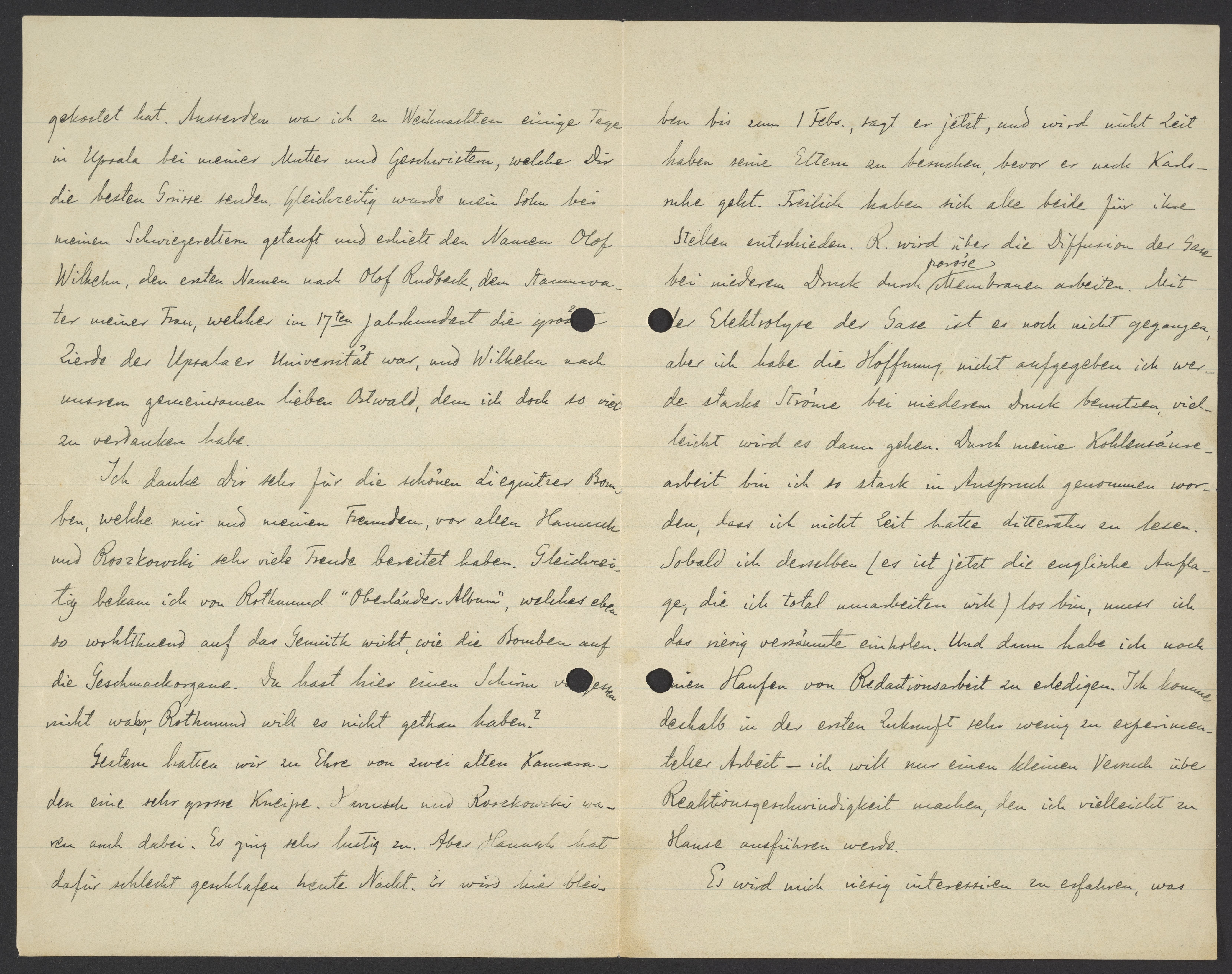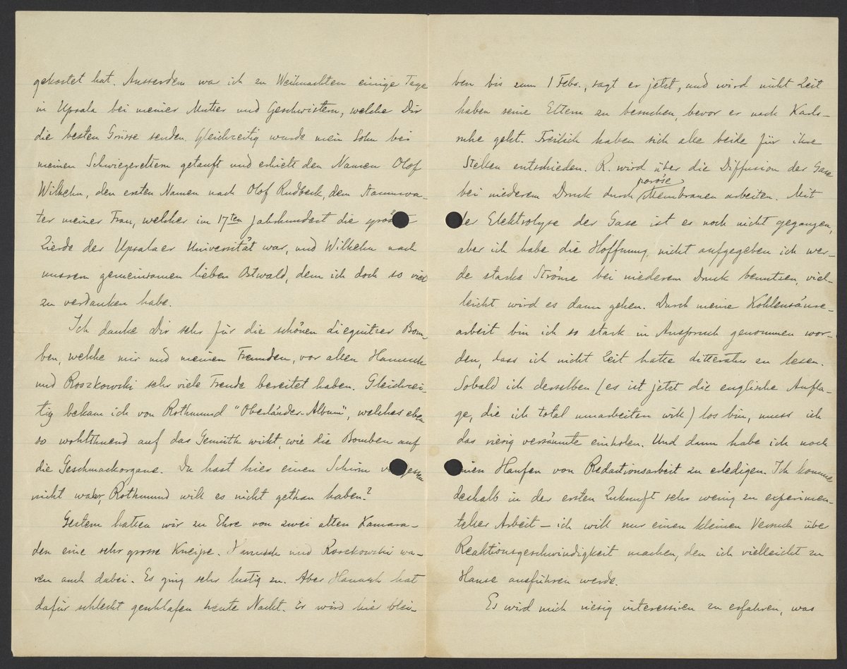 Letter from Svante Arrhenius to Georg Bredig, January 1896