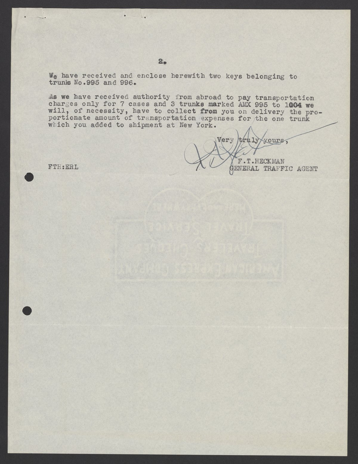 Letter from American Express Company to Max Bredig, October 8, 1937