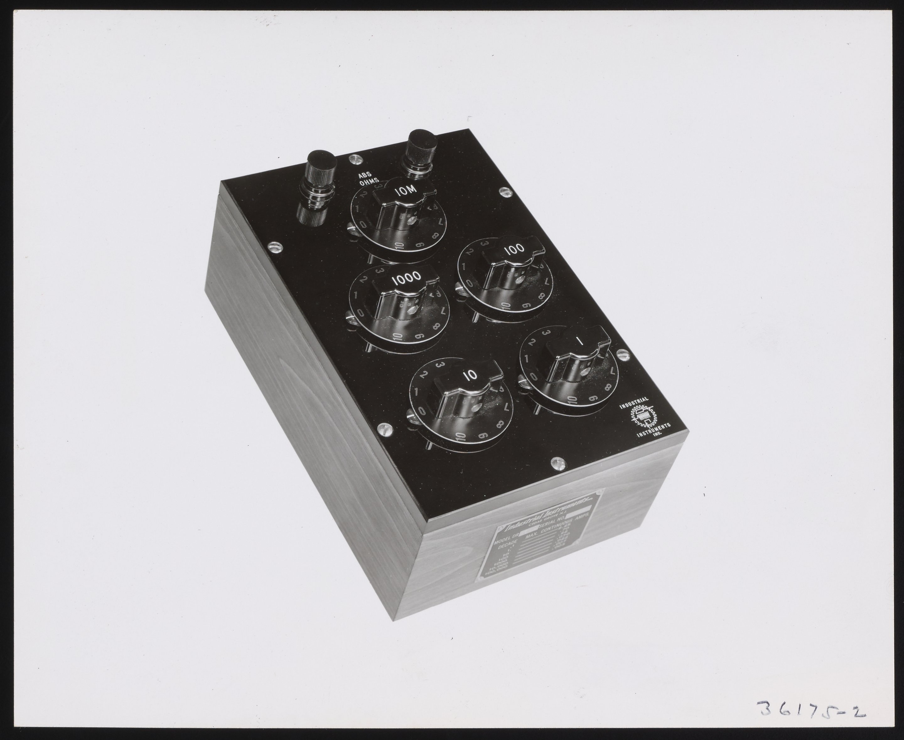 Commercial Photographic Company. “Industrial Instruments Type DR51D Decade Resistance,” 1950–1969. Beckman Historical Collection, Box 79. Science History Institute. Philadelphia. https://digital.sciencehistory.org/works/37720c78r.