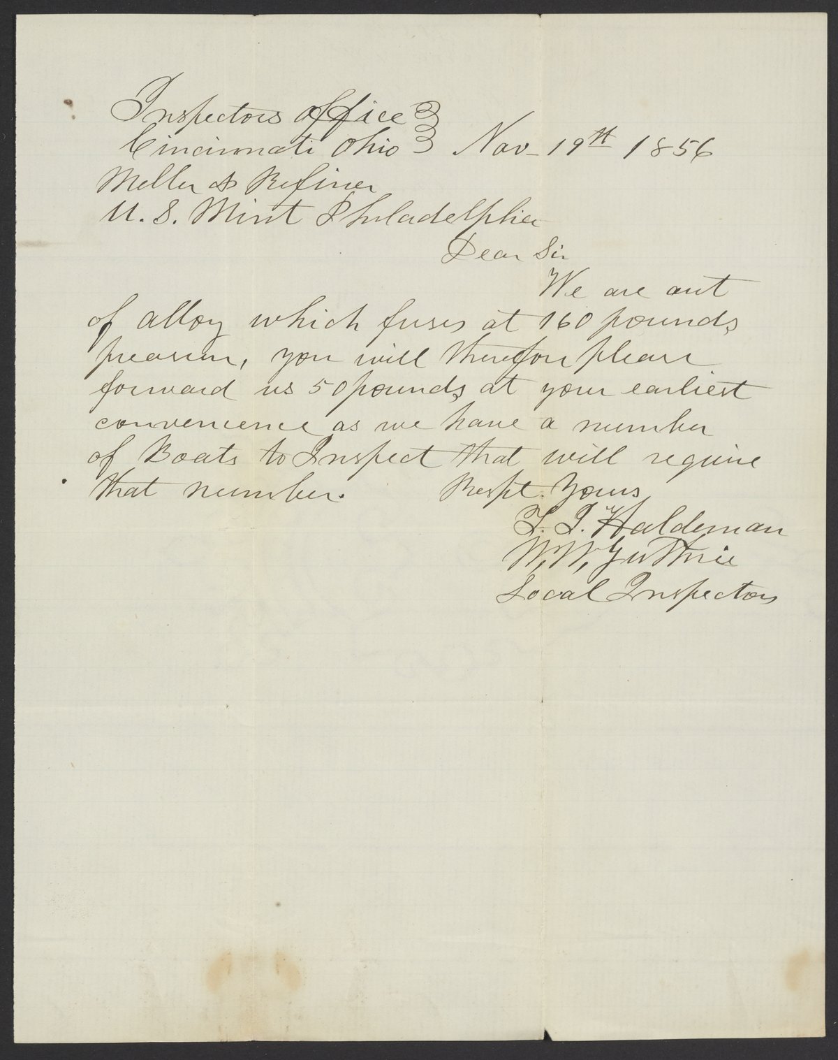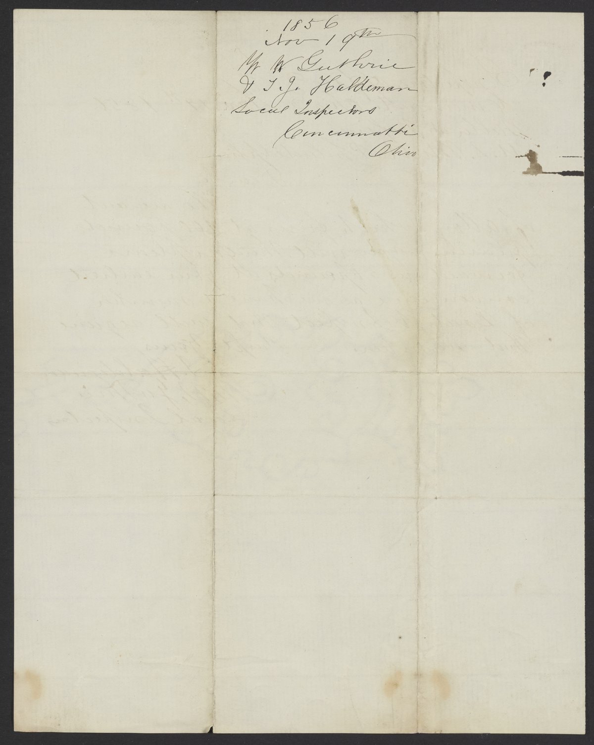 Letter from Guthrie and Haldeman to James Curtis Booth, November 19, 1856