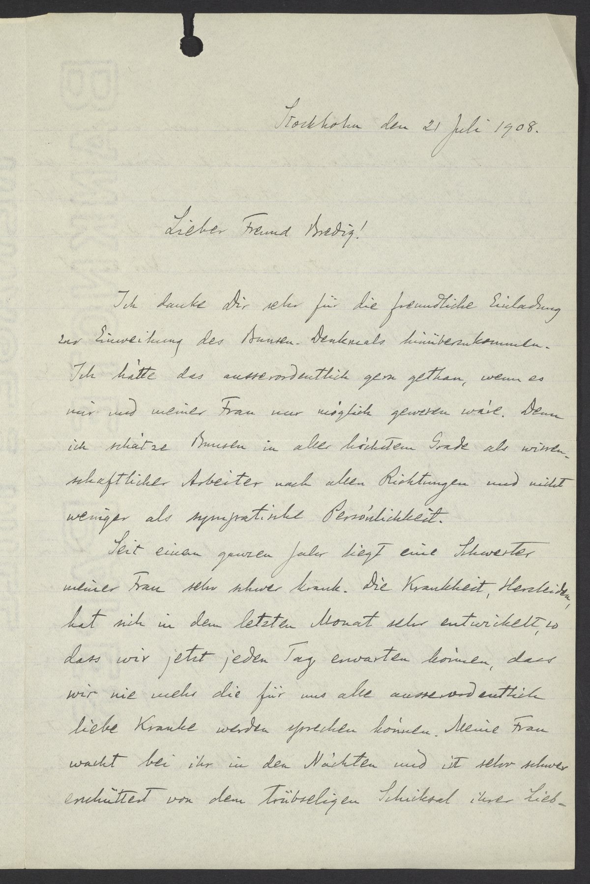 Letter from Svante Arrhenius to Georg Bredig, July 21, 1908