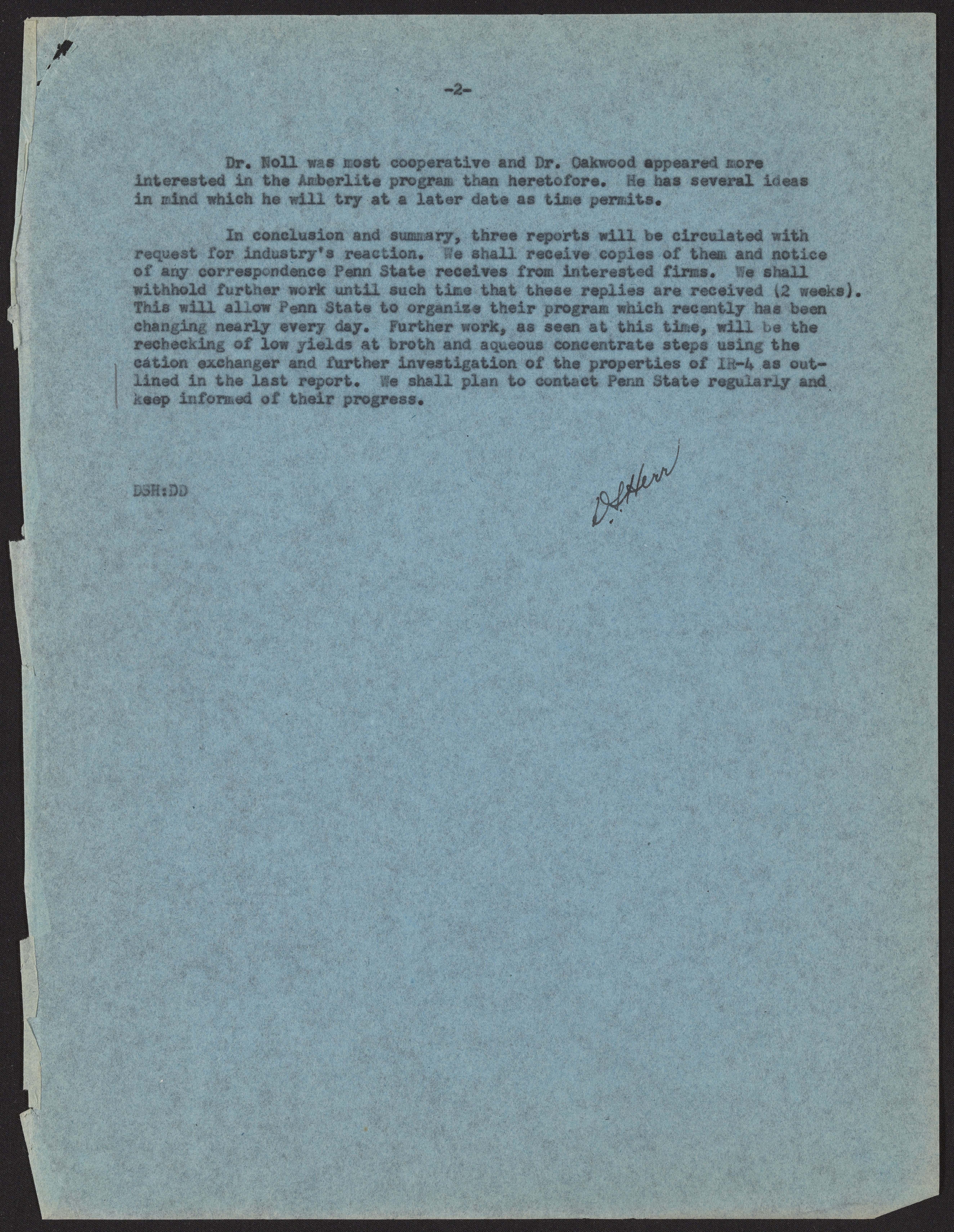 Report written by Donald S. Herr (1915-2003) on the future of the Amberlite I. E. R. penicillin program.