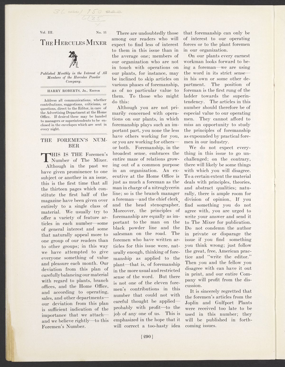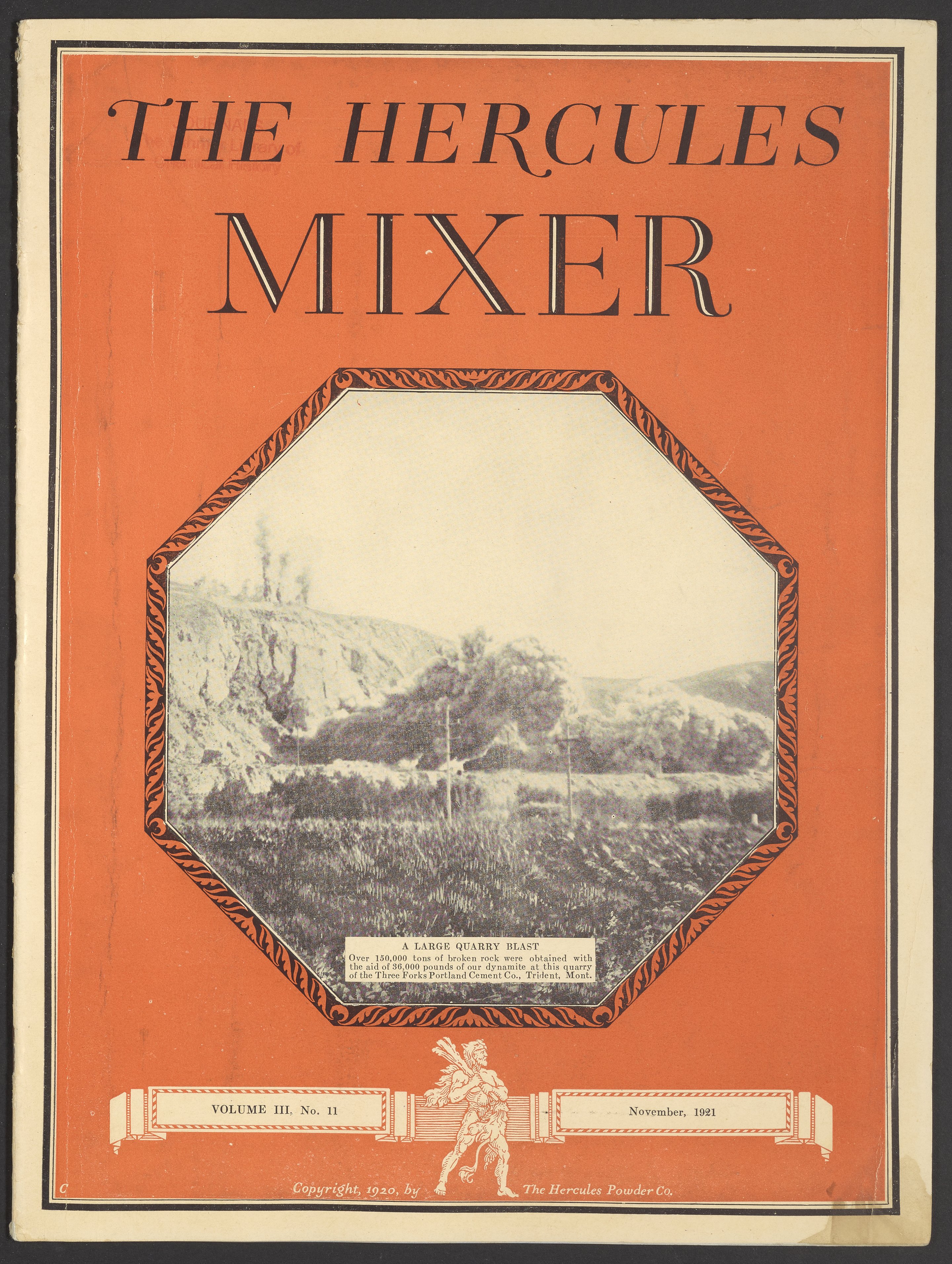 “The Hercules Mixer Volume 3, Number 11.” Wilmington, Delaware: Hercules Powder Company, November 1921. MR057C004. Science History Institute. Philadelphia. https://digital.sciencehistory.org/works/39h9ac1.
