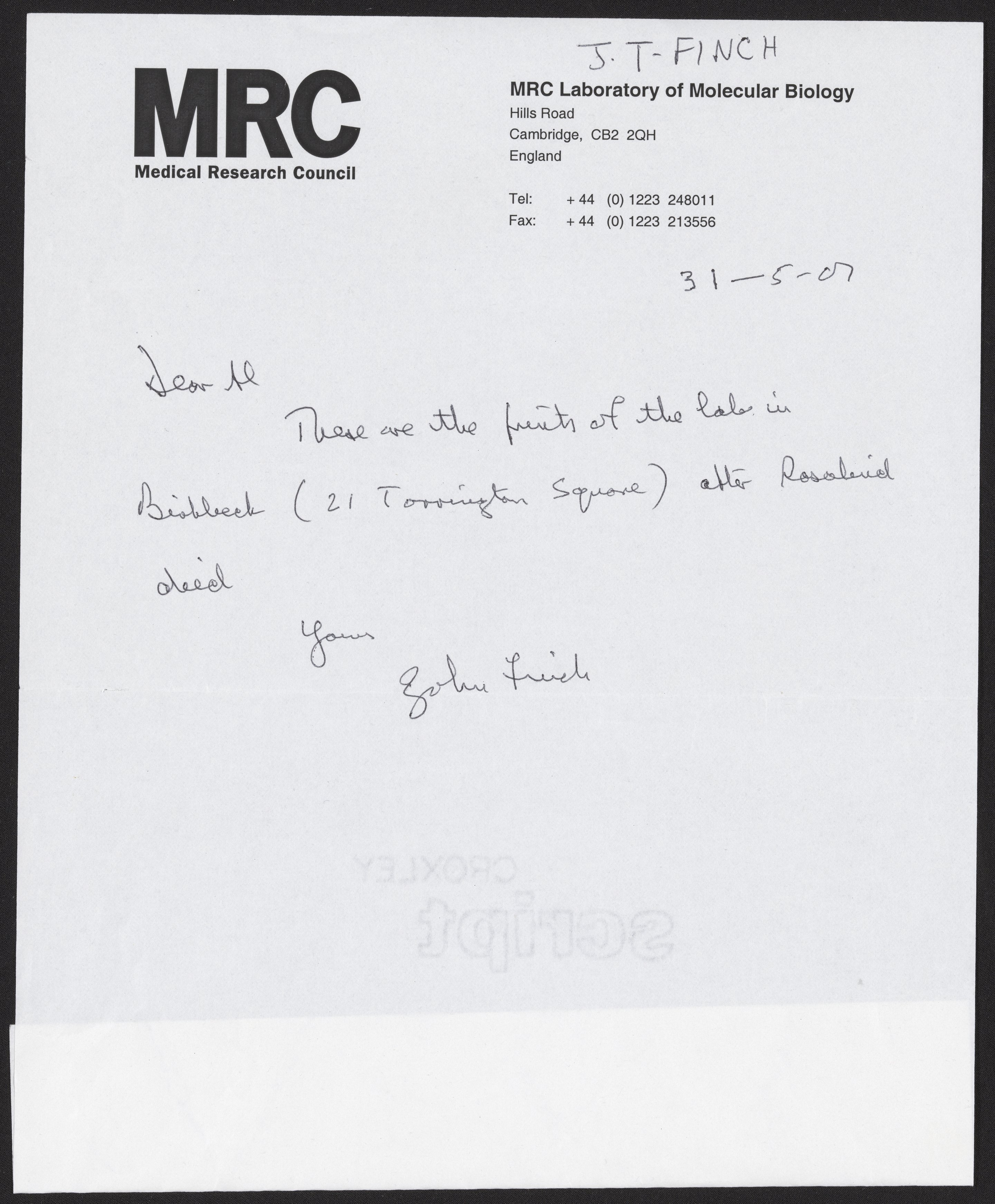 Letter from John Thomas Finch