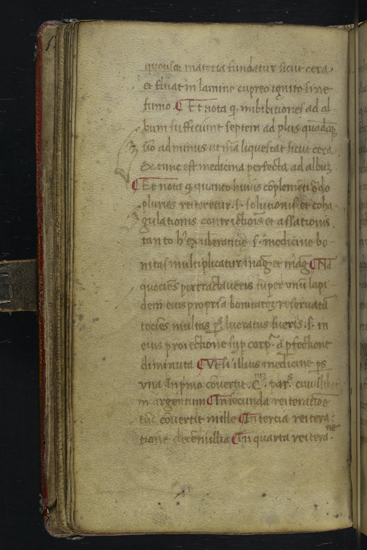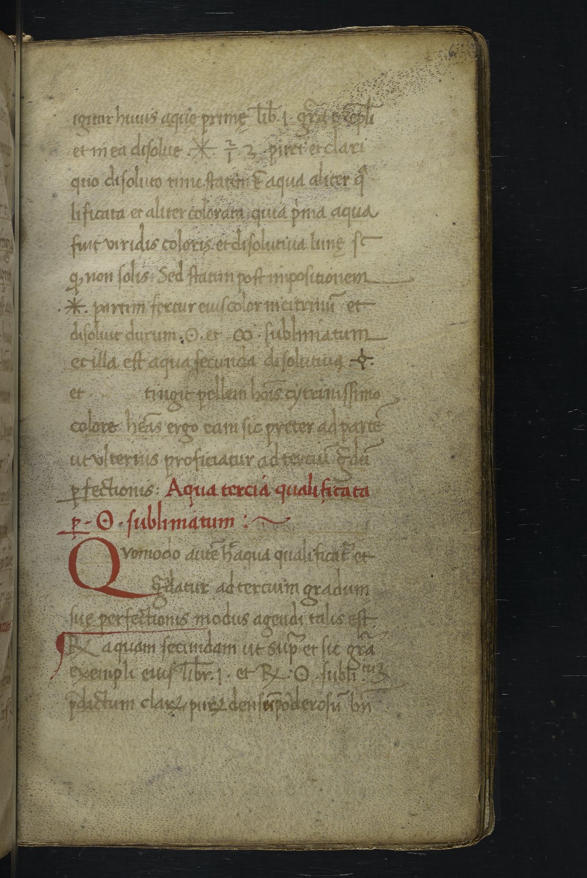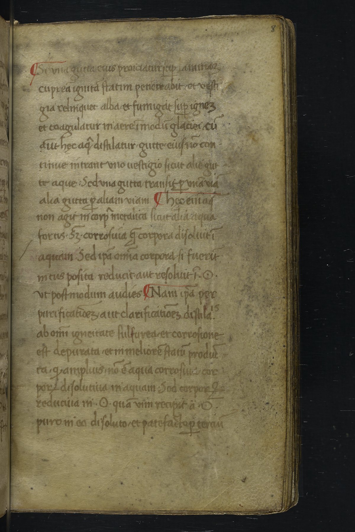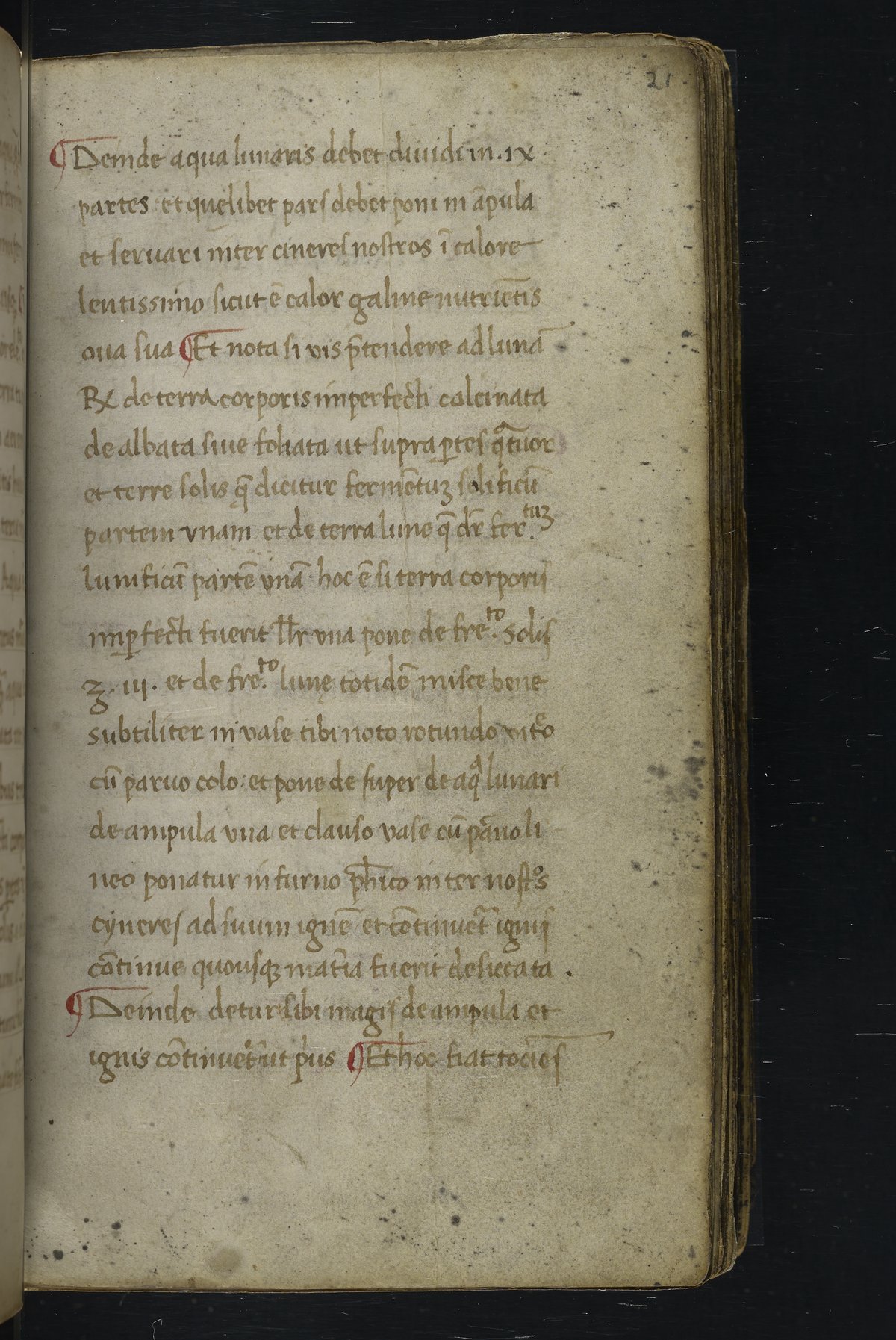 Small JPG1200 x 1517px — 348 KBLarge JPG2880 x 3640px — 1.8 MBFull-sized JPG2940 x 3716px — 1.9 MBOriginal fileTIFF — 2940 x 3716px — 31.3 MBThis manuscript is an important miscellany of practical and theoretical alchemical texts with a full-page drawing of alchemical instruments reflecting the activities of a fifteenth-century alchemist. The manuscript was written in Italy, probably Northern Italy, most likely in the third quarter of the fifteenth century, circa 1450-1475, based on the evidence of the script. Notably, at least part of the manuscript is a palimpsest (copied on previously used parchment, with the original script scraped and/or washed away). The manuscript also bears signs of being heavily used, especially on folios with practical recipes, which are remarkably soiled.