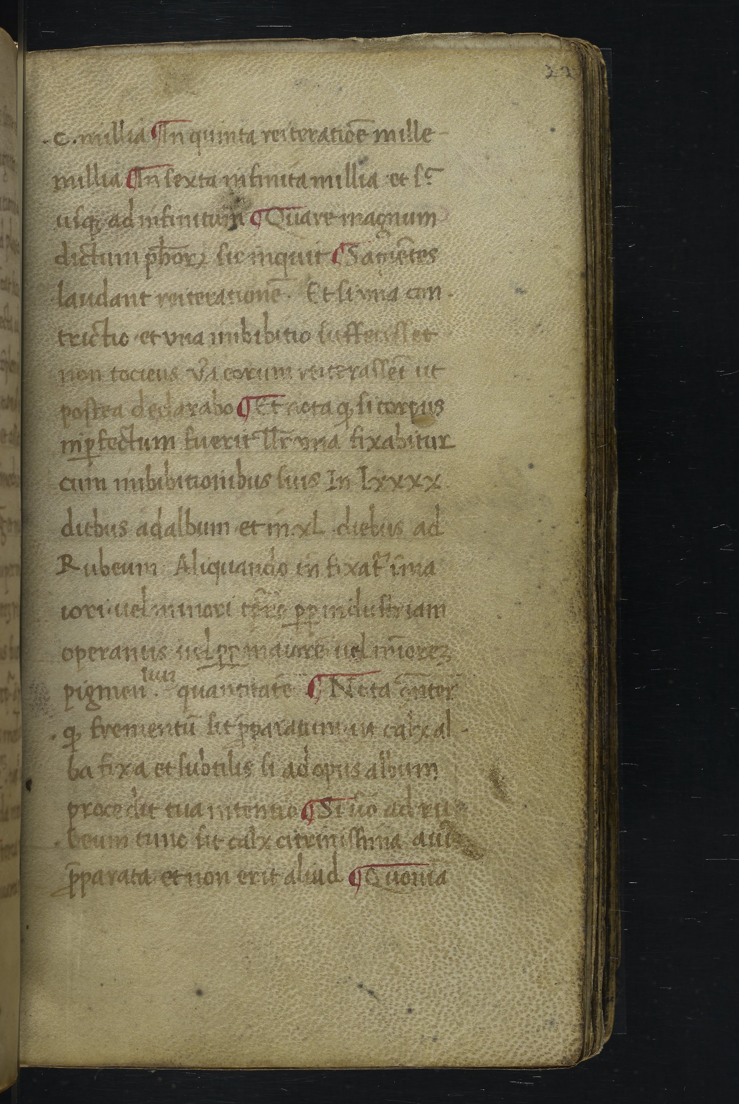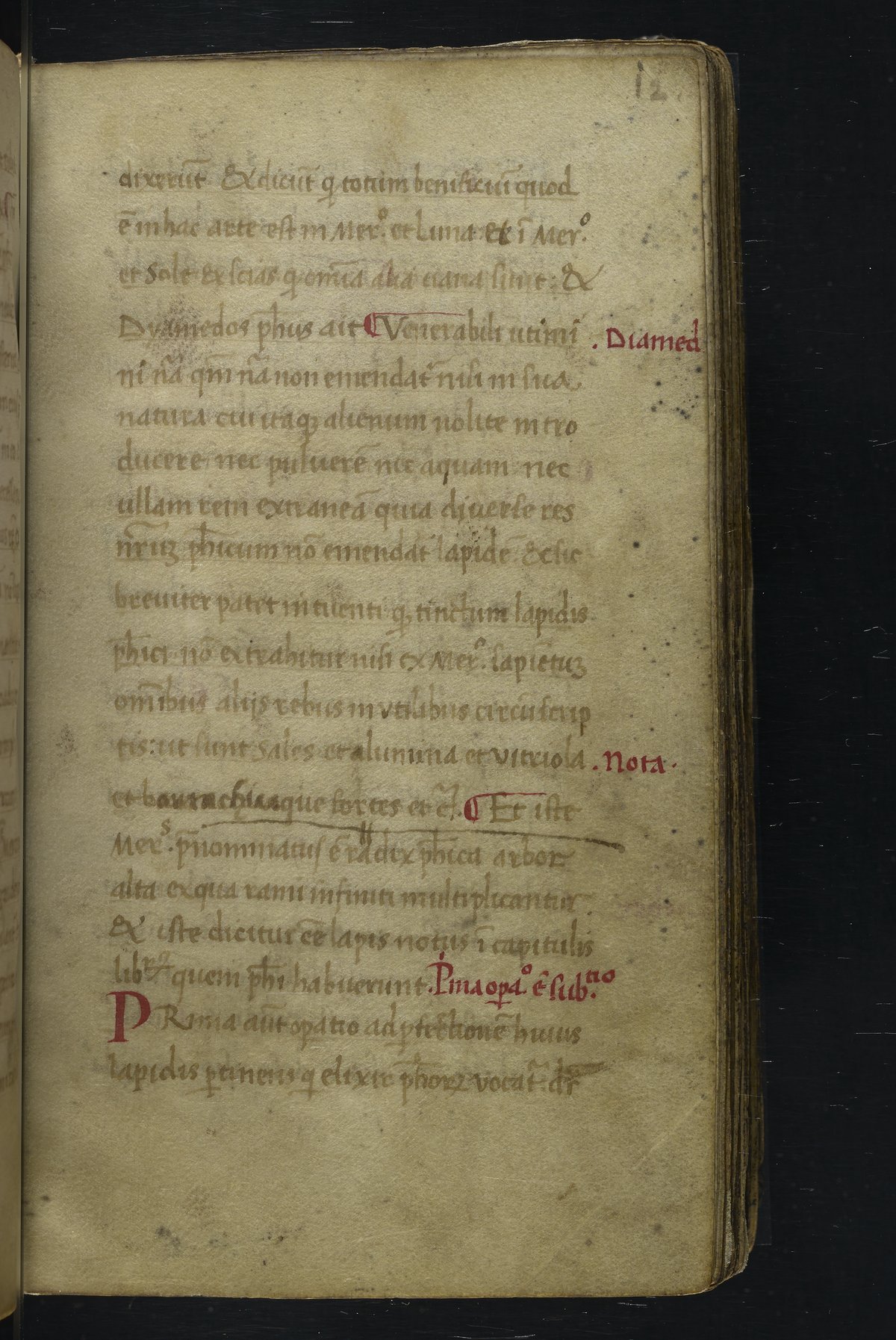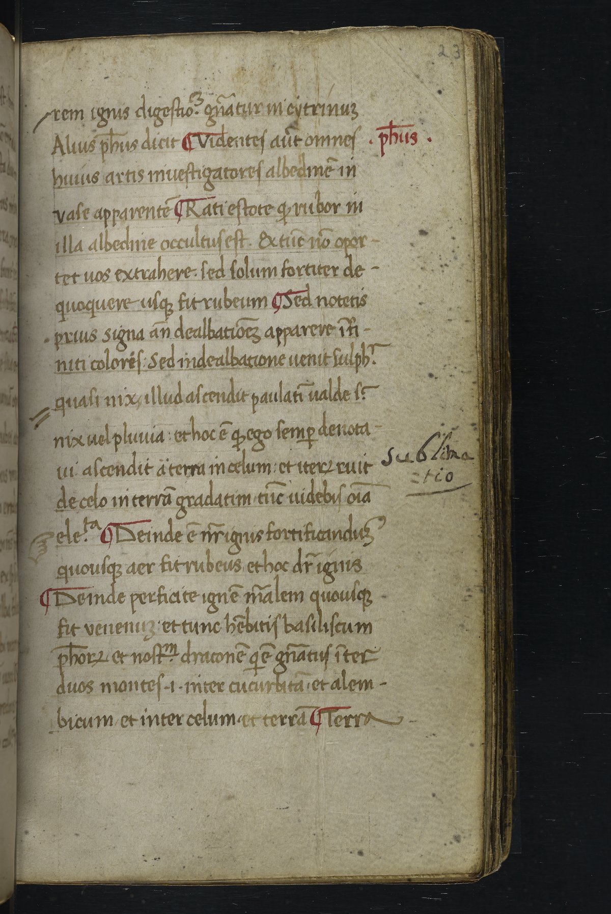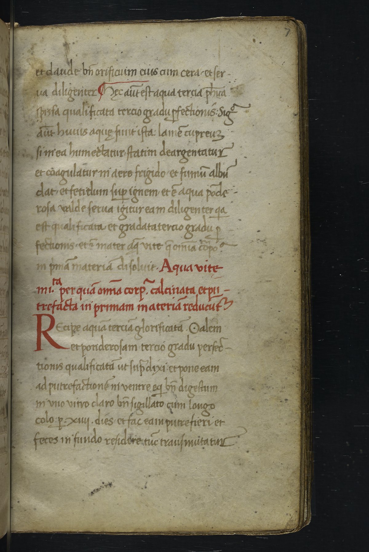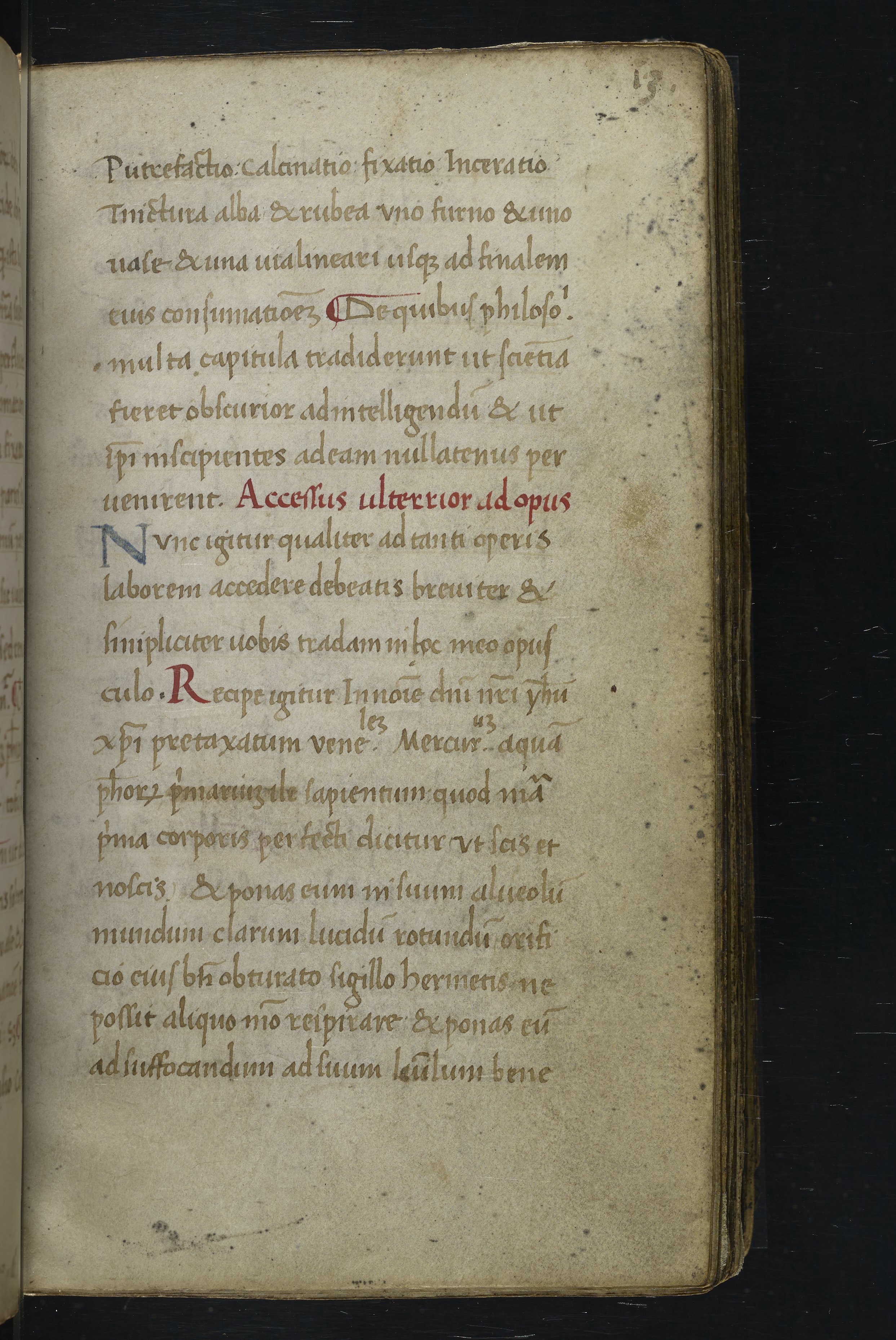 Small JPG1200 x 1517px — 348 KBLarge JPG2880 x 3640px — 1.8 MBFull-sized JPG2940 x 3716px — 1.9 MBOriginal fileTIFF — 2940 x 3716px — 31.3 MBThis manuscript is an important miscellany of practical and theoretical alchemical texts with a full-page drawing of alchemical instruments reflecting the activities of a fifteenth-century alchemist. The manuscript was written in Italy, probably Northern Italy, most likely in the third quarter of the fifteenth century, circa 1450-1475, based on the evidence of the script. Notably, at least part of the manuscript is a palimpsest (copied on previously used parchment, with the original script scraped and/or washed away). The manuscript also bears signs of being heavily used, especially on folios with practical recipes, which are remarkably soiled.