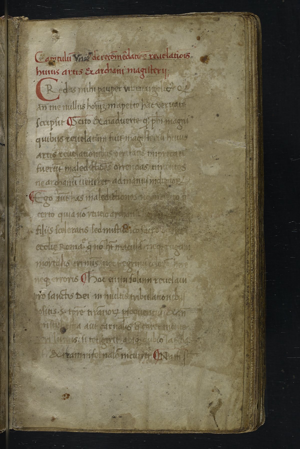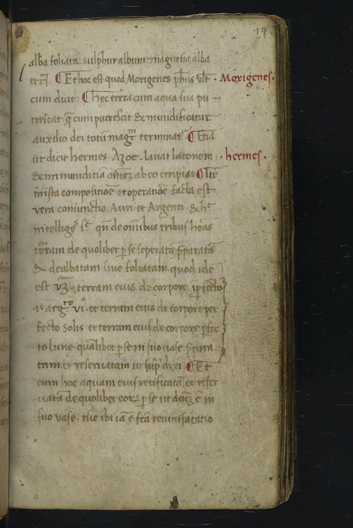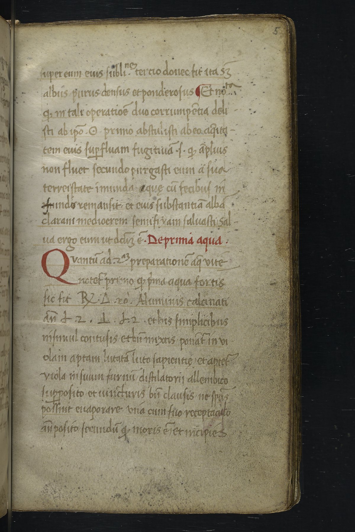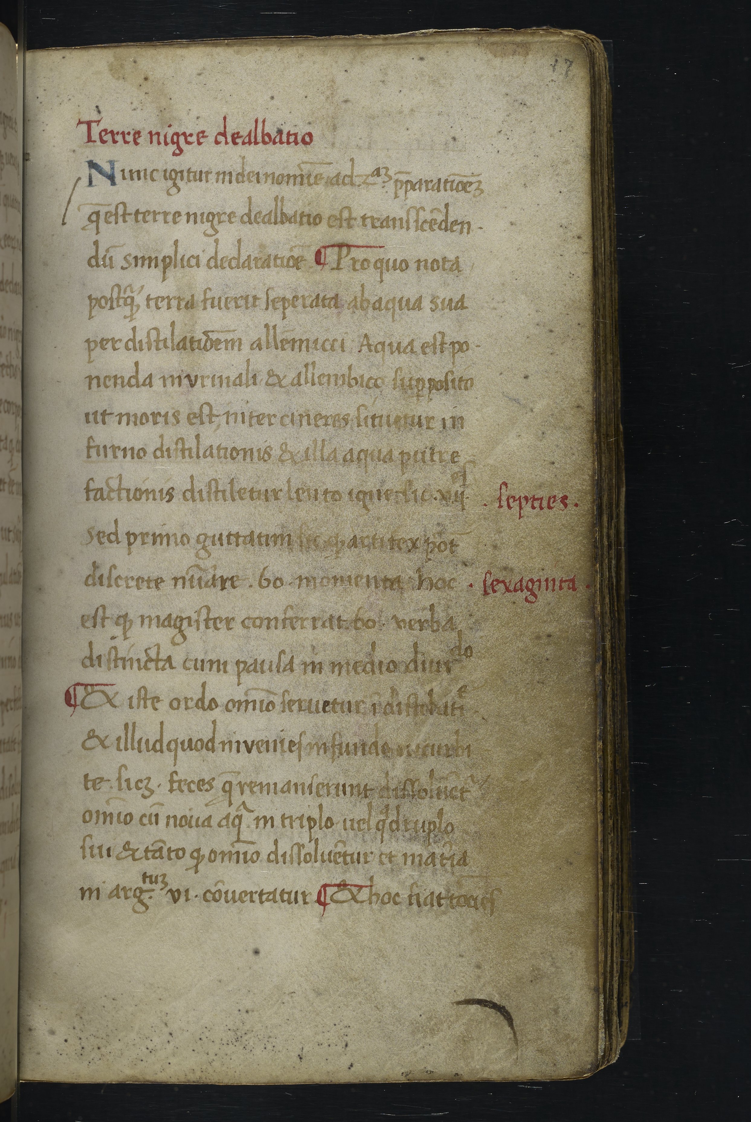 Small JPG1200 x 1517px — 348 KBLarge JPG2880 x 3640px — 1.8 MBFull-sized JPG2940 x 3716px — 1.9 MBOriginal fileTIFF — 2940 x 3716px — 31.3 MBThis manuscript is an important miscellany of practical and theoretical alchemical texts with a full-page drawing of alchemical instruments reflecting the activities of a fifteenth-century alchemist. The manuscript was written in Italy, probably Northern Italy, most likely in the third quarter of the fifteenth century, circa 1450-1475, based on the evidence of the script. Notably, at least part of the manuscript is a palimpsest (copied on previously used parchment, with the original script scraped and/or washed away). The manuscript also bears signs of being heavily used, especially on folios with practical recipes, which are remarkably soiled.