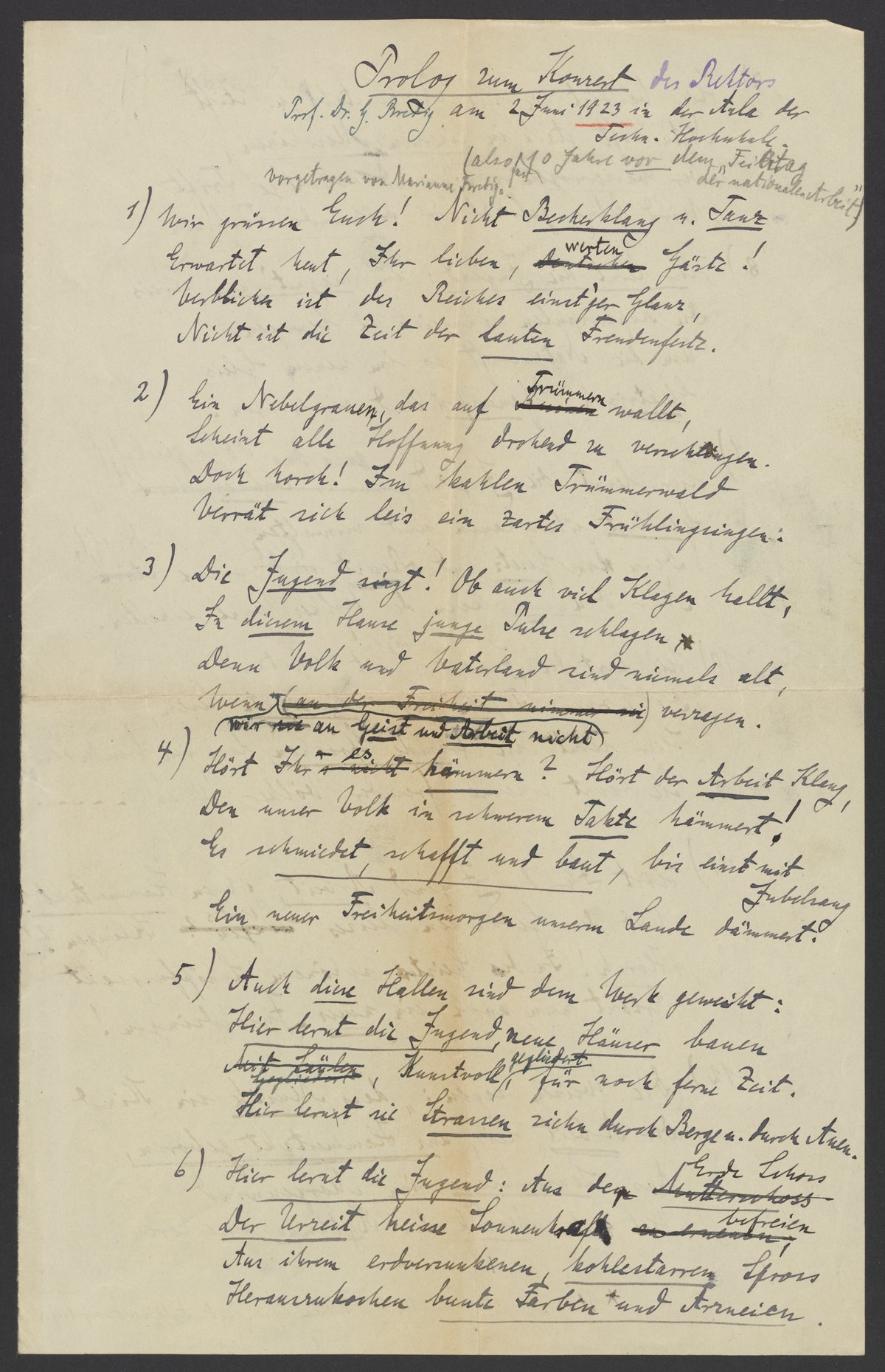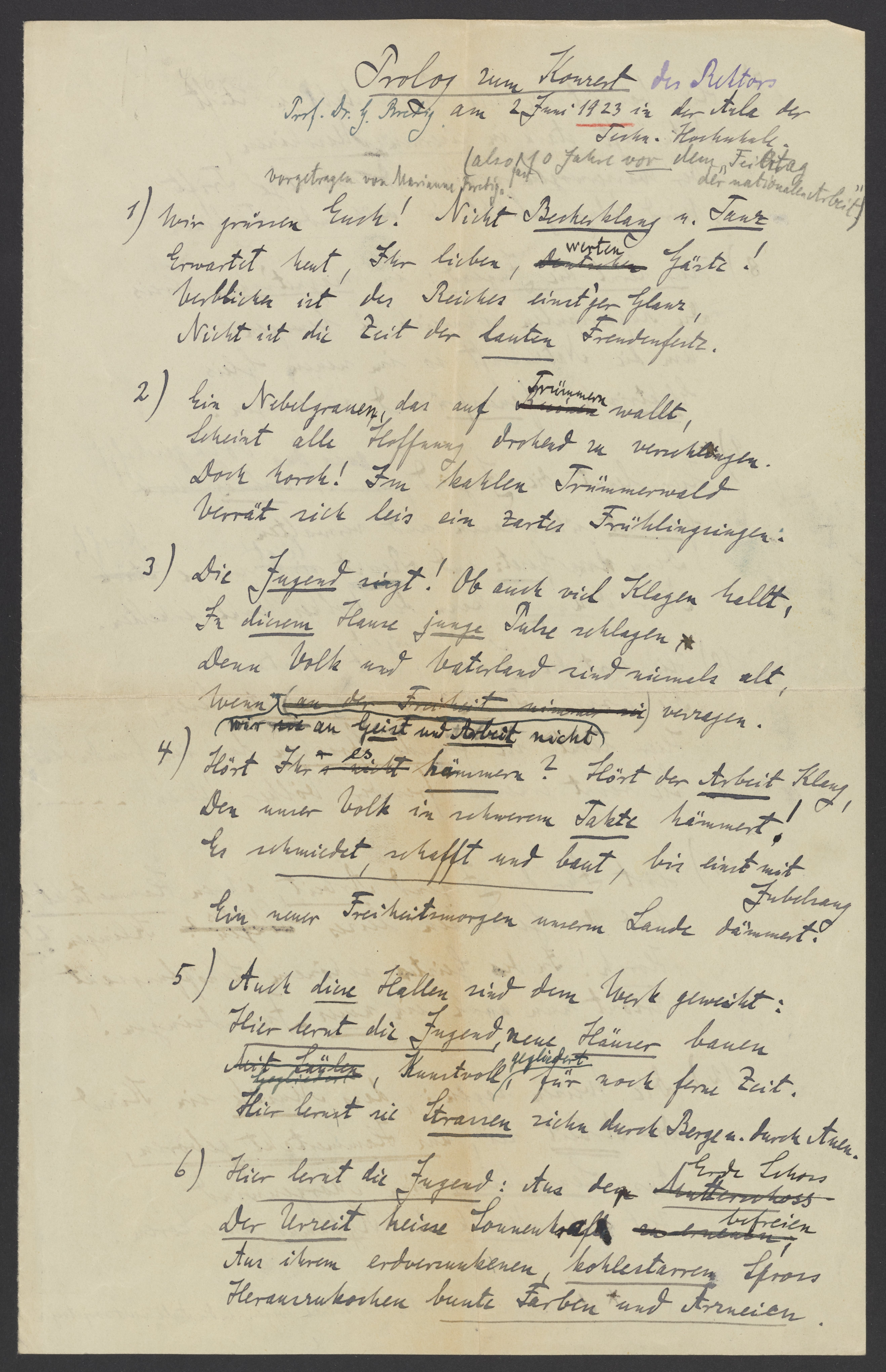 Bredig, Georg. “Prologue to the Rector's Concert,” 1923. Papers of Georg and Max Bredig, Box 5, Folder 11. Science History Institute. Philadelphia. https://digital.sciencehistory.org/works/3dmyhr1.