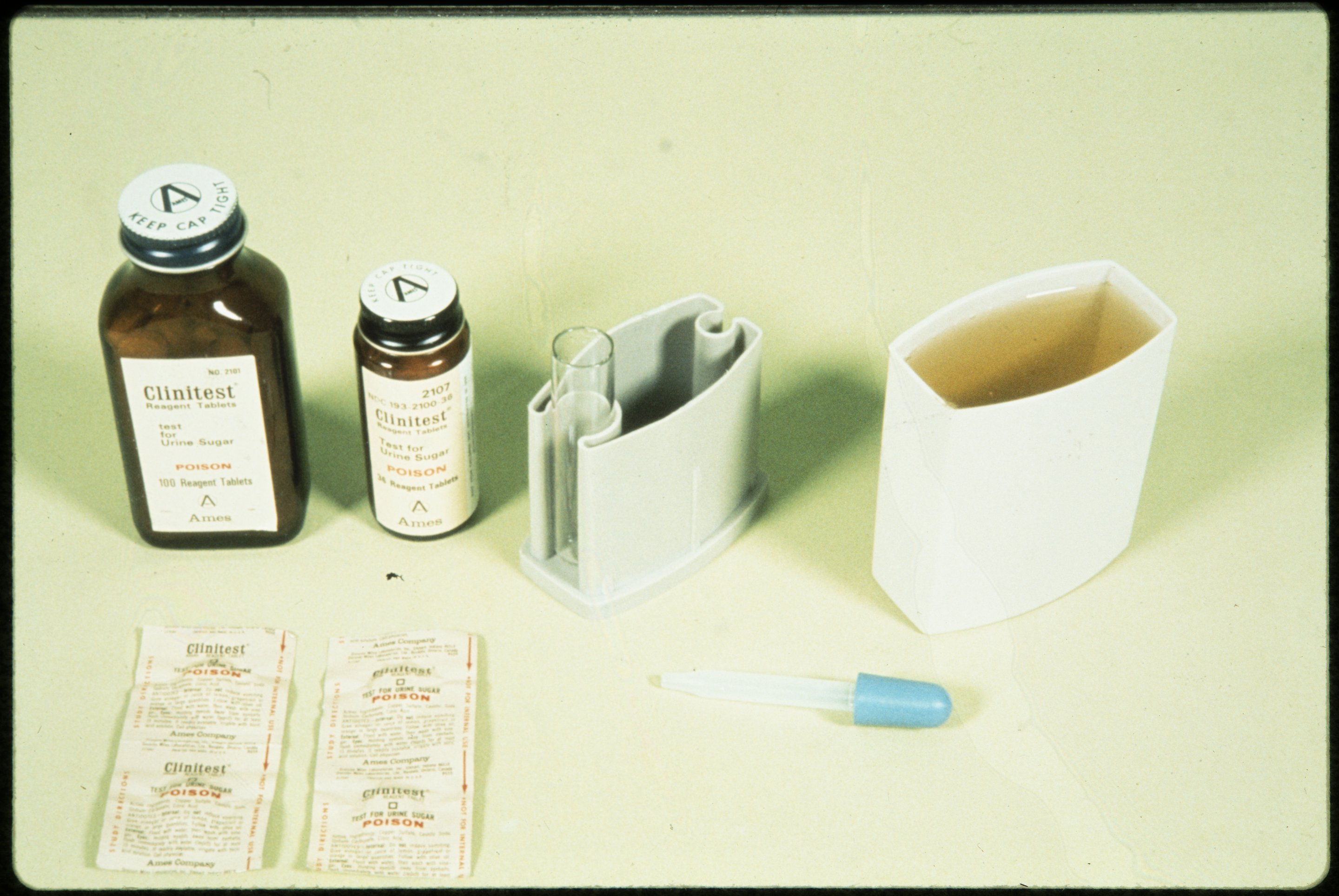 “Test for Urine Sugar Using Clinitest Reagent Tablets ,” 1970–1979. Photographs from the Dr. Michael Somogyi Collection, Box 2. Science History Institute. Philadelphia. https://digital.sciencehistory.org/works/3dz5cja.