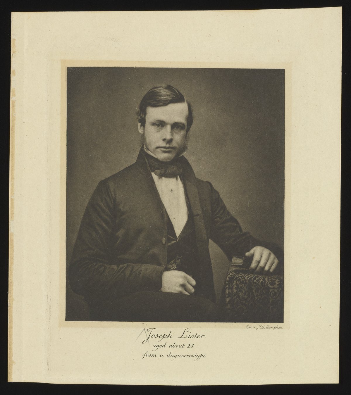 Walker, Emery. “Portrait of Joseph Lister,” circa 1855. Fisher-Pasteur Memorial Collection, Box 1, Folder 9. Science History Institute. Philadelphia. https://digital.sciencehistory.org/works/3f4625556.
