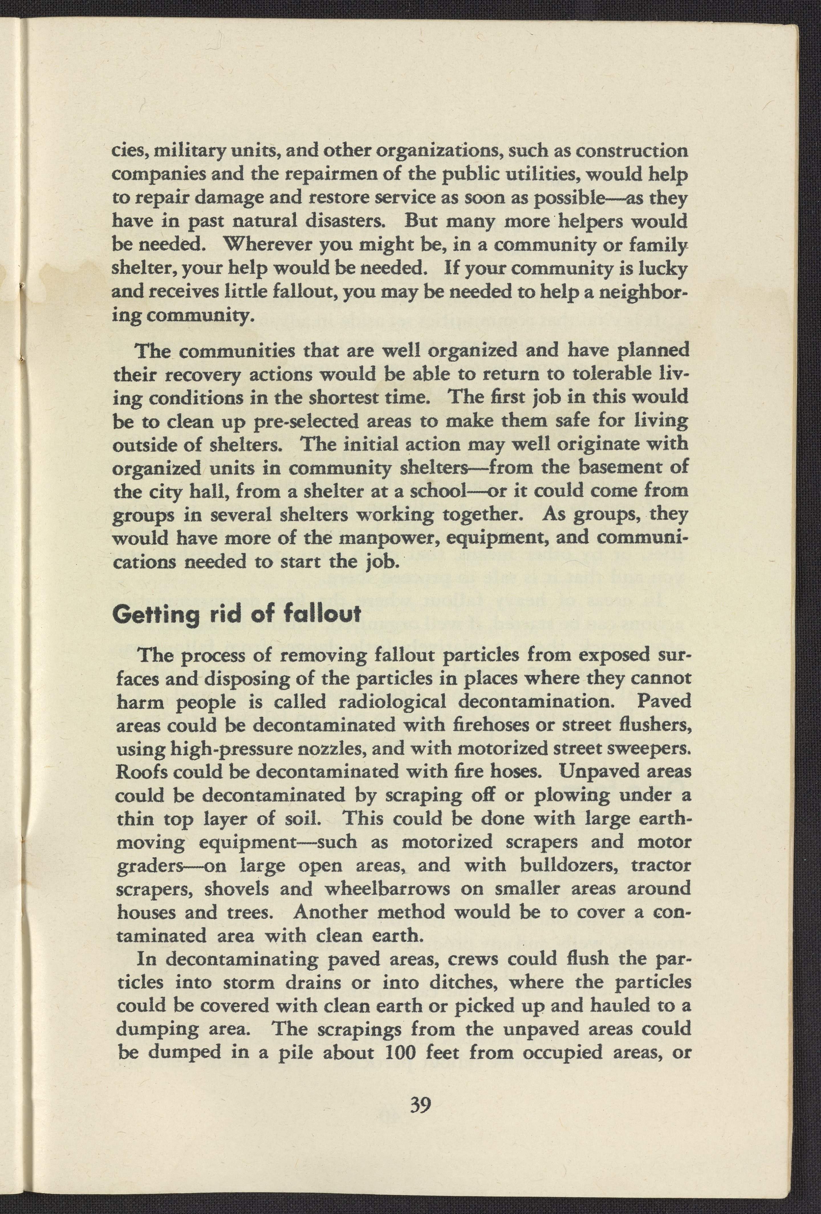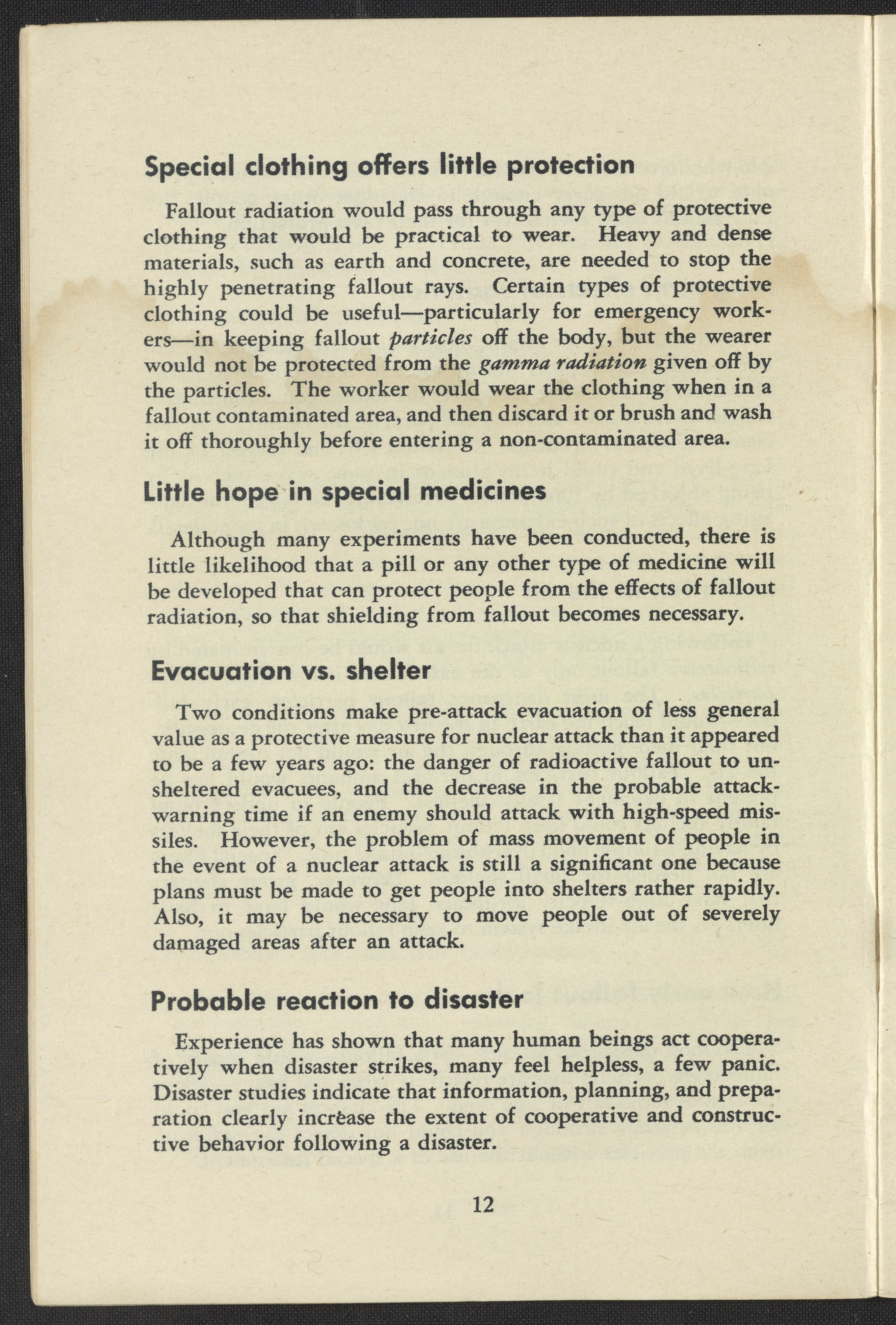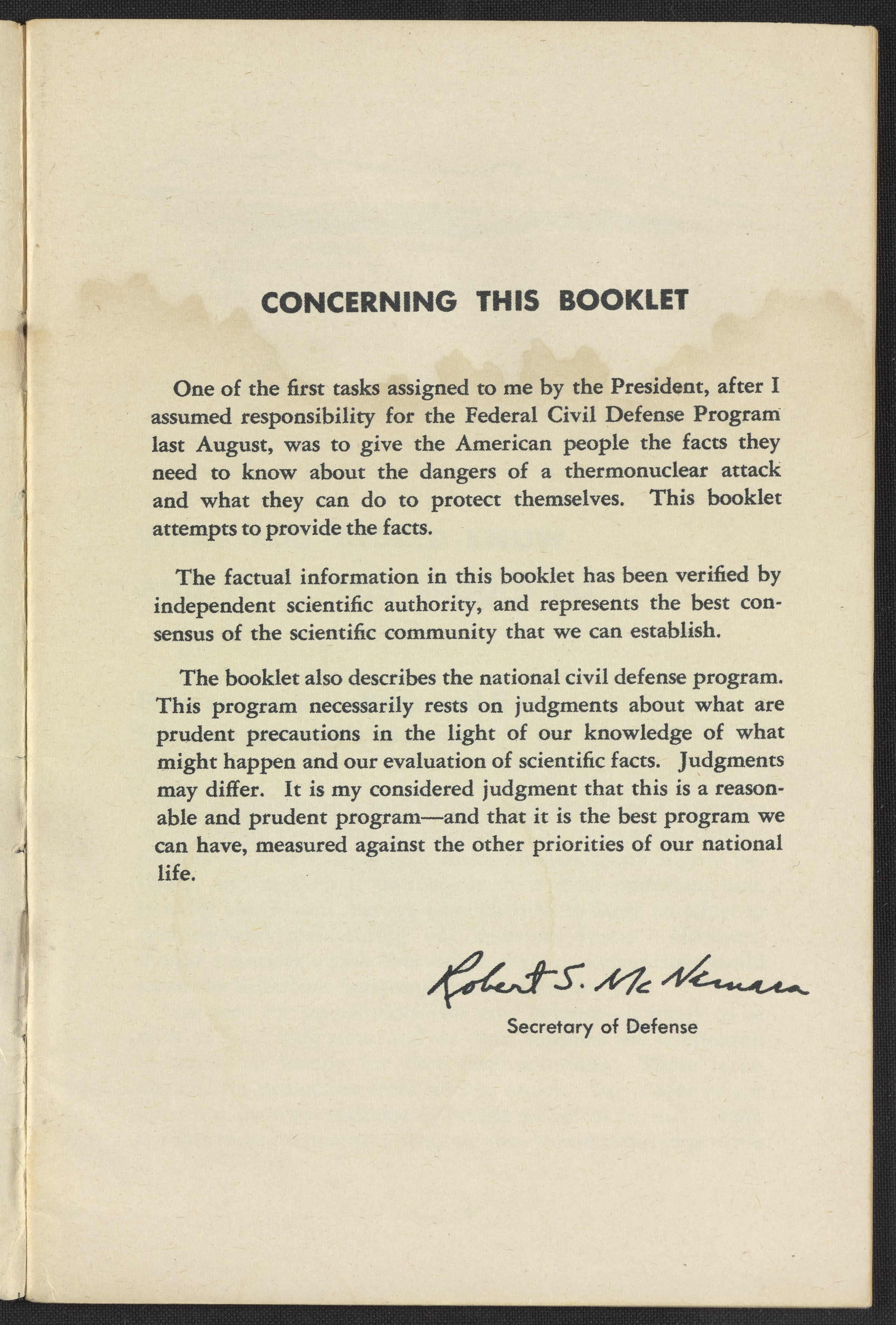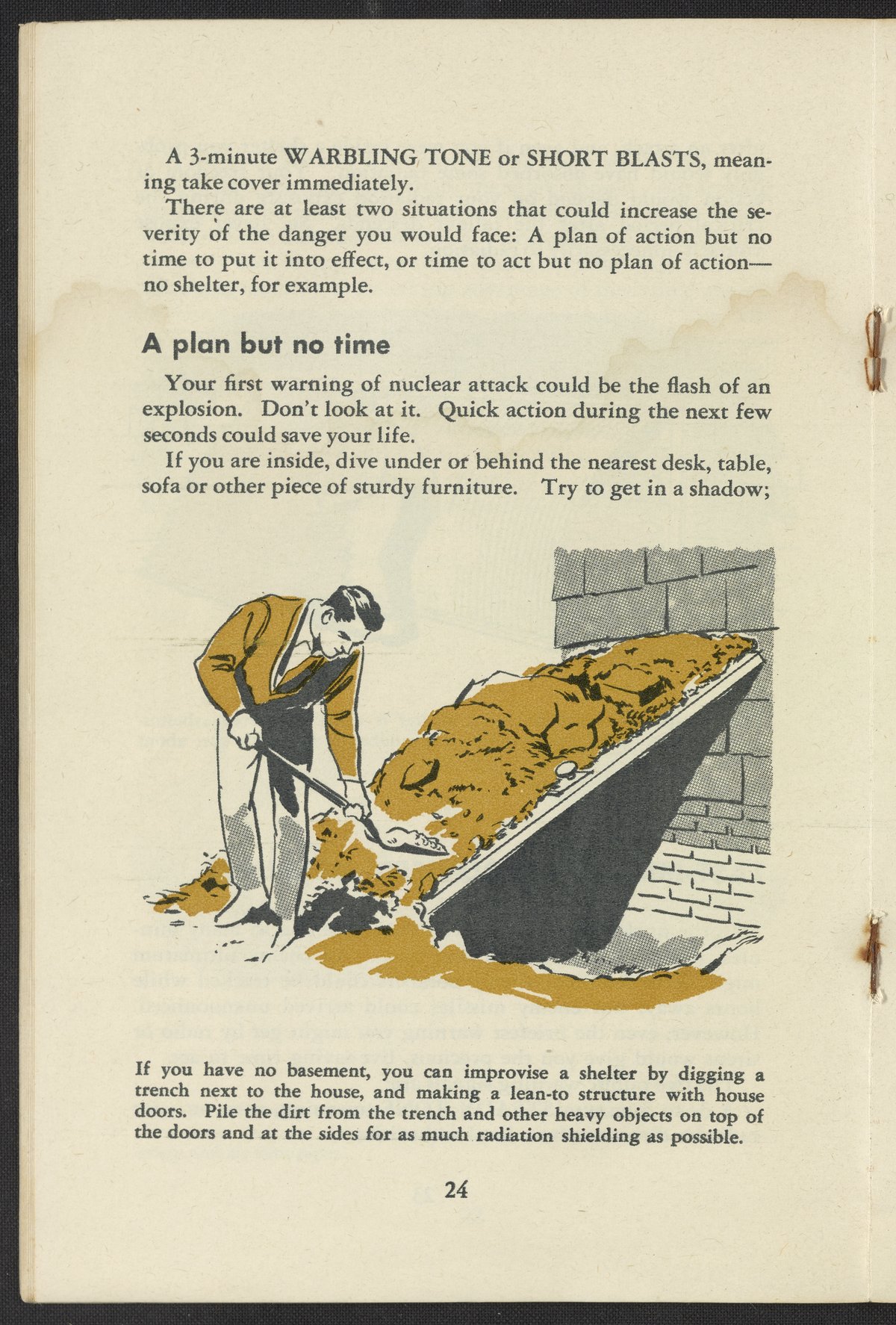 United States. Office of Civilian Defense. “Fallout Protection: What to Know and Do About Nuclear Attack.” Washington (D.C.): United States. Government Printing Office, 1961. https://digital.sciencehistory.org/works/3f4626366.
