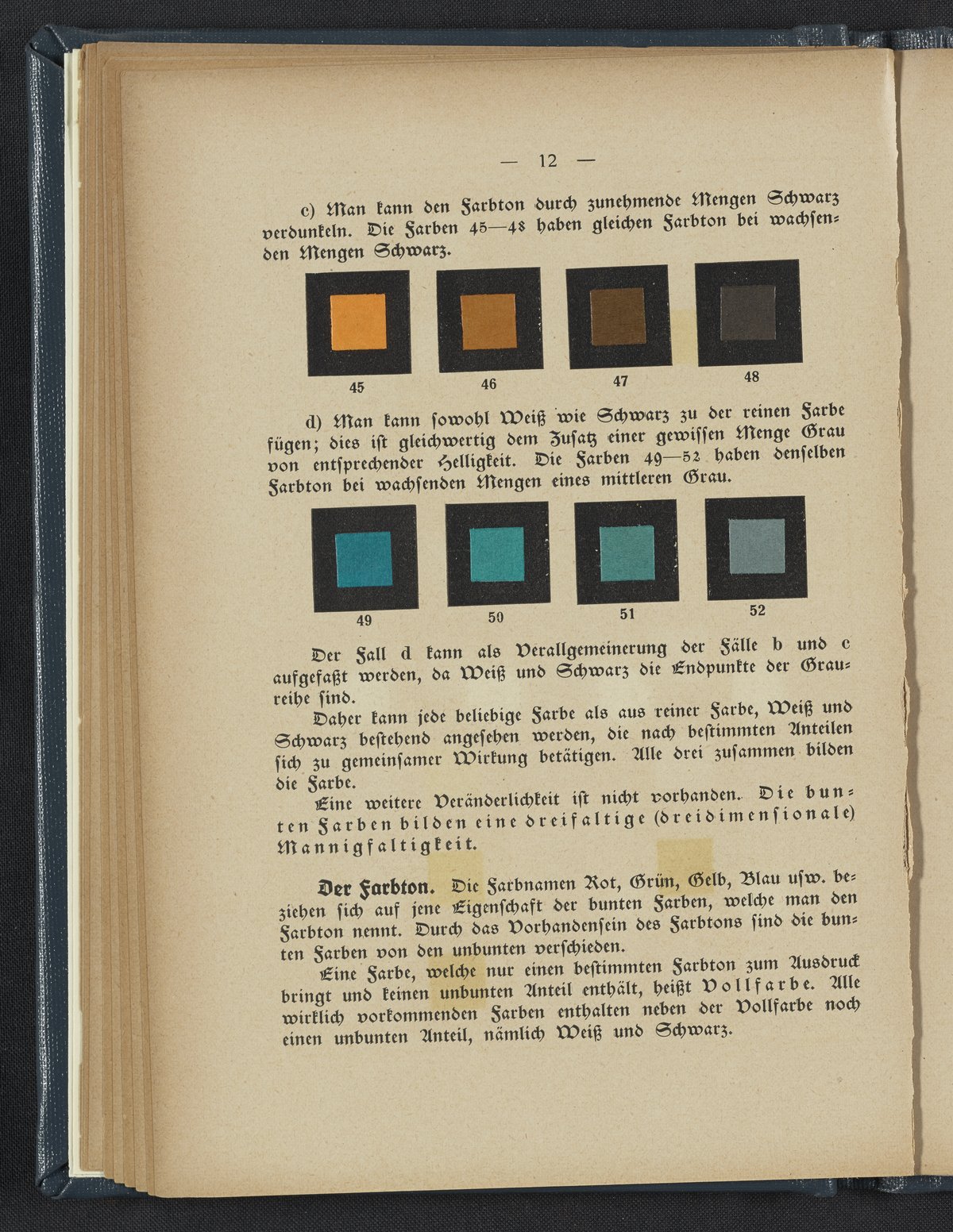 Small JPG1200 x 1648px — 358 KBLarge JPG2880 x 3956px — 2.1 MBFull-sized JPG4134 x 5679px — 4.2 MBOriginal fileTIFF — 4134 x 5679px — 67.2 MBDigitized in entirety, this German color guide features painted color swatches throughout the text. Sections include achromatic and chromatic colors, bright and dark shades, murky colors, as well as color harmony.