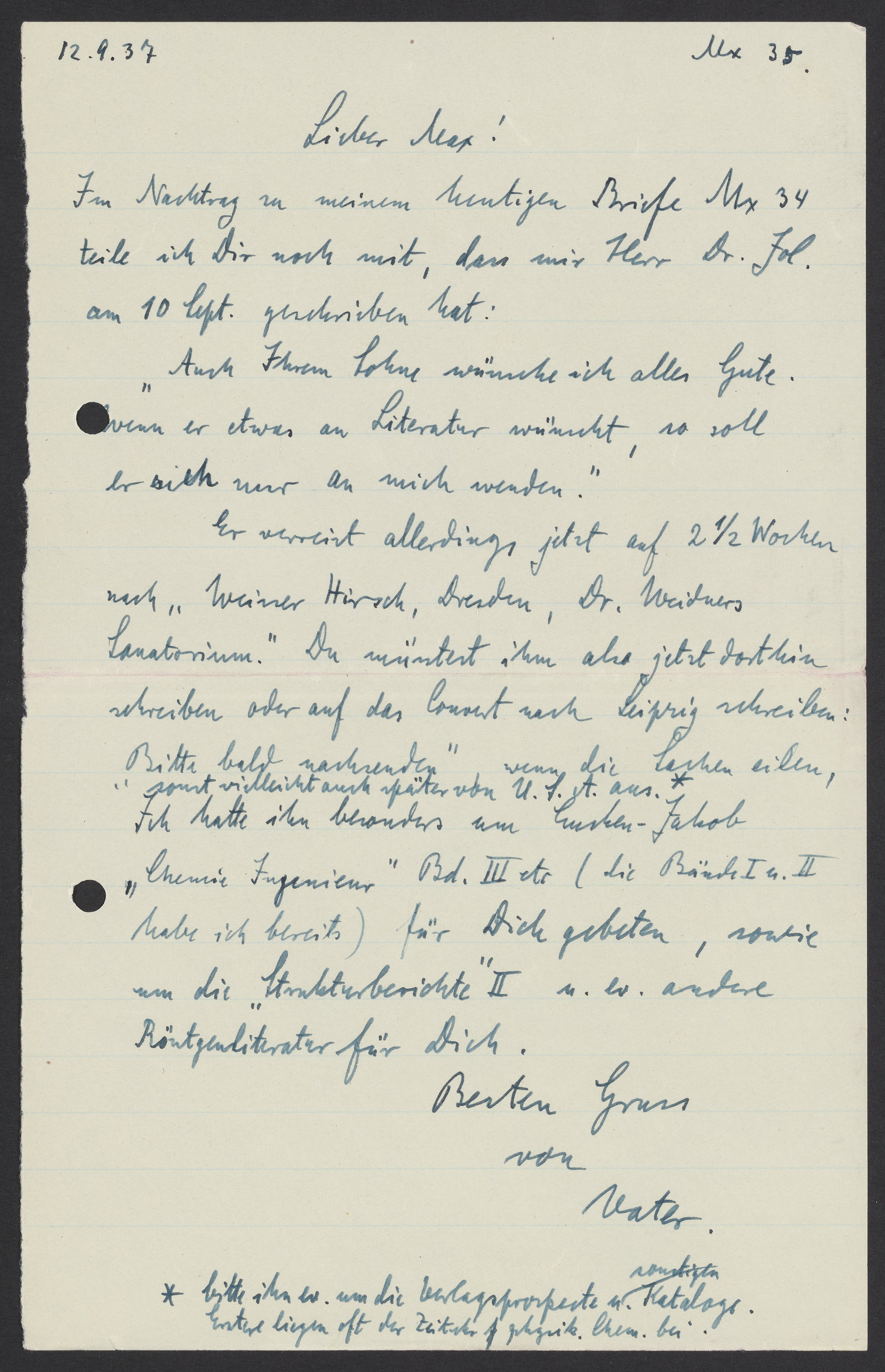 Letter from Georg Bredig to Max Bredig, September 12, 1937