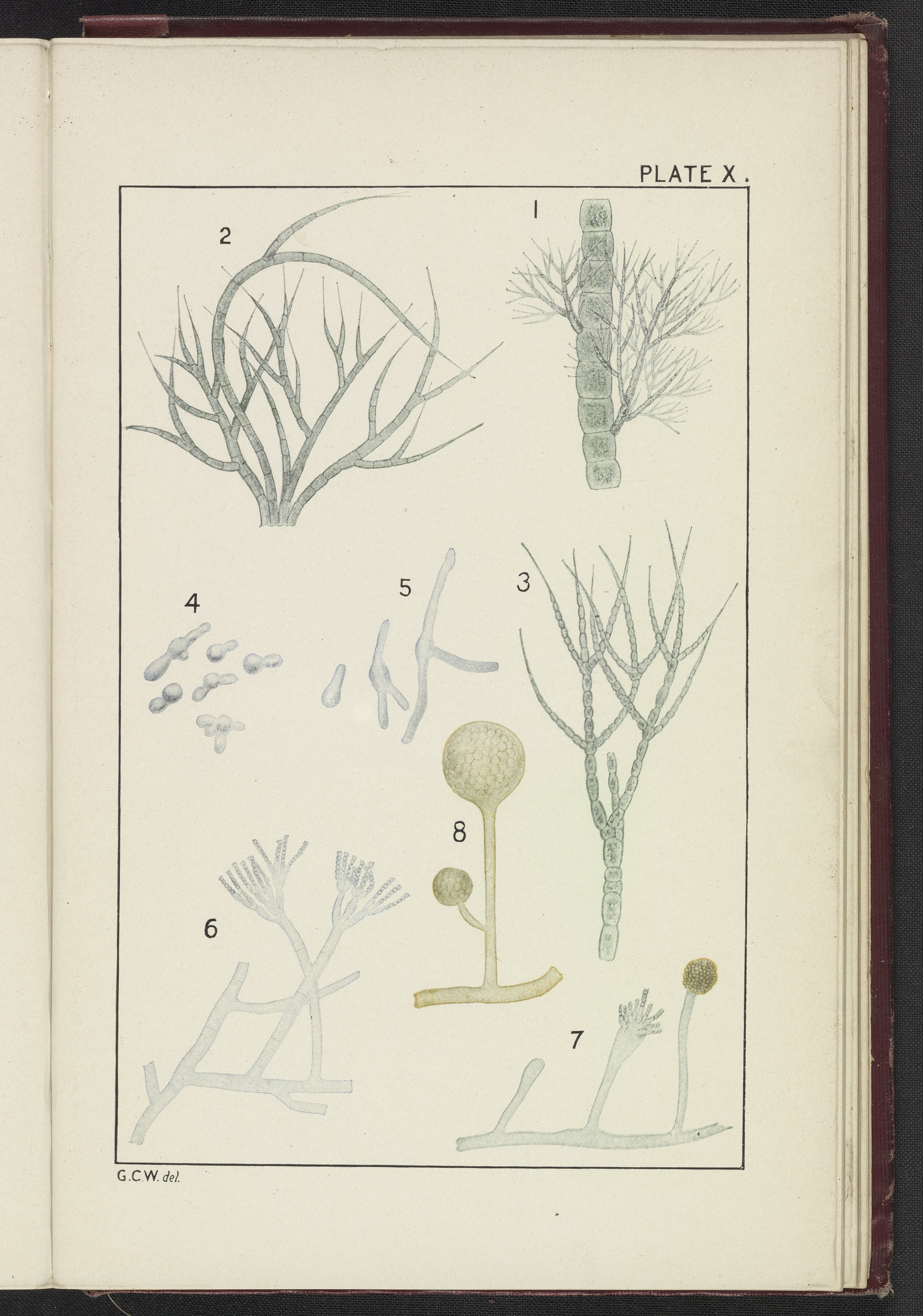 Whipple, George Chandler. “Plate X: Chlorophyceæ and Fungi.” The Microscopy of Drinking Water, 1914. https://digital.sciencehistory.org/works/3n203z946.