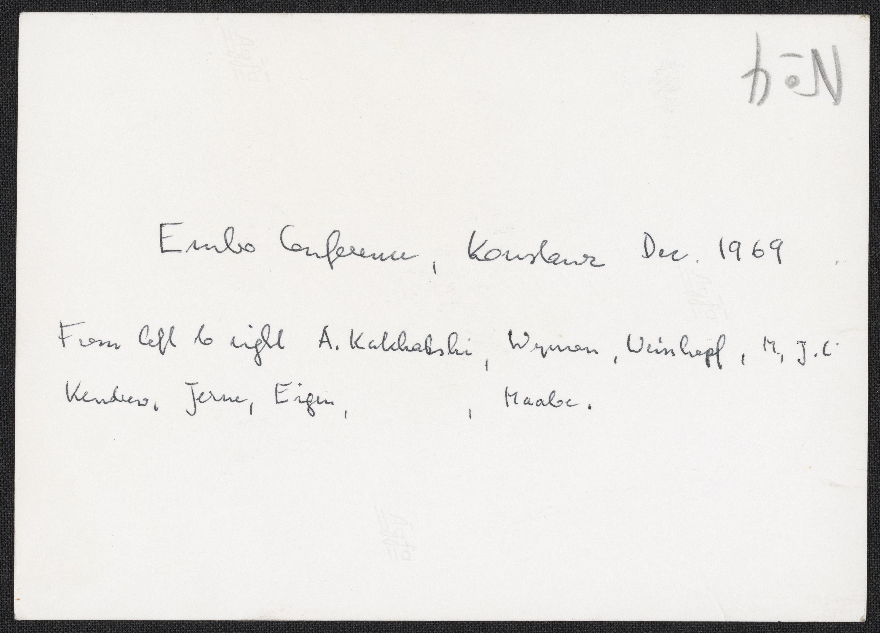 Small JPG1200 x 866px — 163 KBLarge JPG2880 x 2078px — 770 KBFull-sized JPG3670 x 2648px — 1.1 MBOriginal fileTIFF — 3670 x 2648px — 27.8 MBBlack and white photograph taken at the European Molecular Biology Organization (EMBO) conference to plan for the European Laboratory of Molecular Biology. The conference took place in Konstanz, Germany, in November 1969.