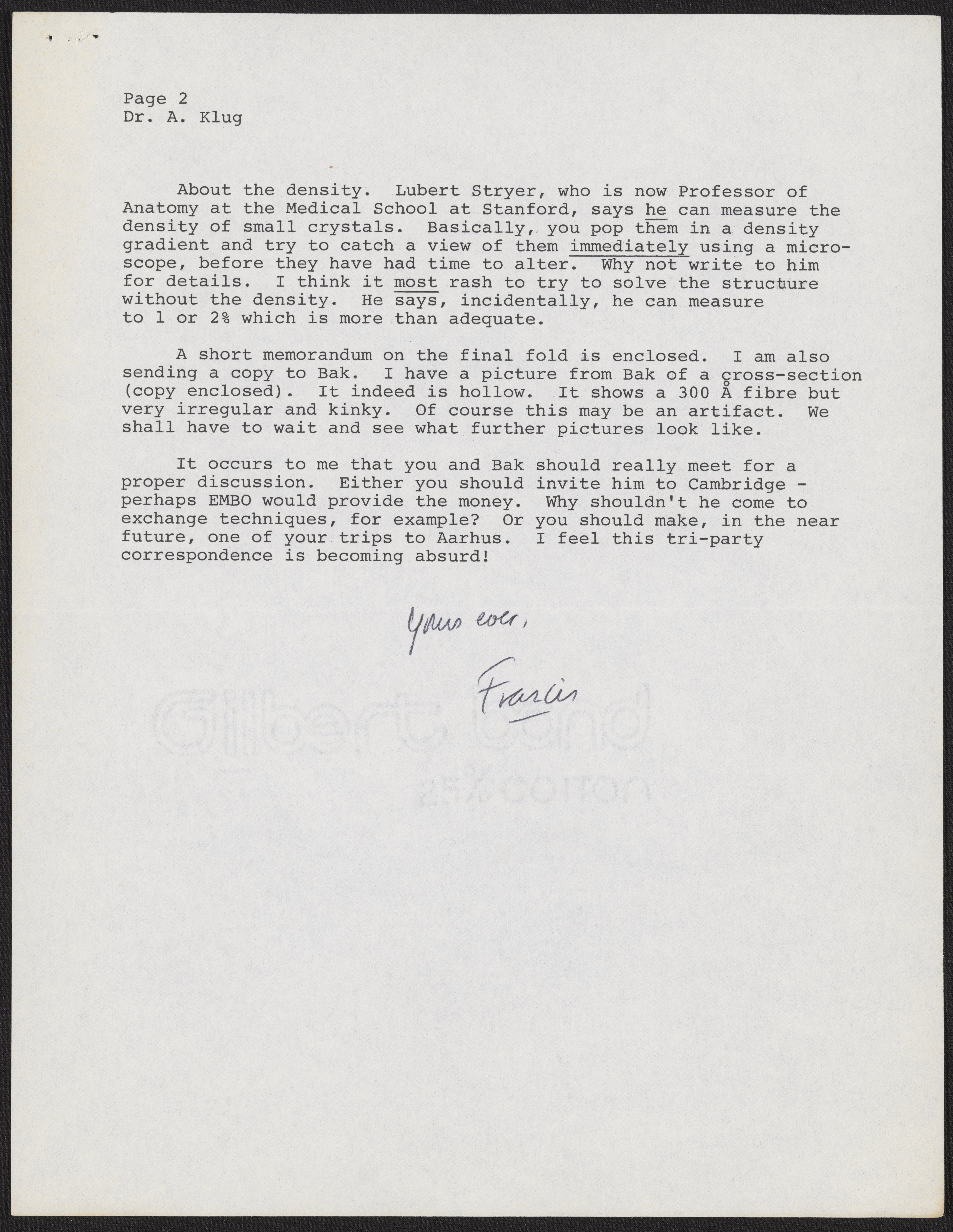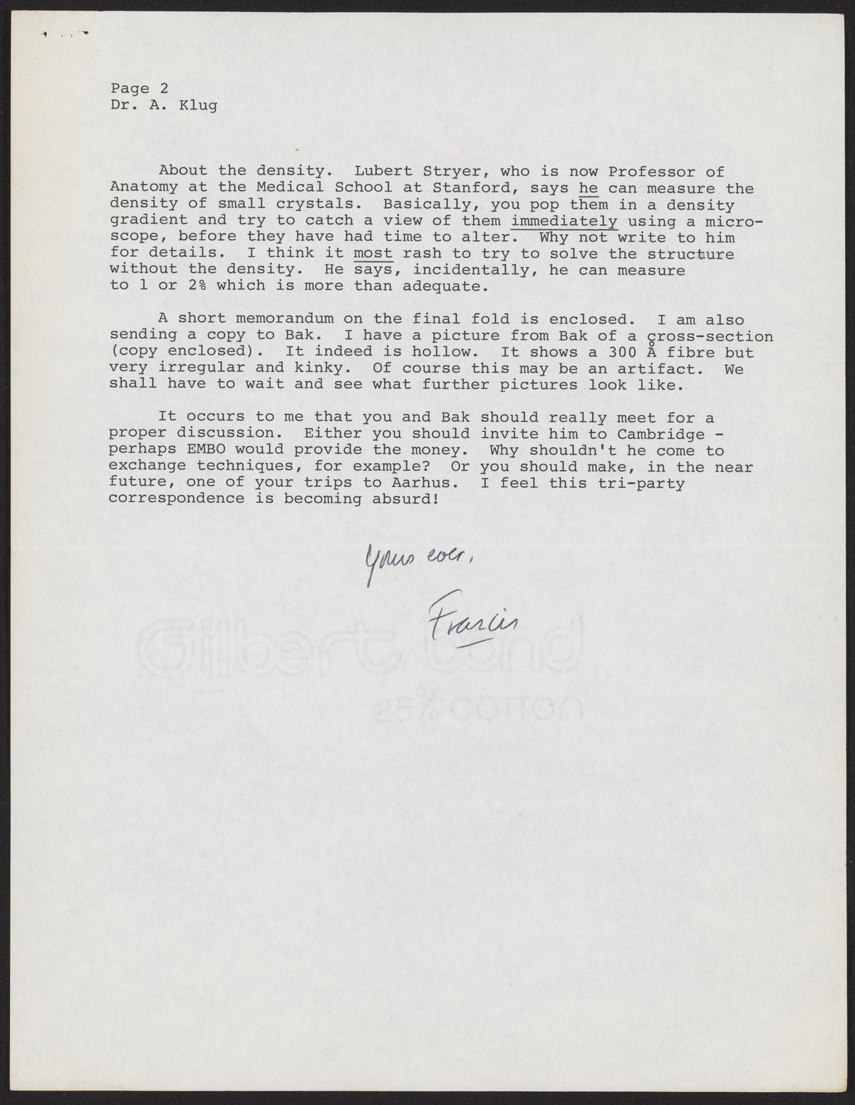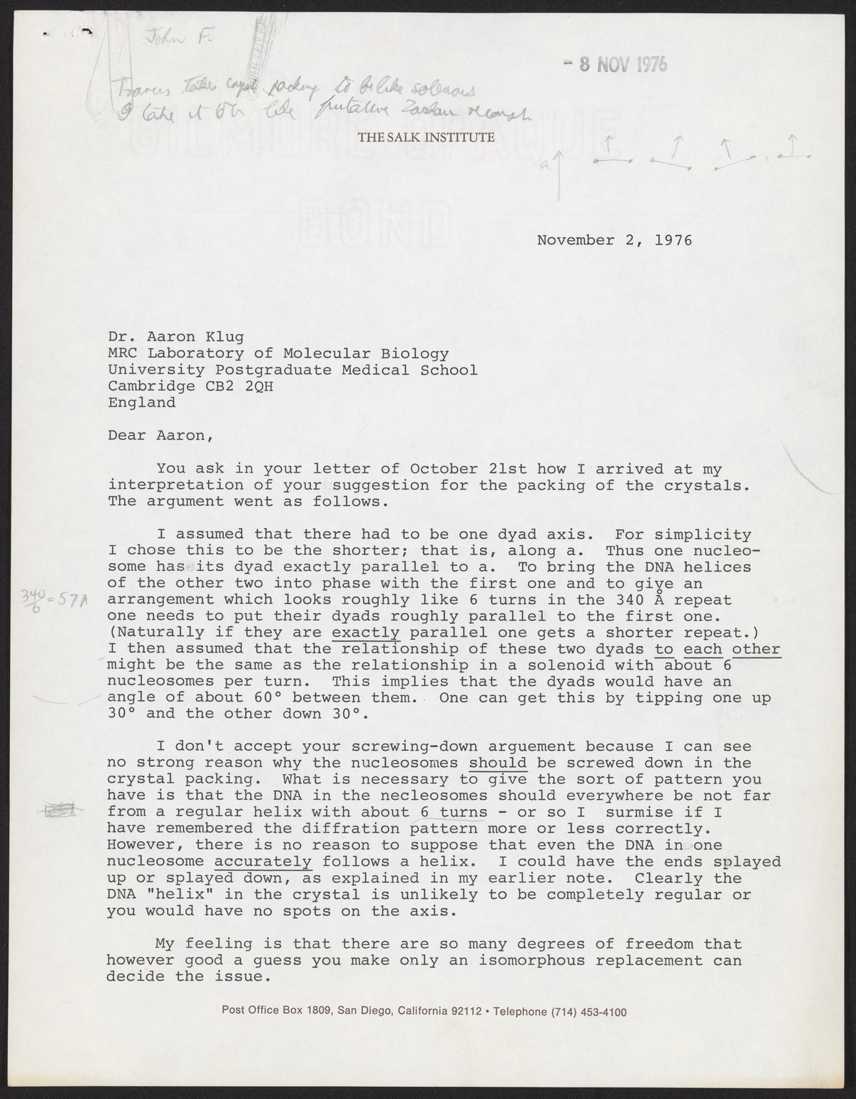 Letter from Francis Crick to Aaron Klug, November 2, 1976