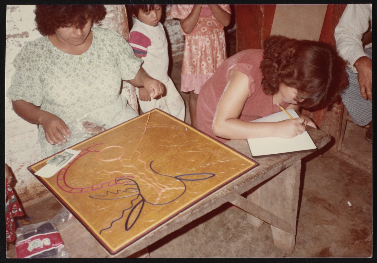“Photographs of Emeteria Rios Martinez Yarn Painting,” 1982. Eugene Garfield Papers, Box 123, Page 13. Science History Institute. Philadelphia. https://digital.sciencehistory.org/works/3ou9355.