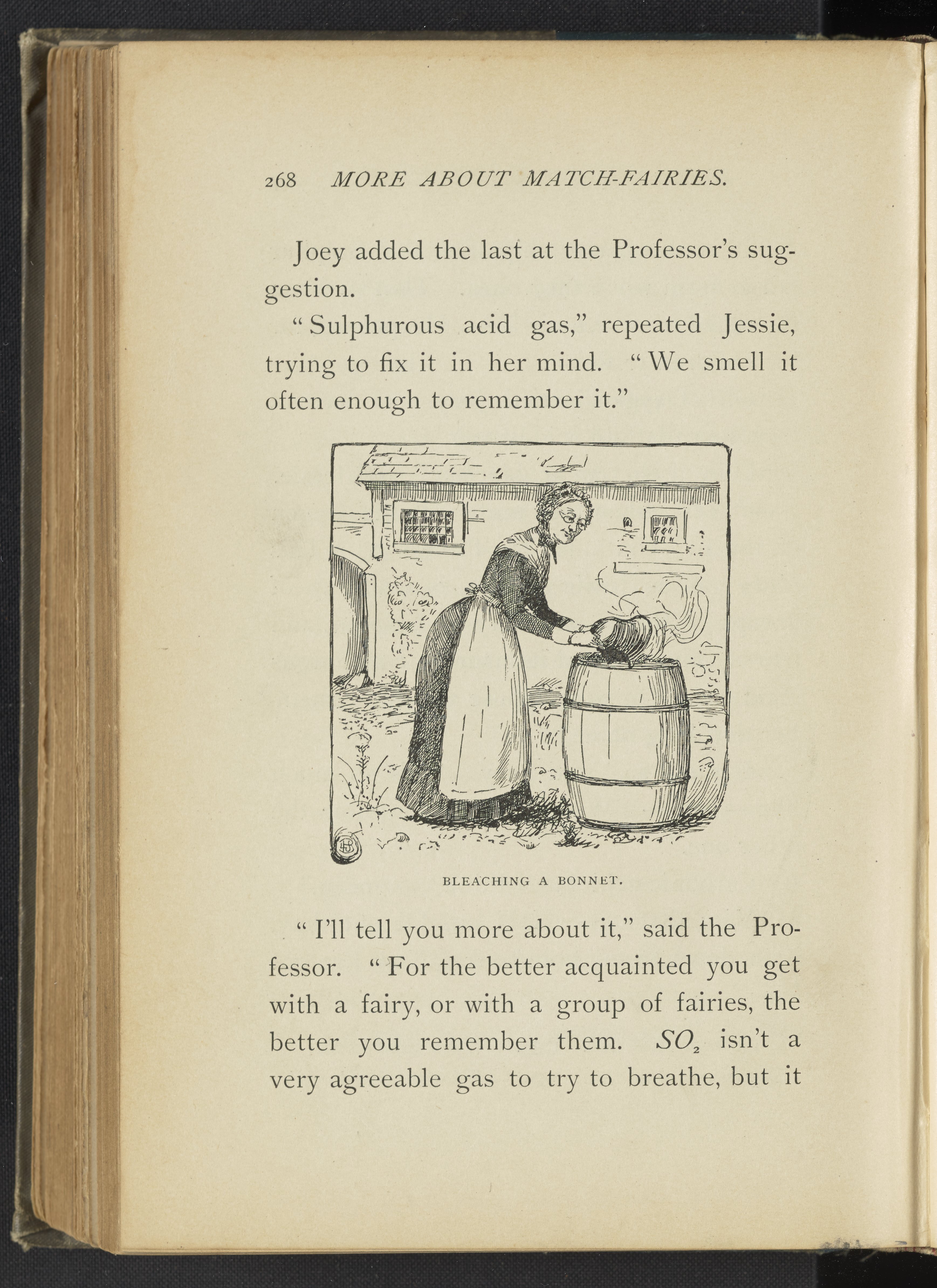 Meyer, Lucy Rider. “Bleaching a Bonnet.” Real Fairy Folks, or, Fairy Land of Chemistry: Explorations in the World of Atoms. Boston, Massachusetts: Lothrop Publishing Company, 1887. https://digital.sciencehistory.org/works/3r074v526.