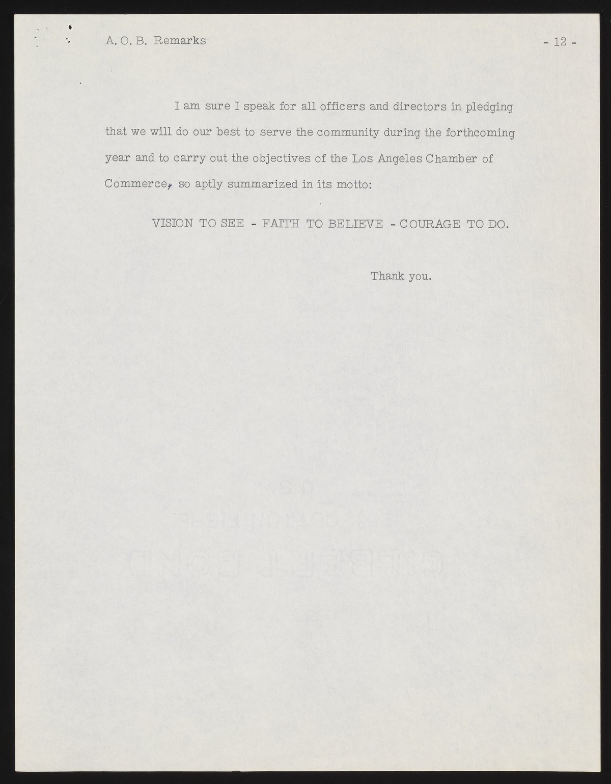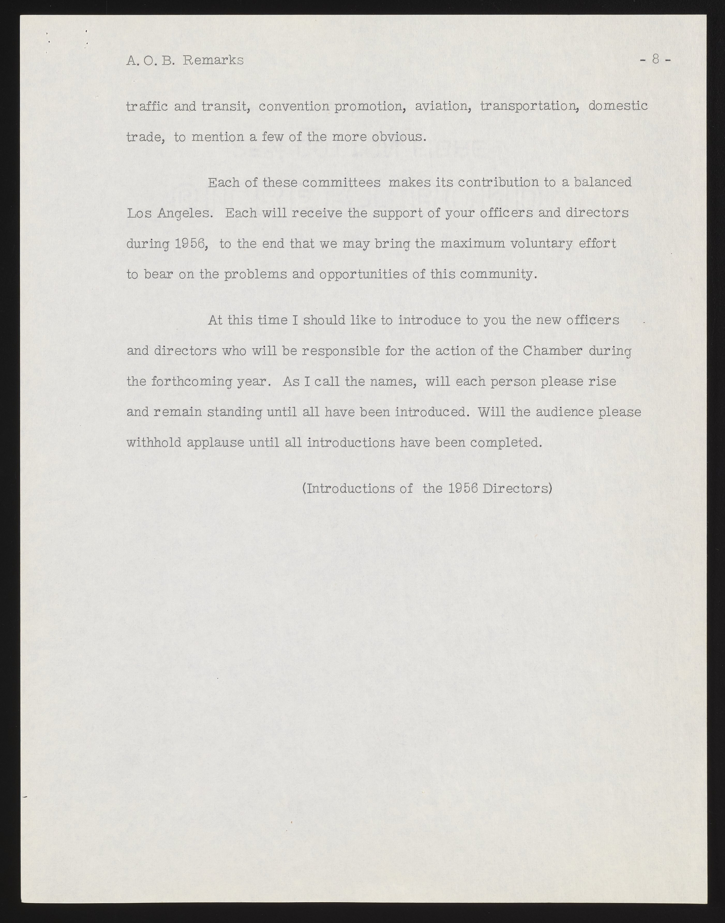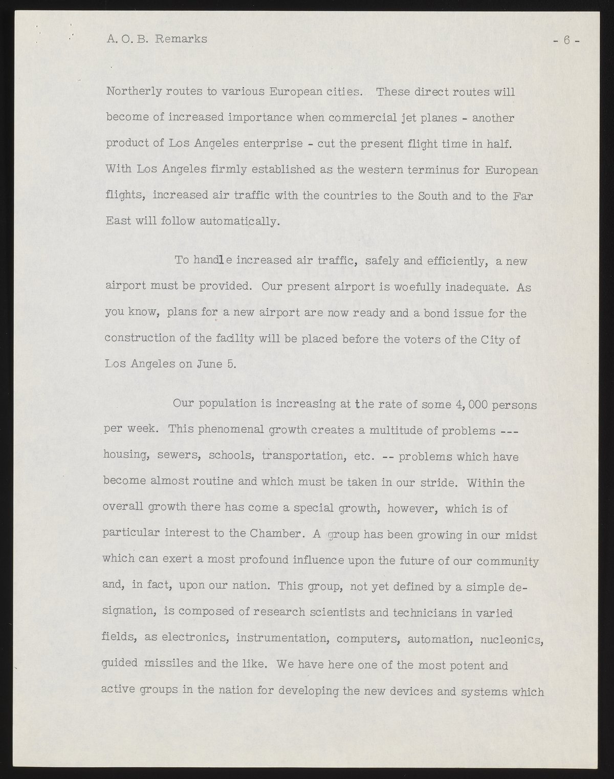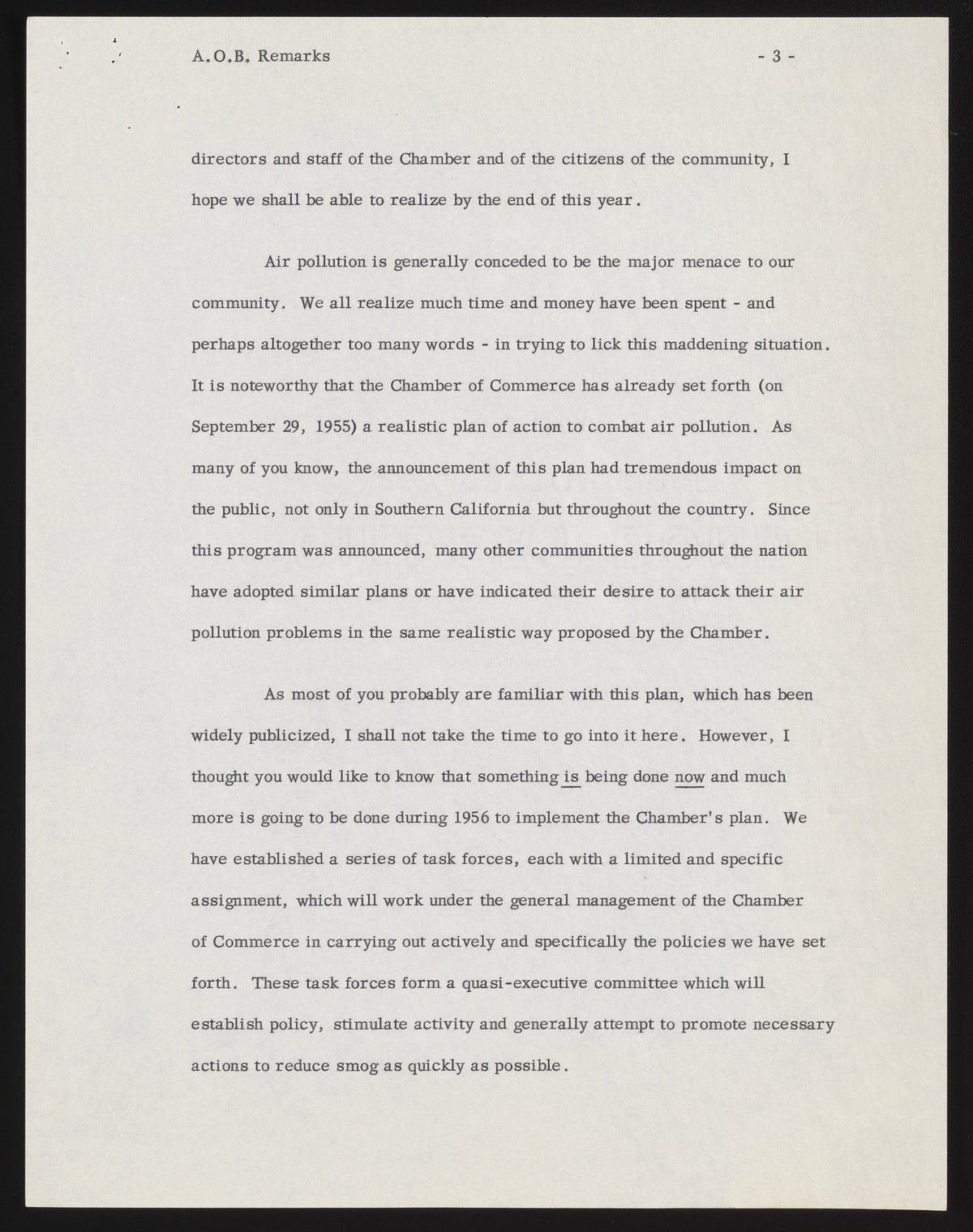 Small JPG1200 x 1537px — 231 KBFull-sized JPG2786 x 3568px — 1.0 MBOriginal fileTIFF — 2786 x 3568px — 28.5 MBBeckman's address as incoming president of the Los Angeles Chamber of Commerce references major challenges, including air pollution. A list of incoming officers and directors is included, along with minor annotations in pen.