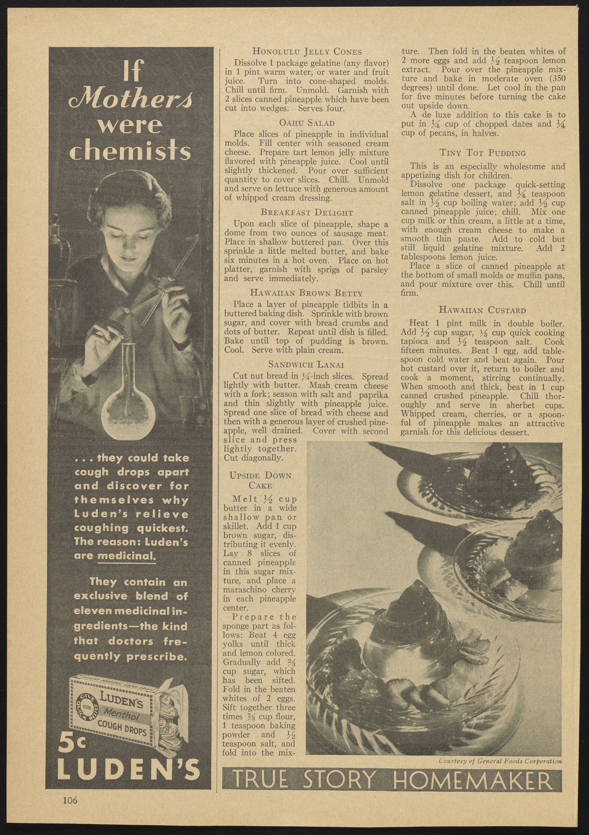 “If Mothers Were Chemists Luden's Menthol Cough Drops Advertisement,” circa 1930. Science History Institute. Philadelphia. https://digital.sciencehistory.org/works/3r074w140.