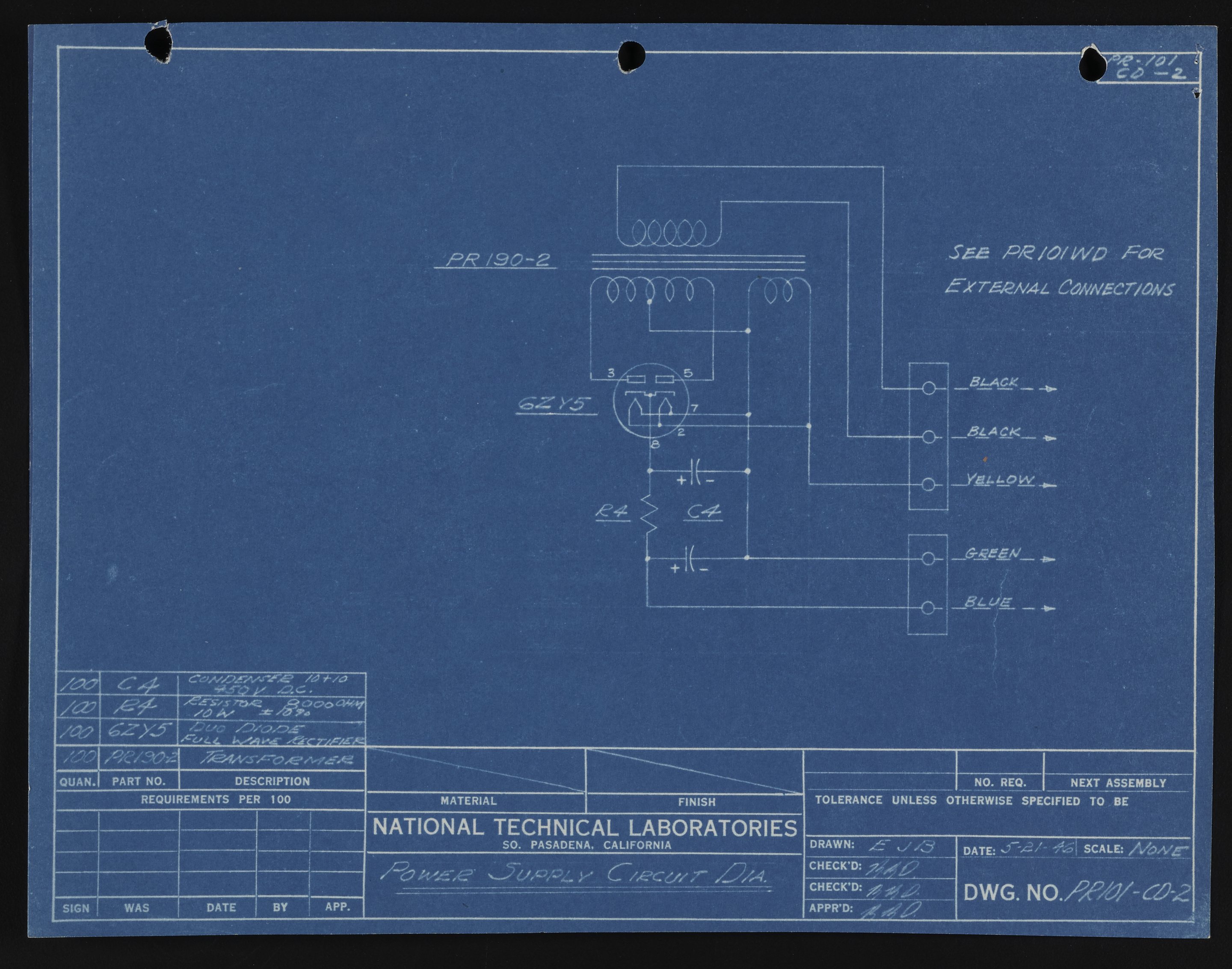 Beckman Instruments, Inc. “Beckman IR Spectrophotometer Power Supply Circuit Diagram,” May 21, 1946. Beckman Historical Collection, Box 18, Folder 9. Science History Institute. Philadelphia. https://digital.sciencehistory.org/works/3t945q78b.