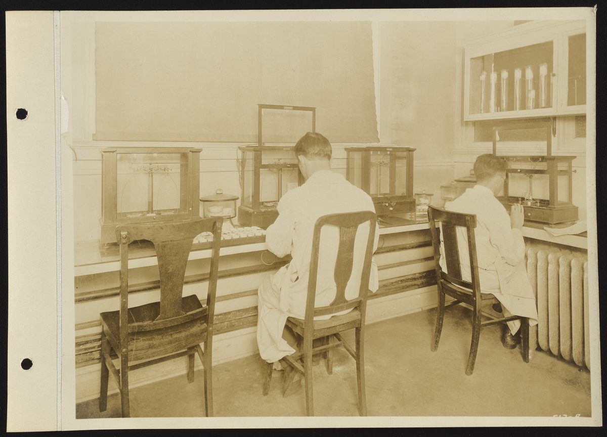 Charles S. White and C.C. Dennis using balances at Dearborn laboratory facility