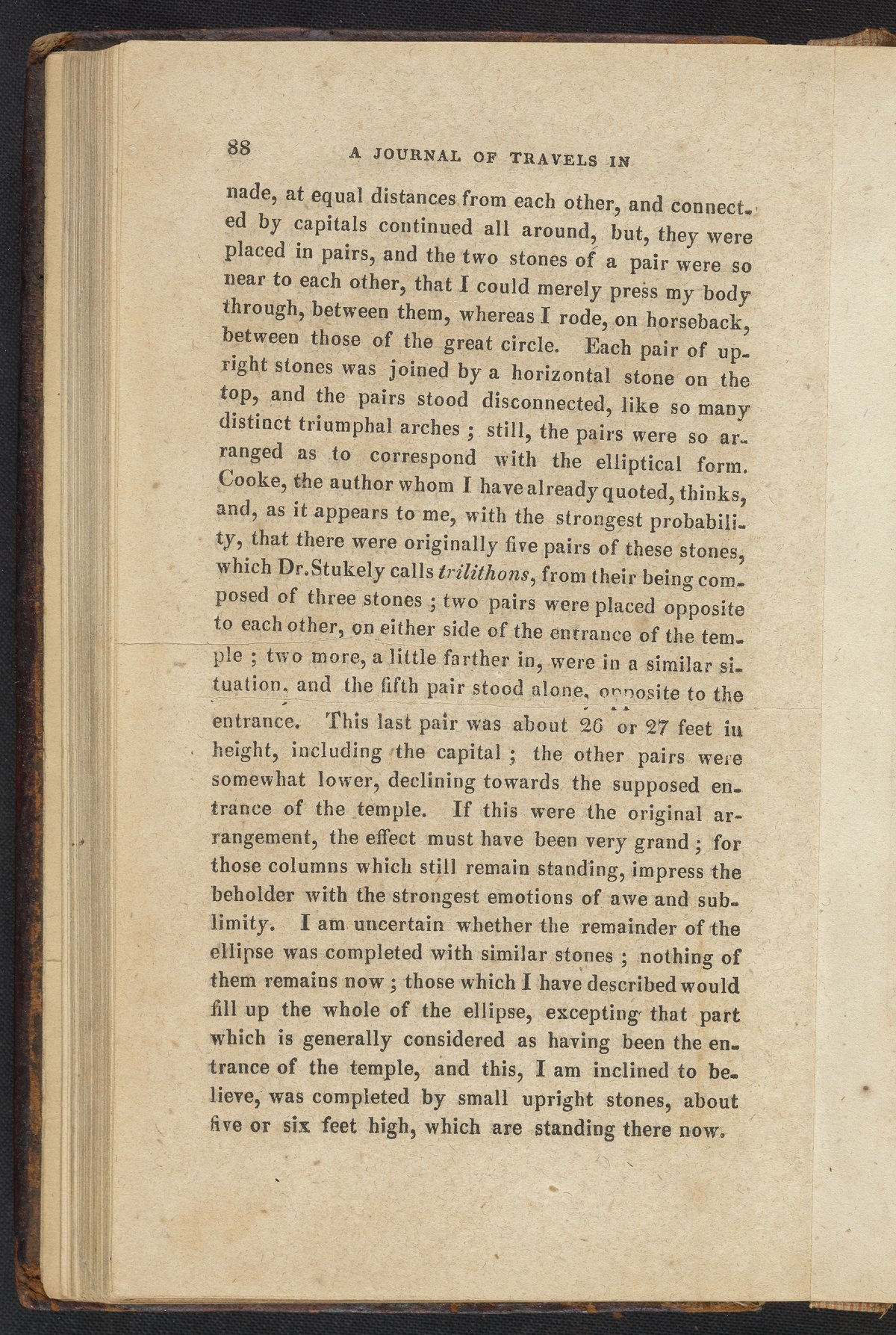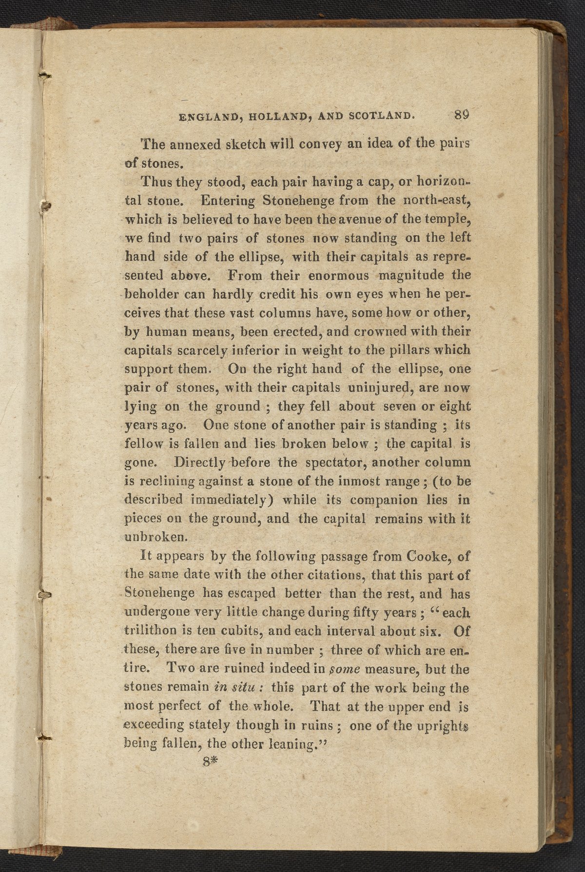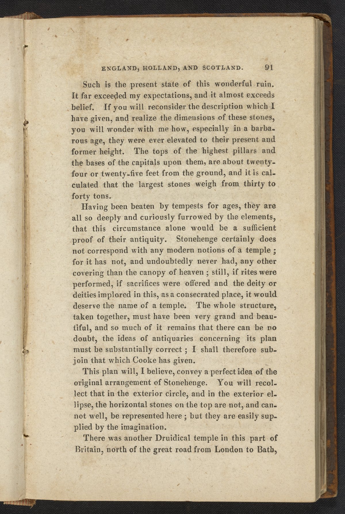 Small JPG1200 x 1787px — 372 KBLarge JPG2880 x 4288px — 2.3 MBFull-sized JPG3076 x 4580px — 2.6 MBOriginal fileTIFF — 3076 x 4580px — 40.4 MBTravel log of Benjamin Silliman (1779-1864) detailing his research in England, Holland, and Scotland. Silliman founded the American Journal of Science and discovered a way to distill petroleum. Written in first-person, this book gives an insight into Silliman's personal feelings and observations about his experiences in several cities and towns across England, Holland, and Scotland, as well as his journey back to the United States. It notably contains several fold-out diagrams of Stonehenge. Select pages have been digitized from this work including the frontismatter and all plates with their corresponding pages.