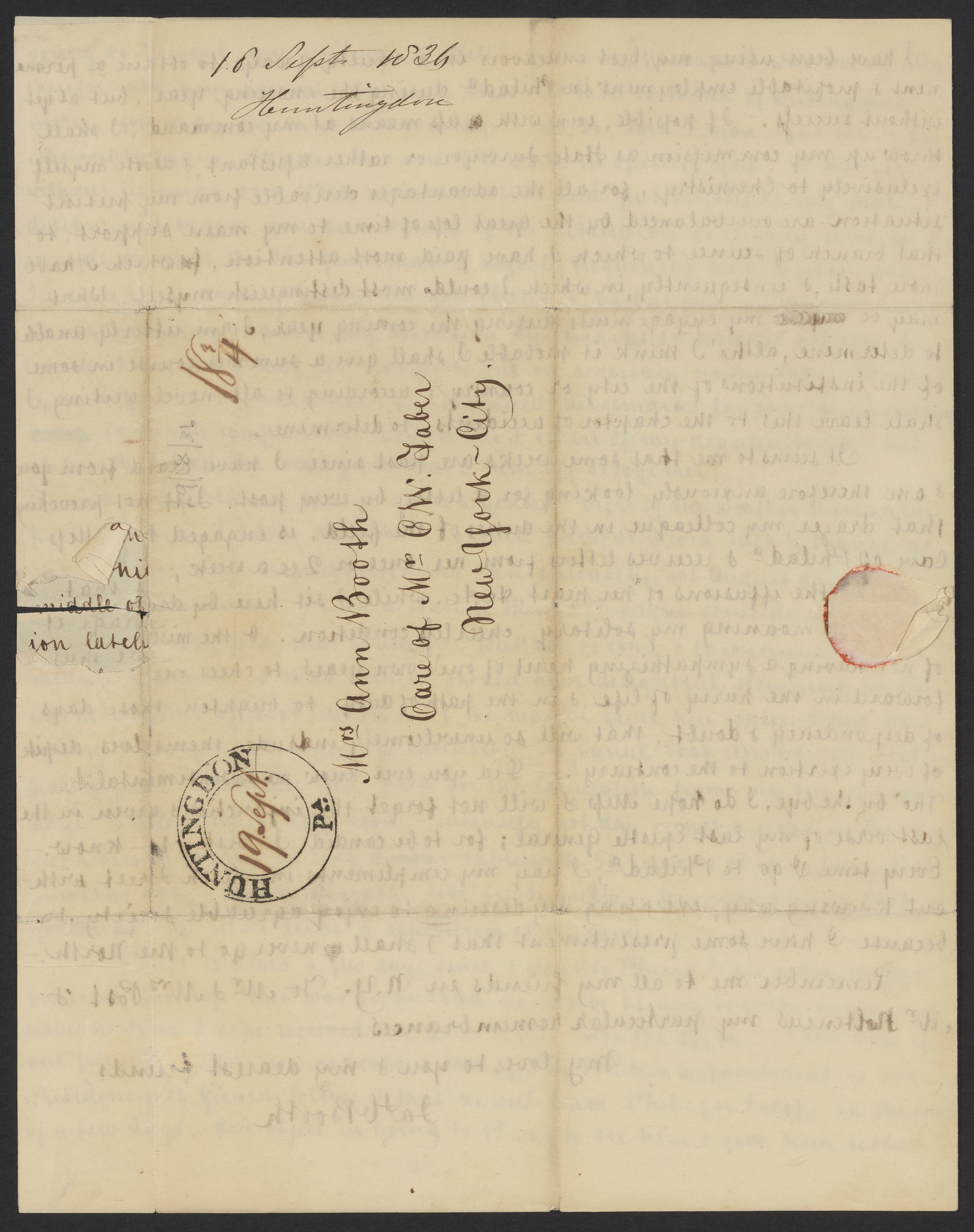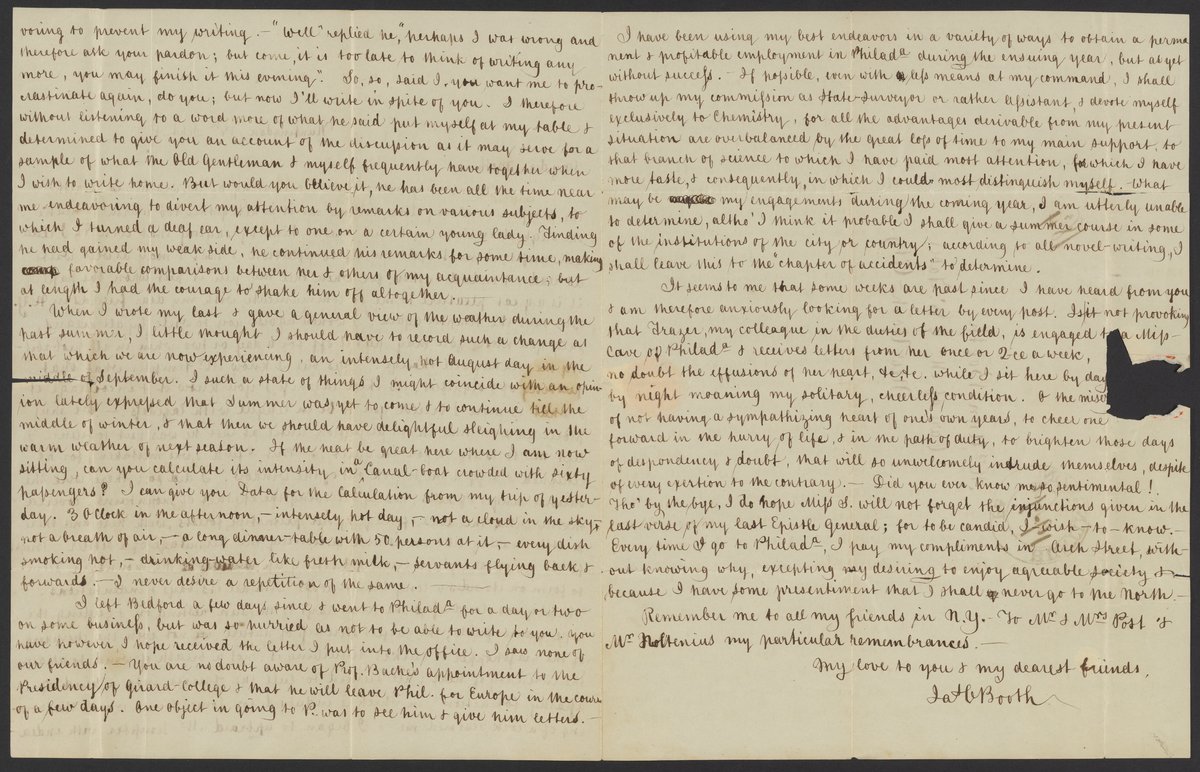 Booth, James Curtis. “Letter from James Curtis Booth to His Mother, Ann Booth,” September 18, 1836. Papers of James Curtis Booth, Box 1, Folder 2. Science History Institute. Philadelphia. https://digital.sciencehistory.org/works/3vz1mqe.
