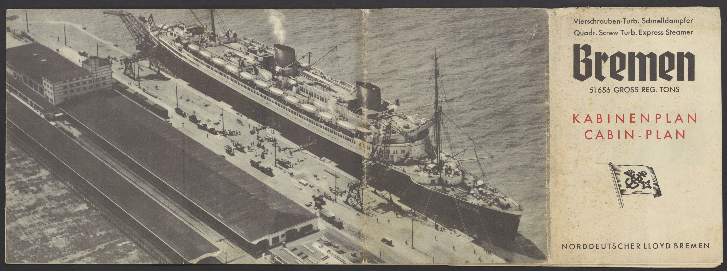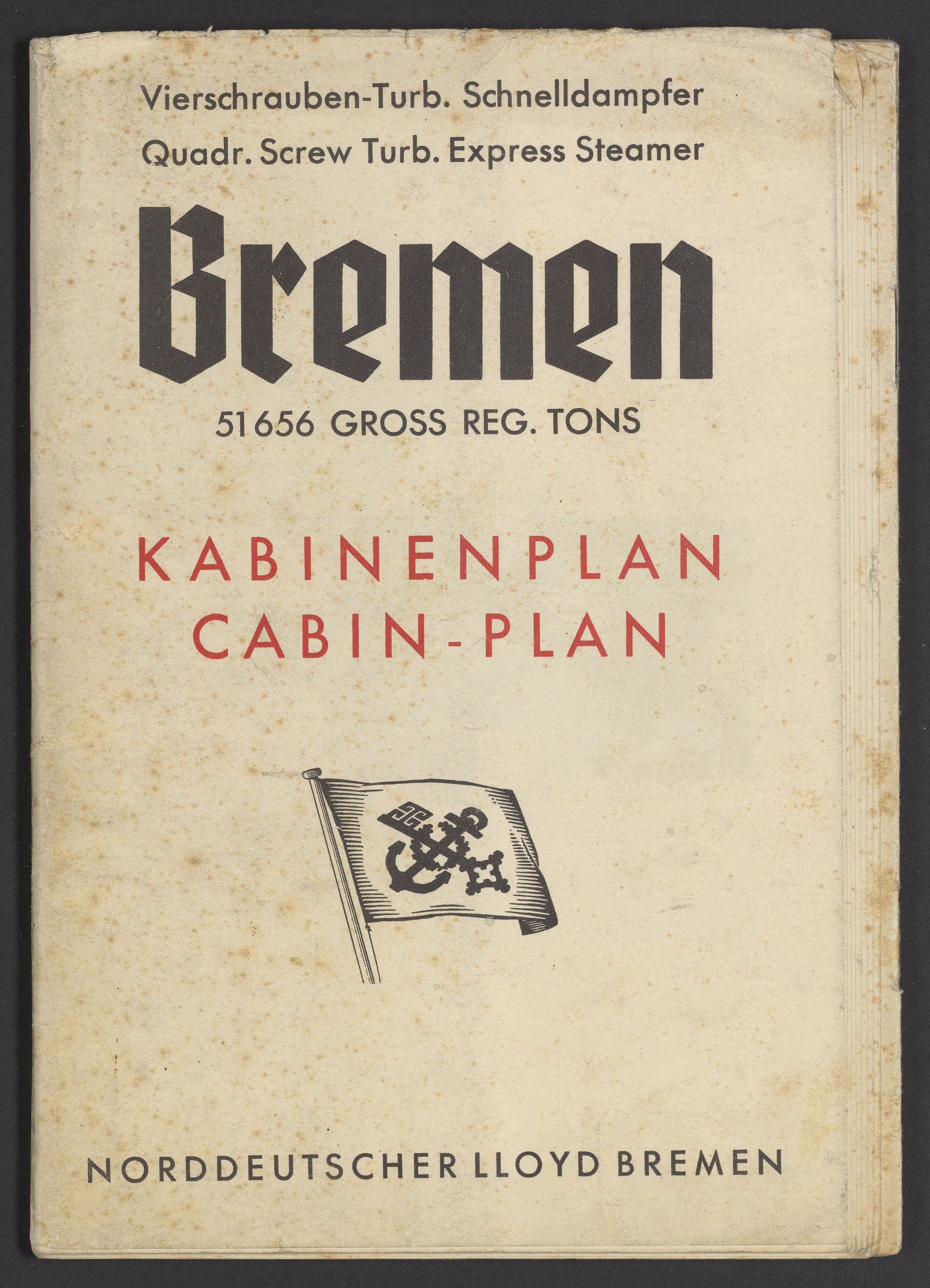 Norddeutscher Lloyd. “Norddeutscher Lloyd Bremen Cabin Plan,” 1936. Papers of Georg and Max Bredig, Box 10, Folder 30. Science History Institute. Philadelphia. https://digital.sciencehistory.org/works/3wzgzro.