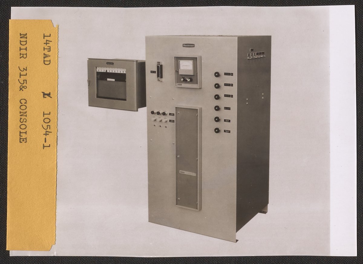 Dietrich, T. A. “Beckman NDIR 315 and Console,” 1960–1969. Beckman Historical Collection, Box 84. Science History Institute. Philadelphia. https://digital.sciencehistory.org/works/3x816m96h.