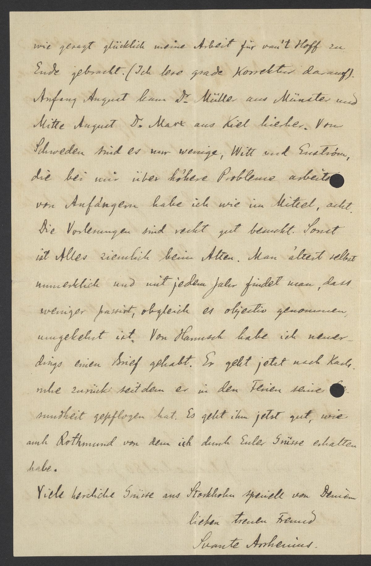 Viele herzliche Grüsse aus Stockholm speziell von Deinem lieben treuen Freund Svante Arrhenius