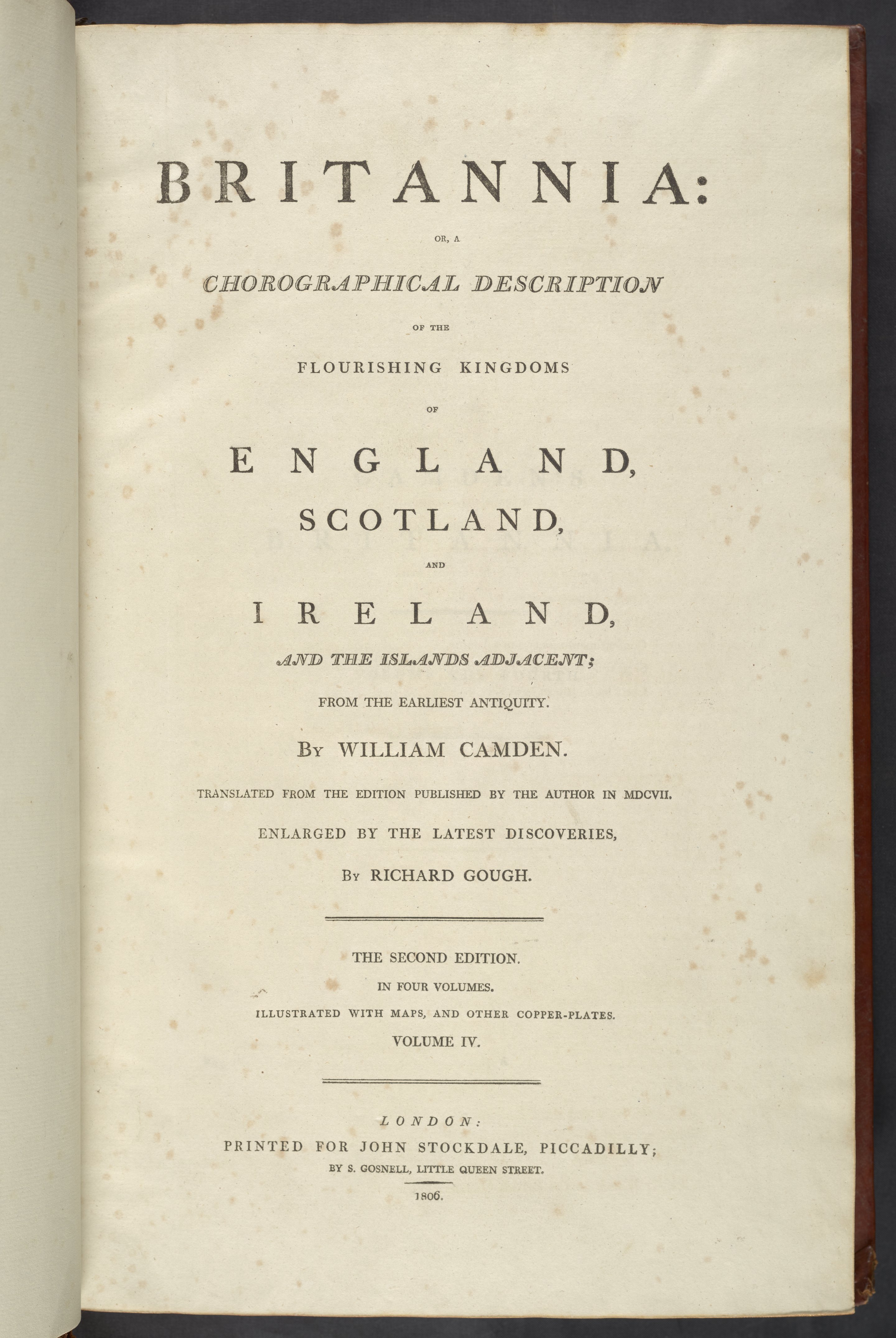 Britannia: or, a Chorographical Description of the Flourishing Kingdoms of England, Scotland, and Ireland, and the Islands Adjacent, Vol. 4
