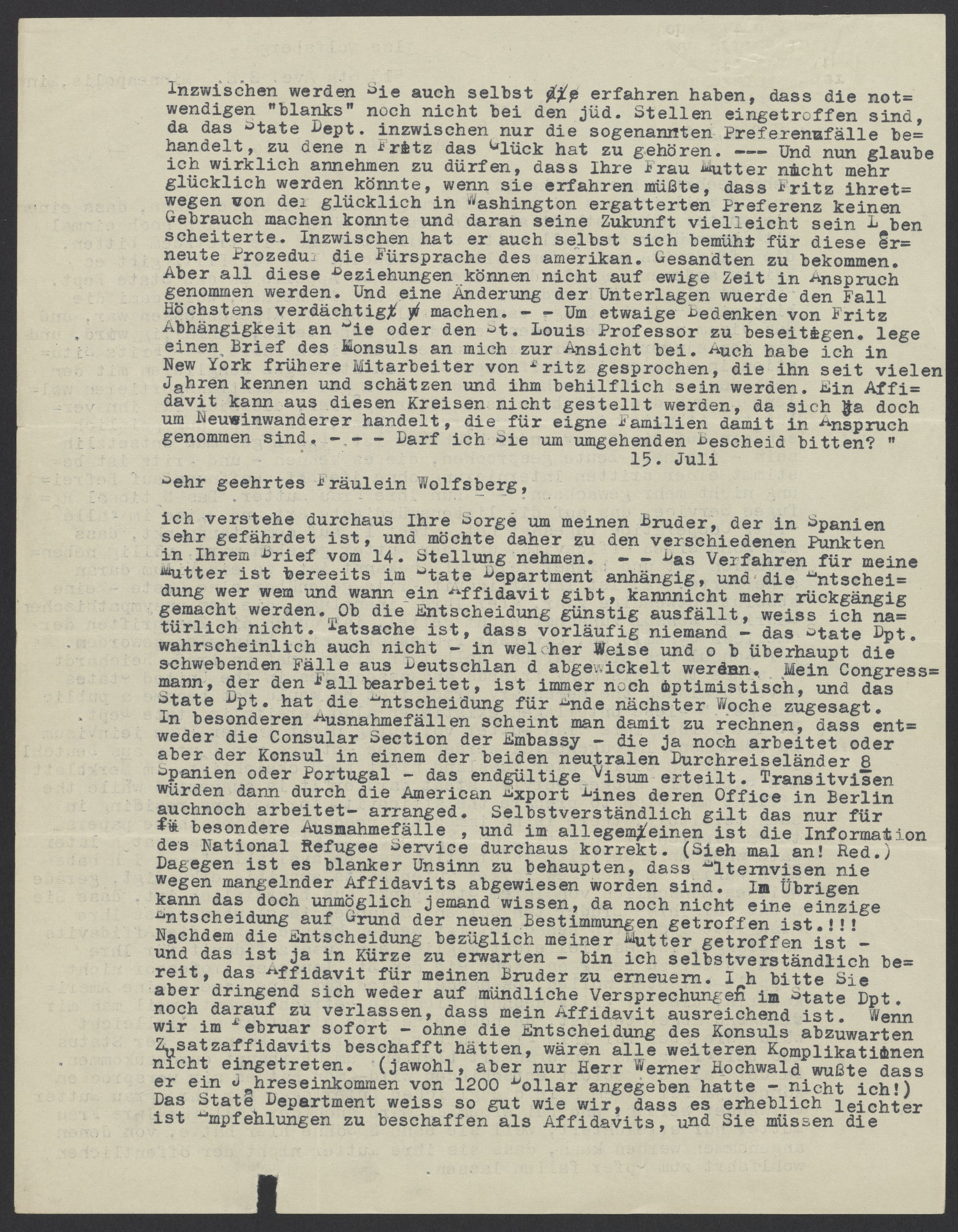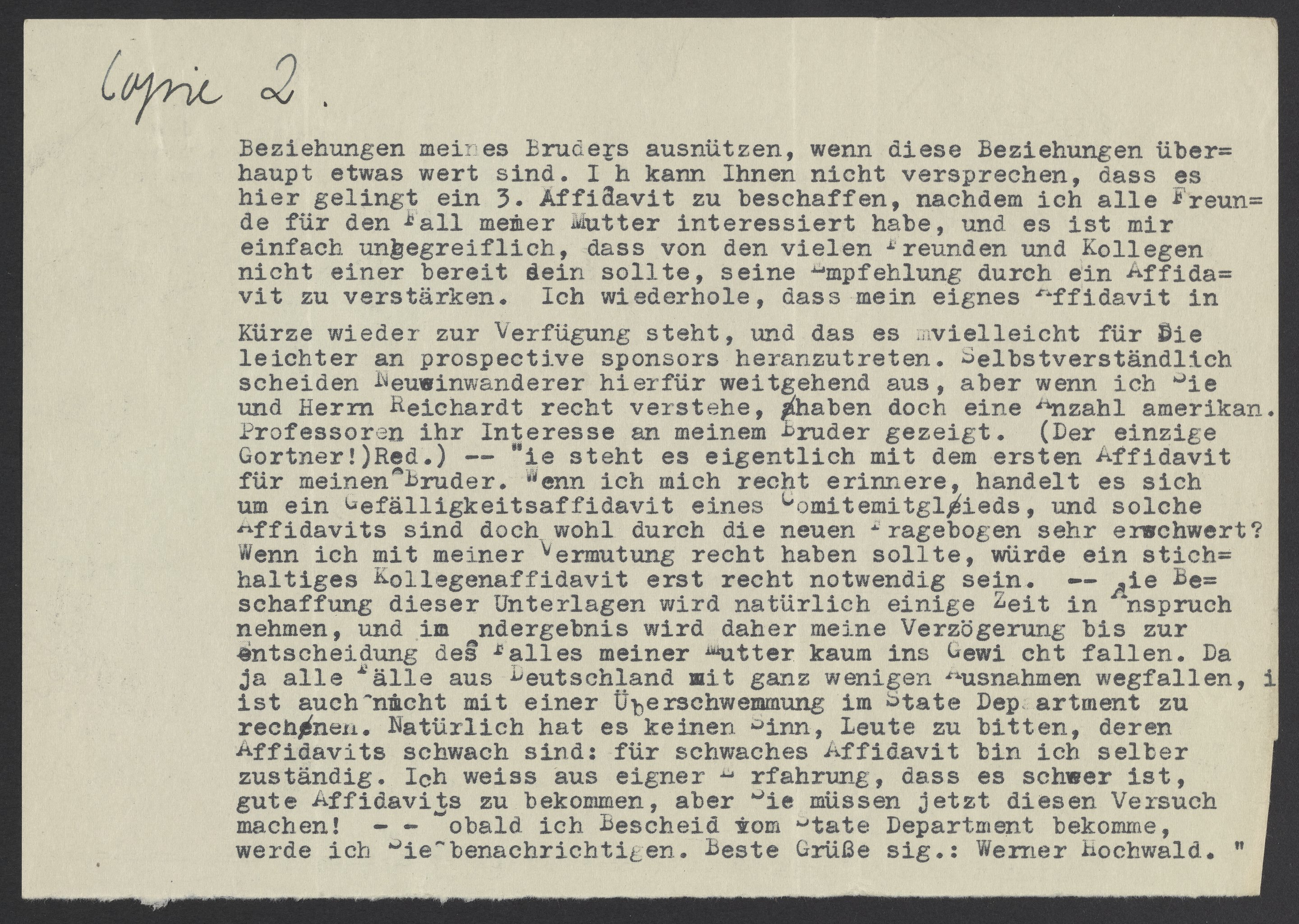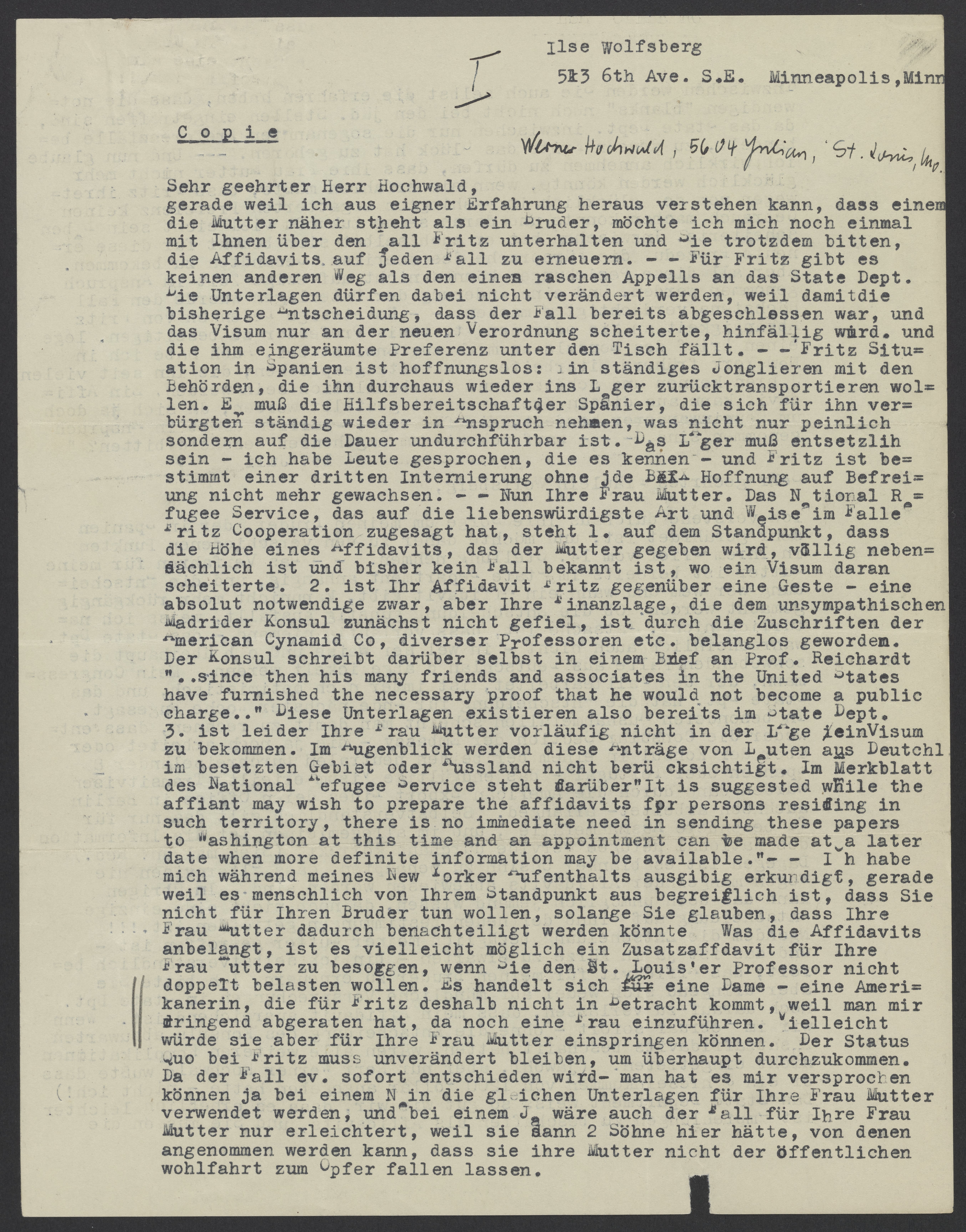 Letter from Ilse Wolfsberg to Werner Hochwald