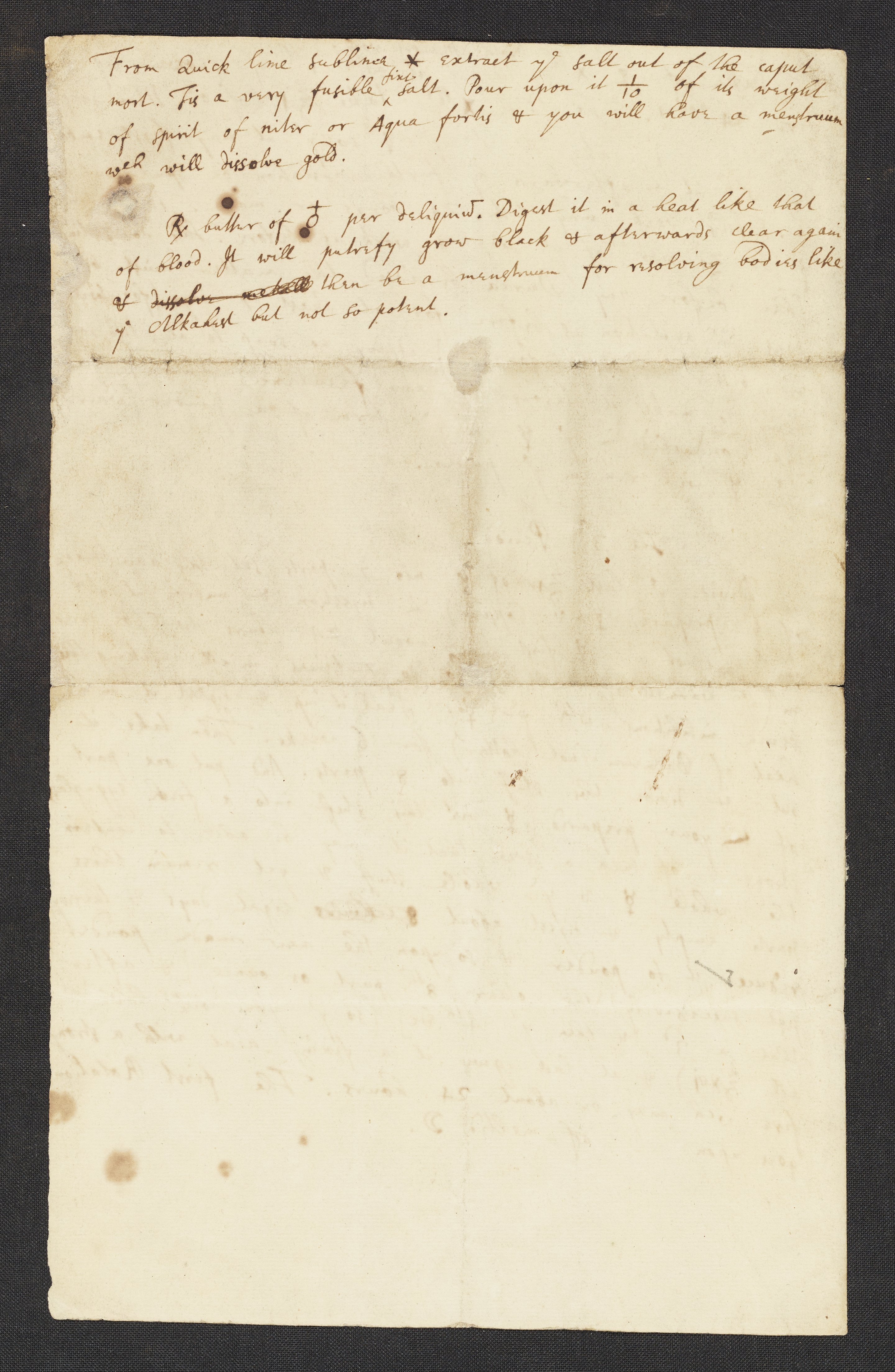 Small JPG1200 x 1867px — 421 KBLarge JPG2880 x 4482px — 2.2 MBFull-sized JPG4795 x 7462px — 5.6 MBOriginal fileTIFF — 4795 x 7462px — 102 MBWritten in Isaac Newton's hand, Roth Mallor’s Work consists of extracts from the work of Erasmus Rothmaler, a German alchemist about whom essentially nothing is known. Text found on verso is two unrelated chemical recipes for "a menstruum that will disolve gold" and "a menstruum for resolving bodies like the Alkahest but not so potent."