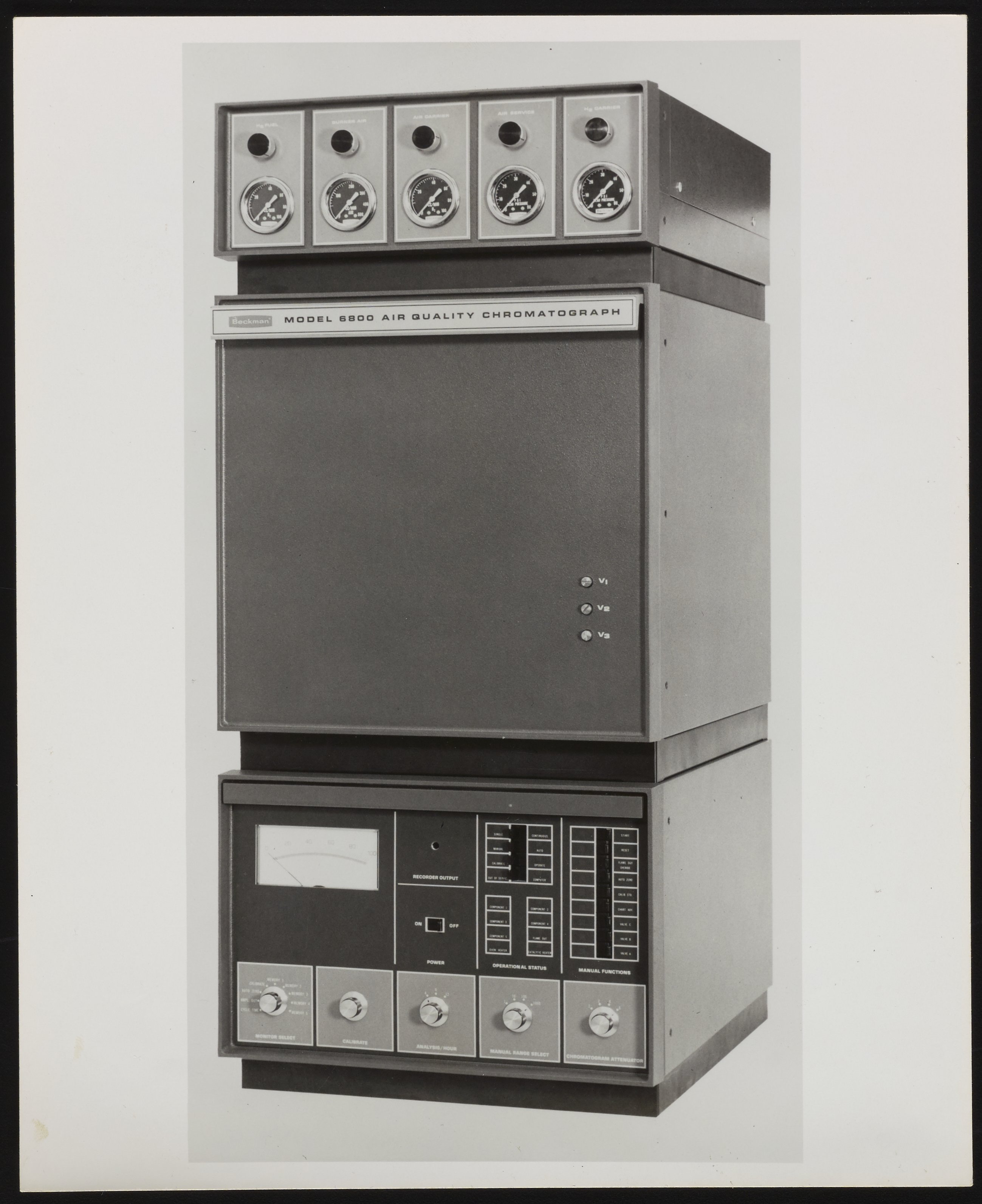 “Beckman Model 6800 Air Quality Chromatograph,” 1970–1979. Beckman Historical Collection, Box 58, Folder 28. Science History Institute. Philadelphia. https://digital.sciencehistory.org/works/474299142.