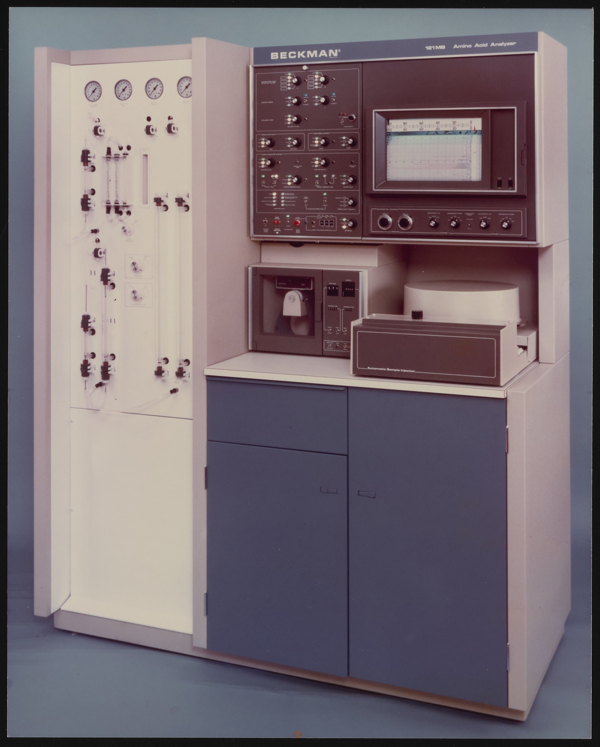 “Spinco Model 121MB Amino Acid Analyzer,” n.d. Beckman Historical Collection, Box 59, Folder 102. Science History Institute. Philadelphia. https://digital.sciencehistory.org/works/474299249.