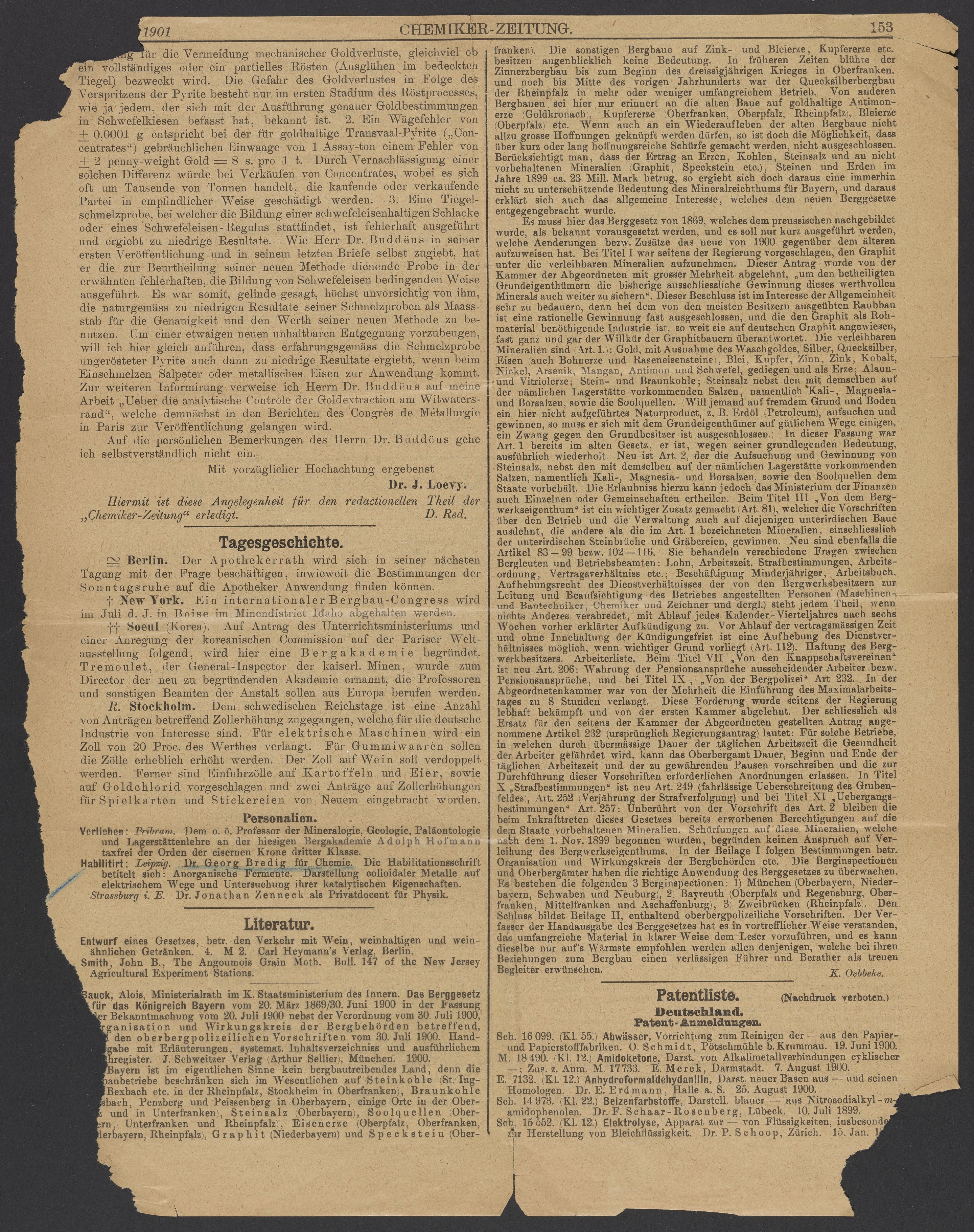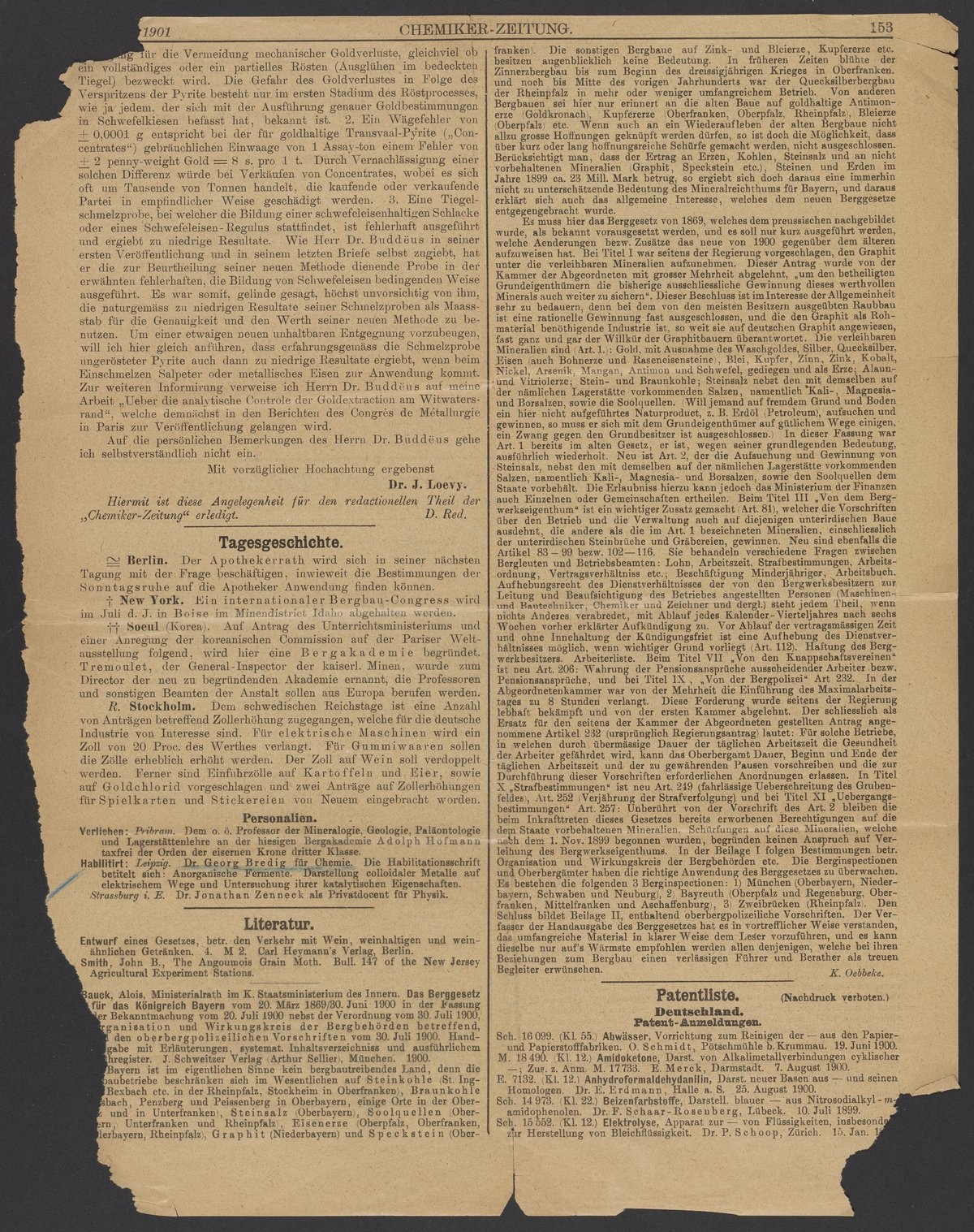 “Handelsblatt Der Chemiker-Zeitung.” Chemiker Zeitung, 1901. Papers of Georg and Max Bredig, Box 4, Folder 13. Science History Institute. Philadelphia. https://digital.sciencehistory.org/works/4955it9.