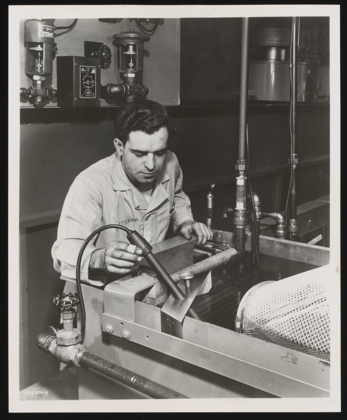 “Unidentified Man Operating a Rinse Tank Control System,” n.d. Beckman Historical Collection, Box 79. Science History Institute. Philadelphia. https://digital.sciencehistory.org/works/4b29b611r.