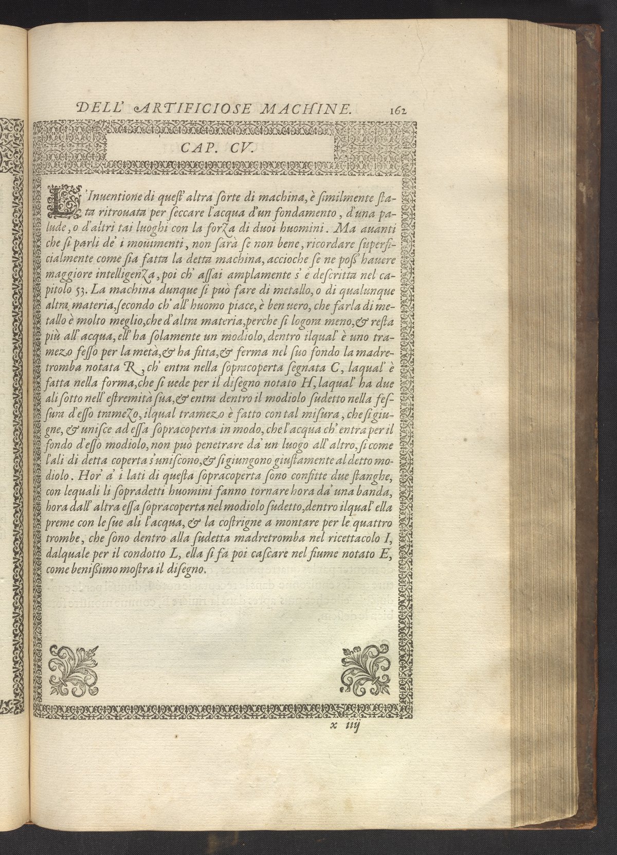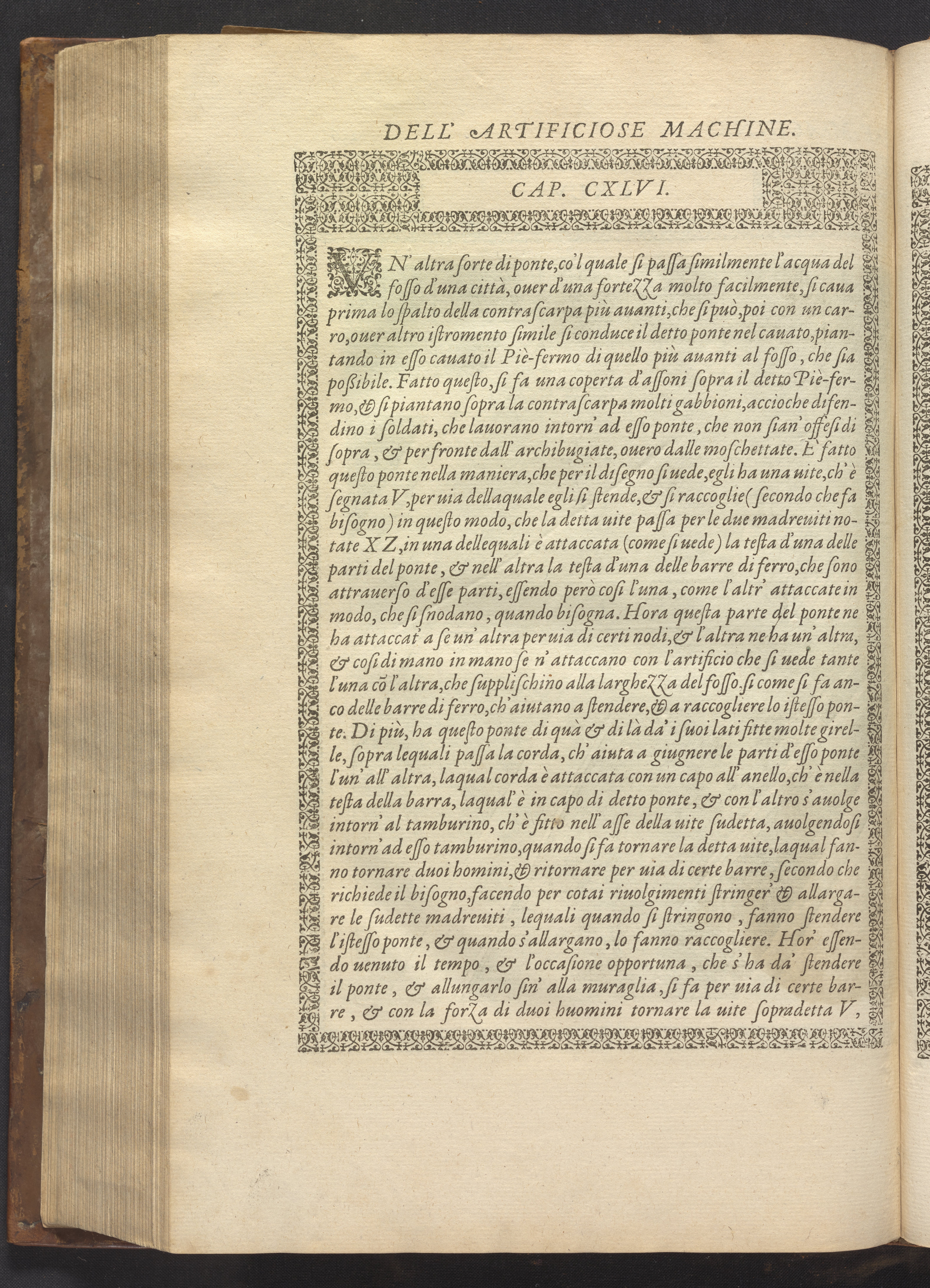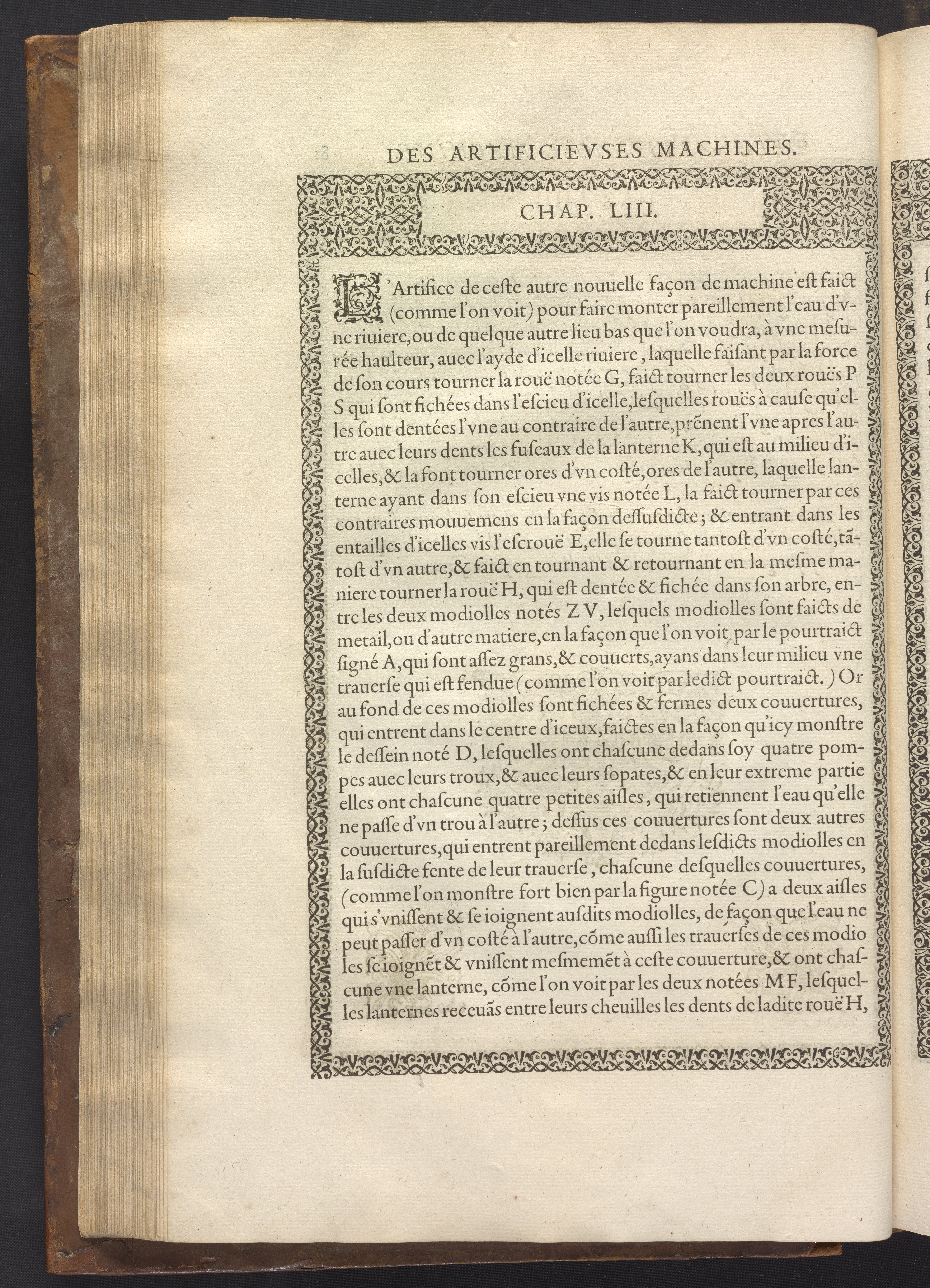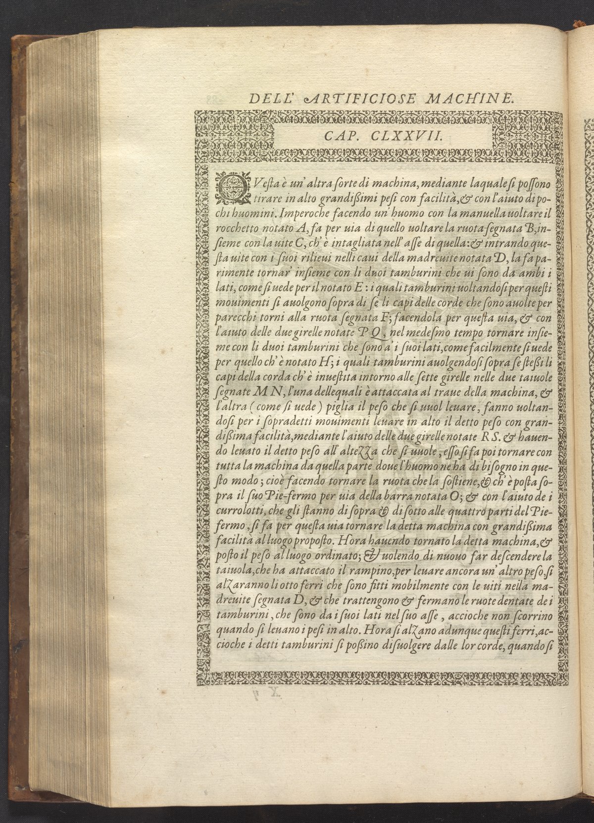 Le diverse et artificiose machine belongs to a new genre that emerged in the late 16th century, the "theatre of machines," which offered original mechanical solutions to the problems of everyday life. Ramelli's book includes ingenious designs to address water management, the milling of grain, excavation, the hauling of heavy objects, the siege and defense of cities, and even the entertainment of the social elite. Each of Ramelli's nearly two hundred machines is illustrated with a full-page or double-spread engraving accompanied by detailed textual descriptions of the mechanism in both Italian and French; Ramelli, an Italian military engineer, spent the latter half of his life and career in France as ingénieur du roi (engineer to the King) in the service of Henri III and Henri IV.