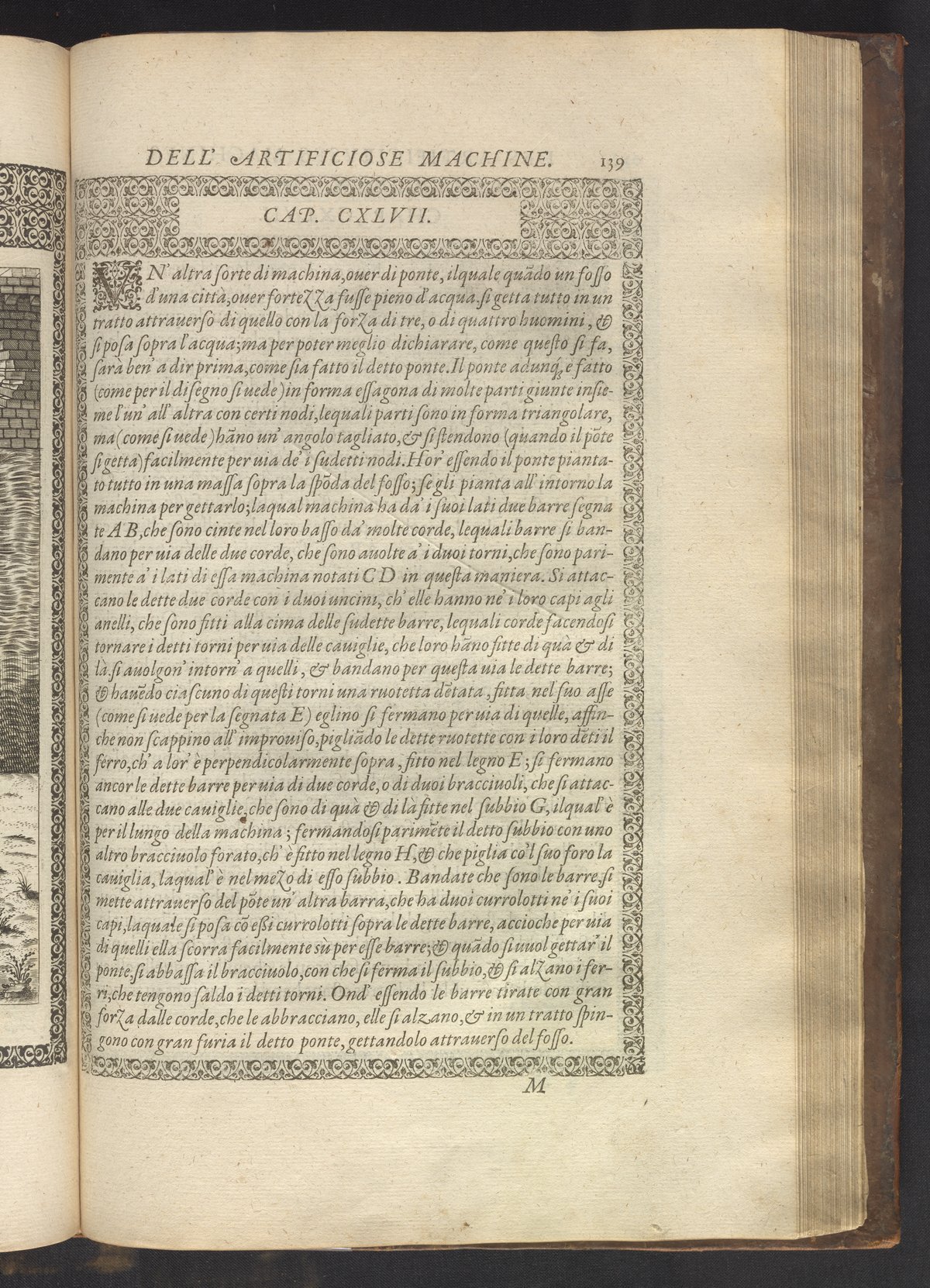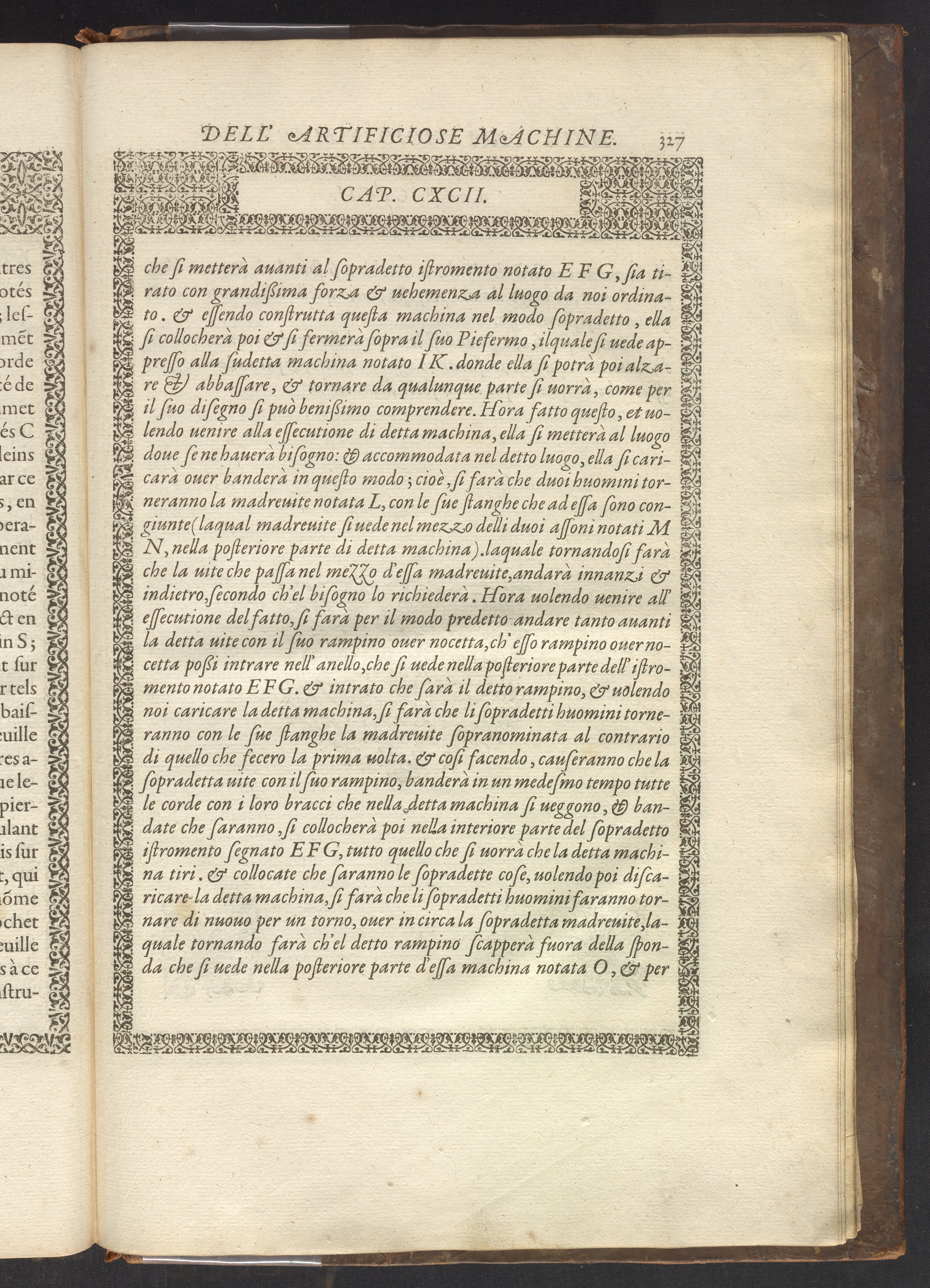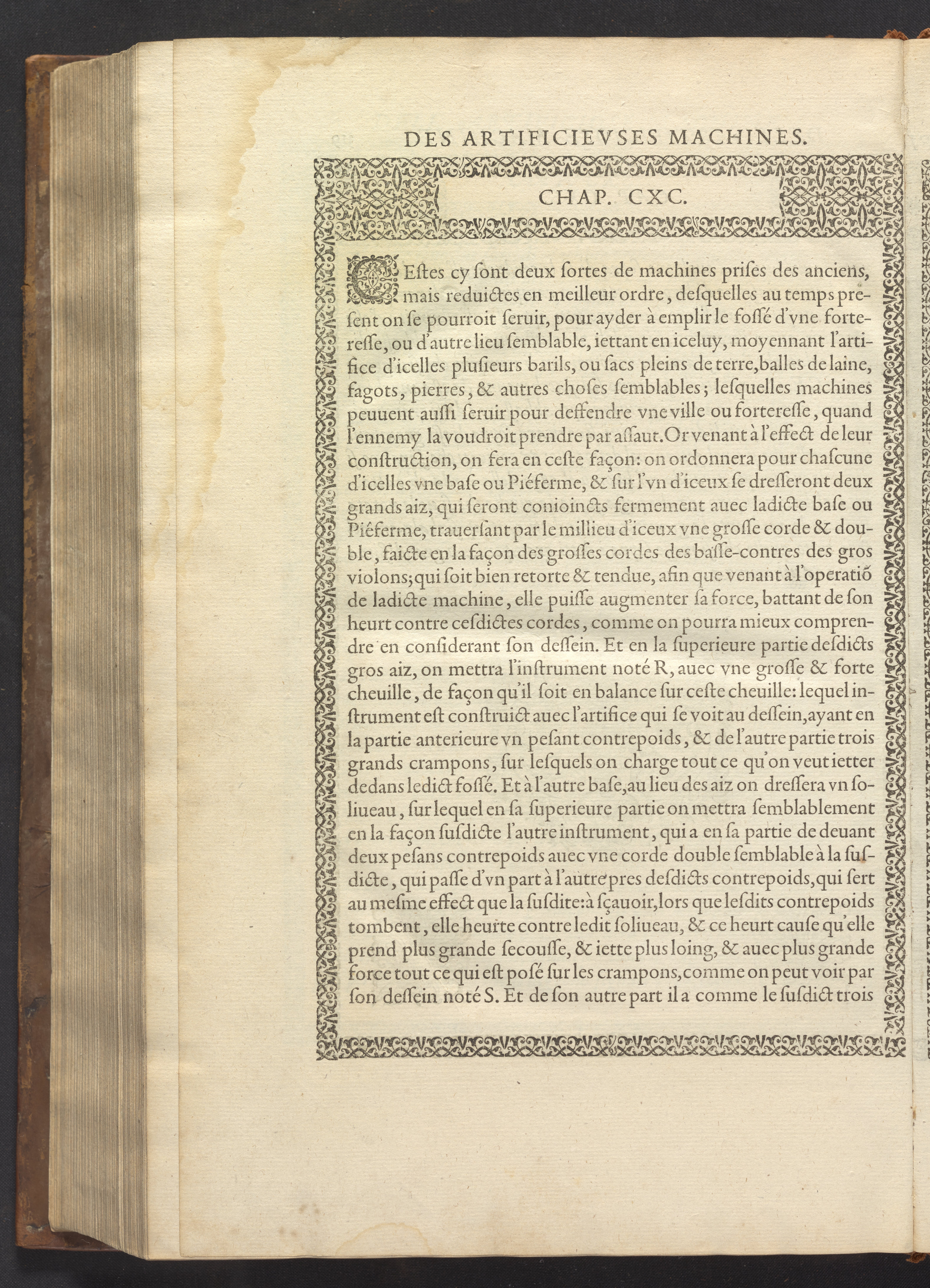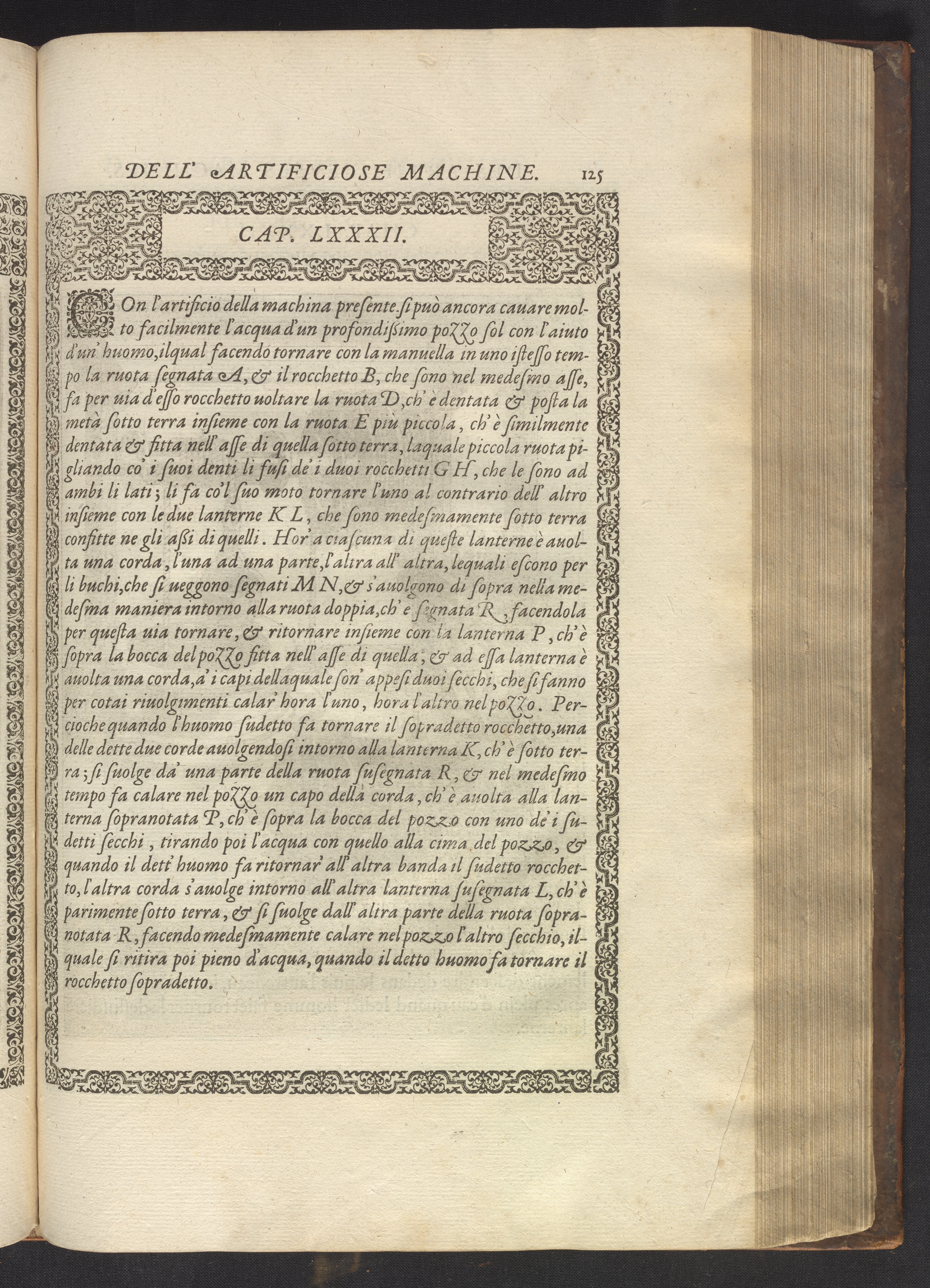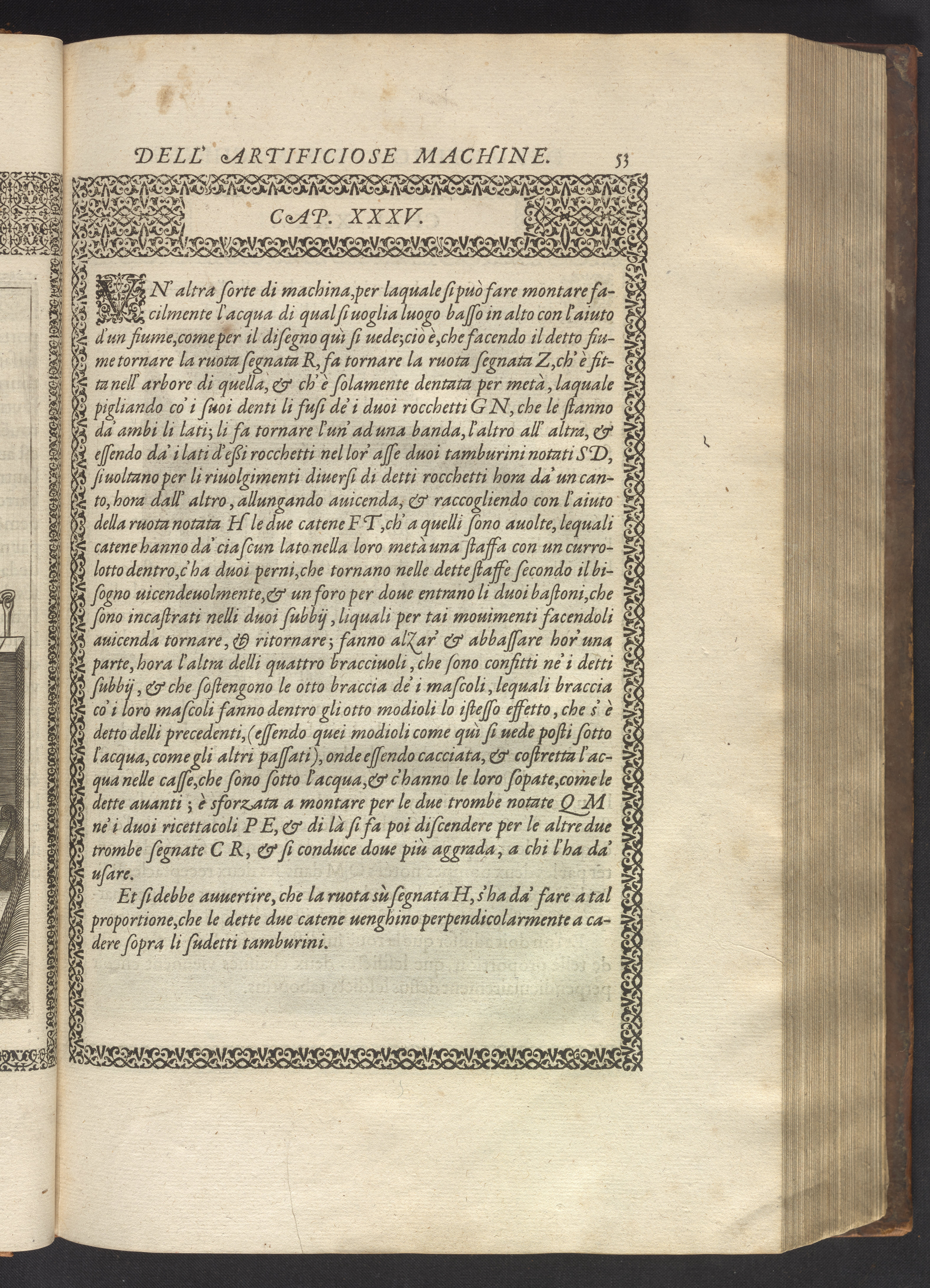 Le diverse et artificiose machine belongs to a new genre that emerged in the late 16th century, the "theatre of machines," which offered original mechanical solutions to the problems of everyday life. Ramelli's book includes ingenious designs to address water management, the milling of grain, excavation, the hauling of heavy objects, the siege and defense of cities, and even the entertainment of the social elite. Each of Ramelli's nearly two hundred machines is illustrated with a full-page or double-spread engraving accompanied by detailed textual descriptions of the mechanism in both Italian and French; Ramelli, an Italian military engineer, spent the latter half of his life and career in France as ingénieur du roi (engineer to the King) in the service of Henri III and Henri IV.