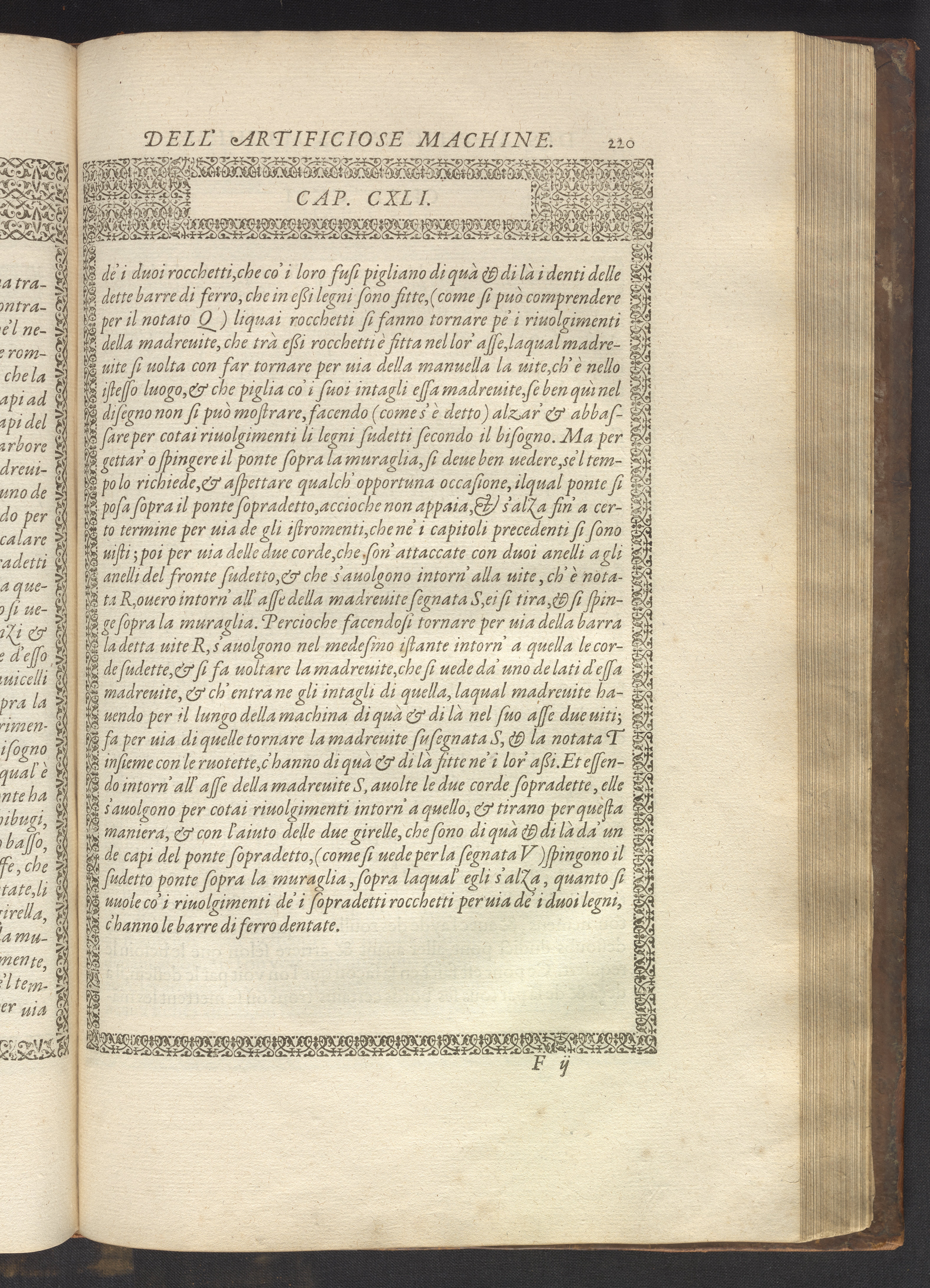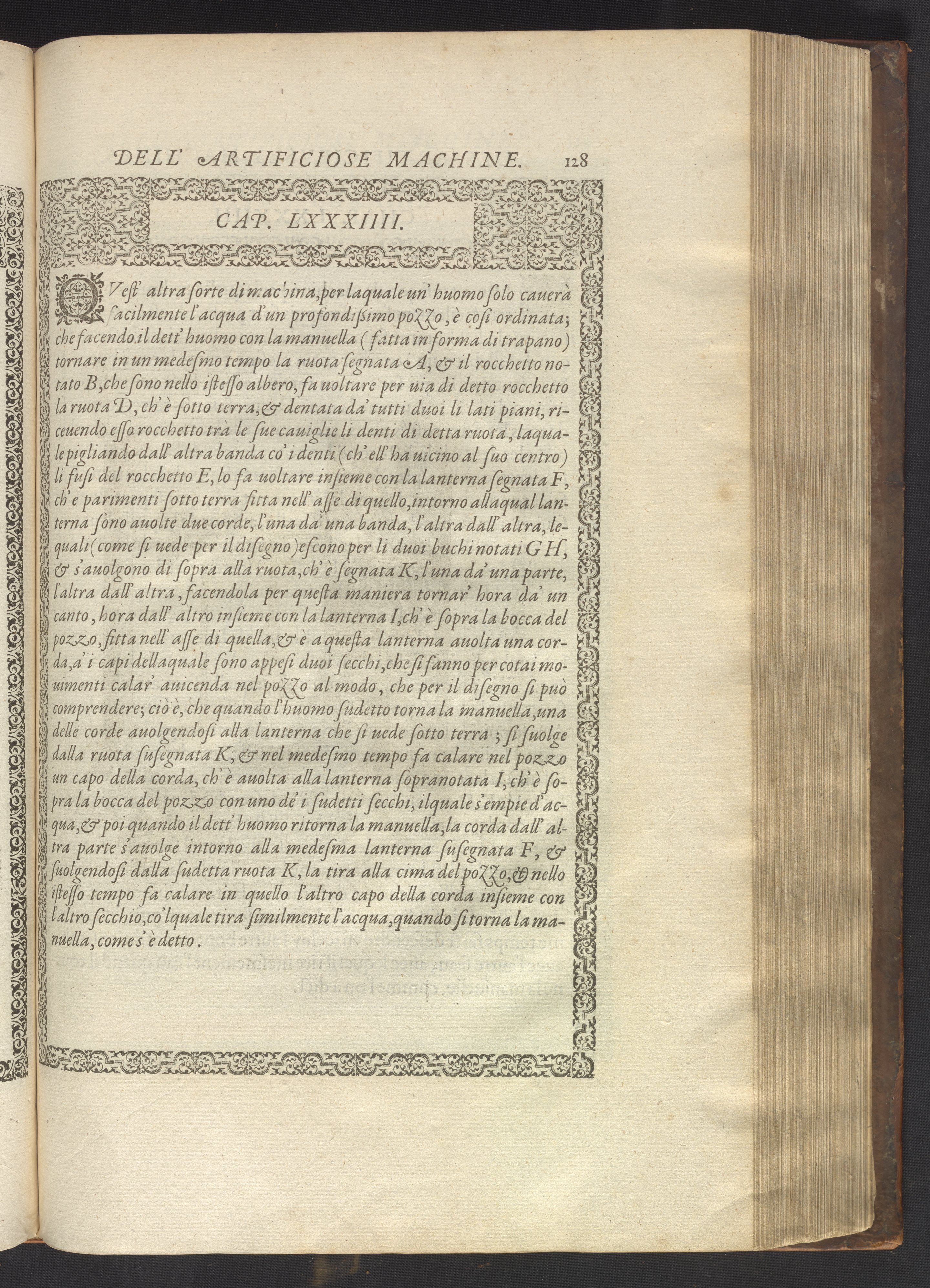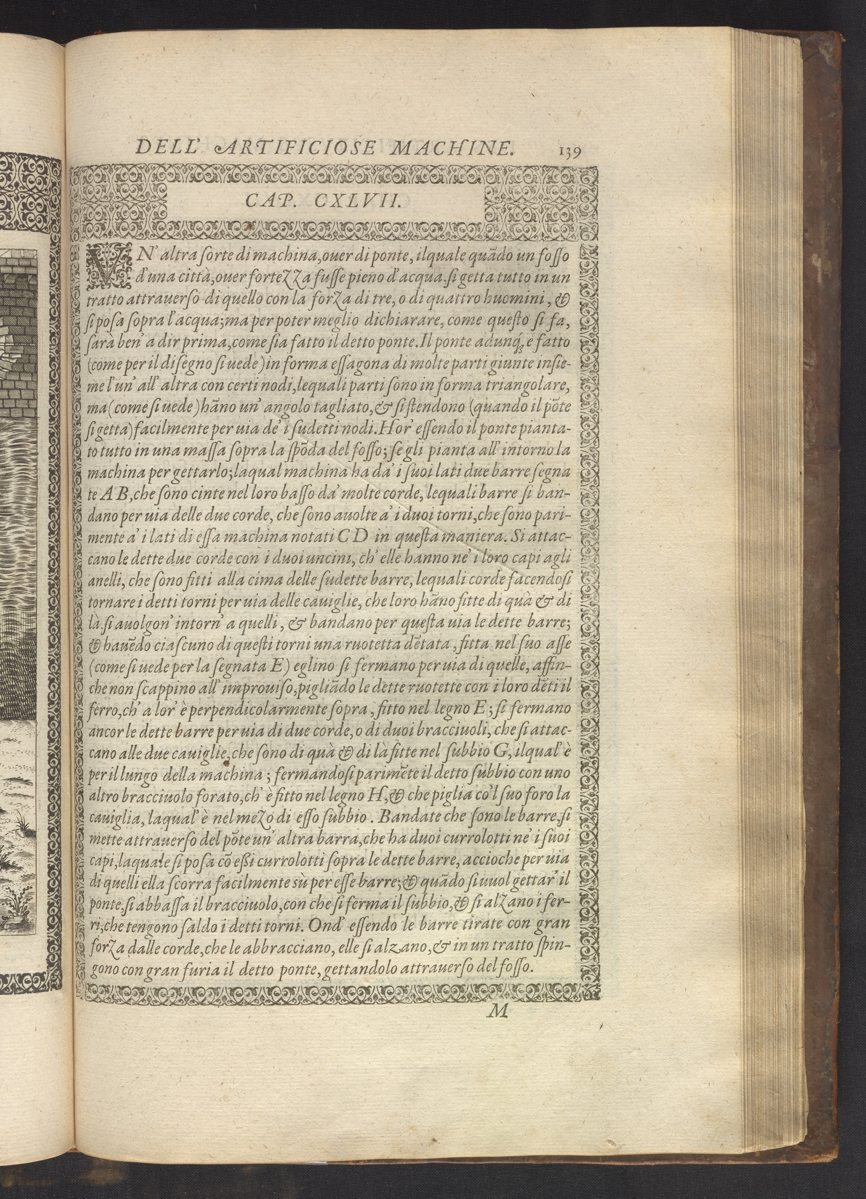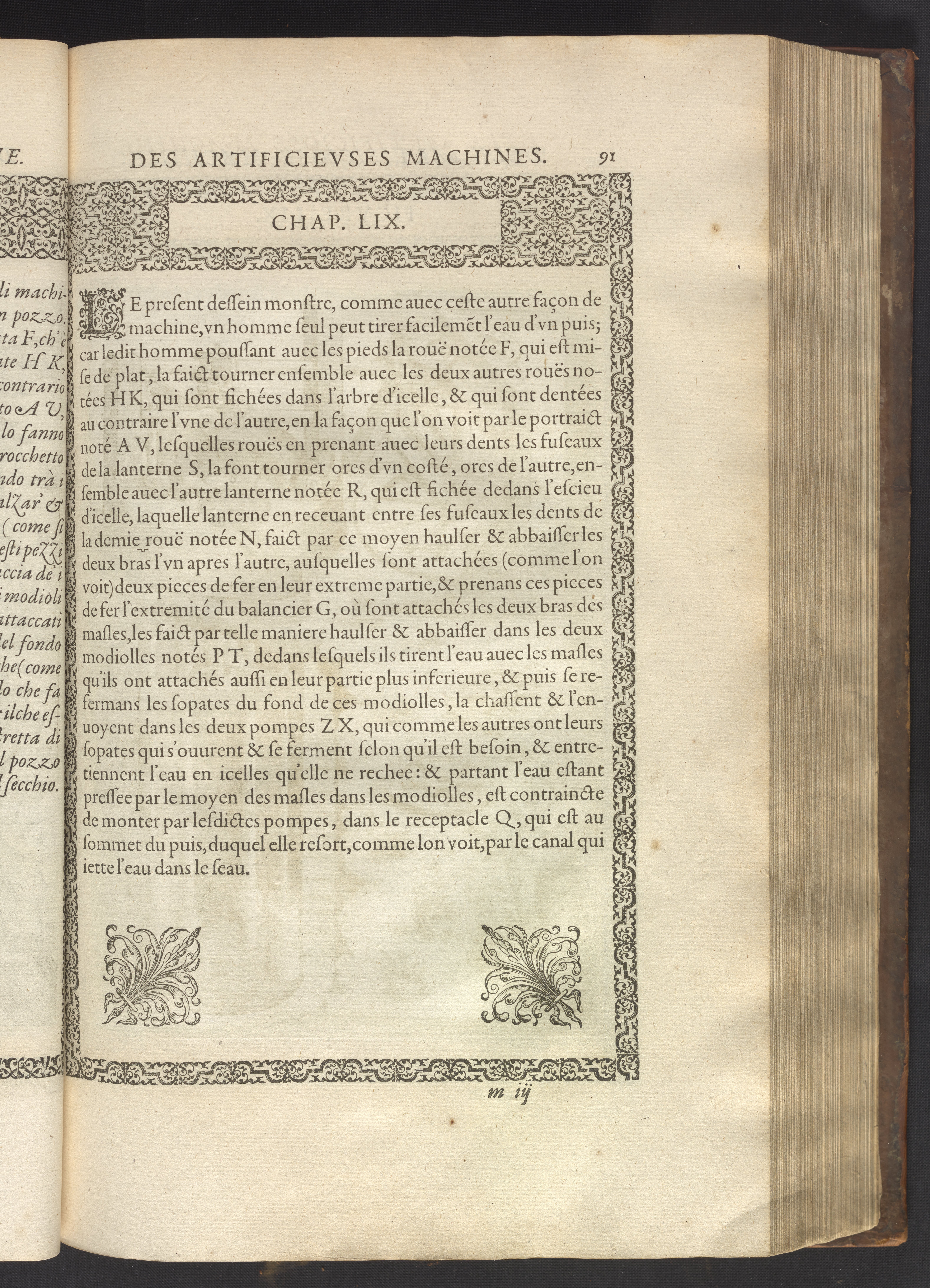Le diverse et artificiose machine belongs to a new genre that emerged in the late 16th century, the "theatre of machines," which offered original mechanical solutions to the problems of everyday life. Ramelli's book includes ingenious designs to address water management, the milling of grain, excavation, the hauling of heavy objects, the siege and defense of cities, and even the entertainment of the social elite. Each of Ramelli's nearly two hundred machines is illustrated with a full-page or double-spread engraving accompanied by detailed textual descriptions of the mechanism in both Italian and French; Ramelli, an Italian military engineer, spent the latter half of his life and career in France as ingénieur du roi (engineer to the King) in the service of Henri III and Henri IV.