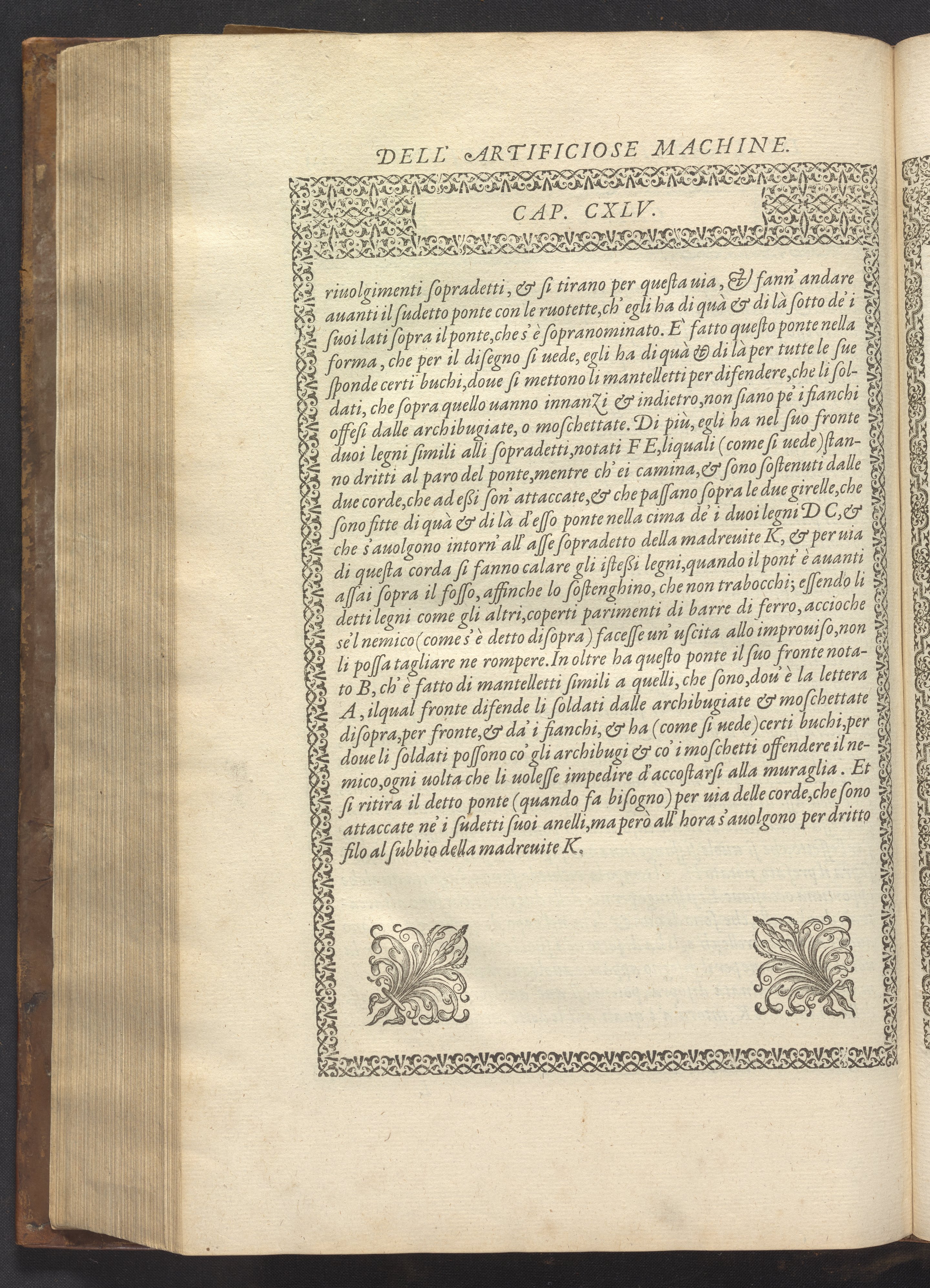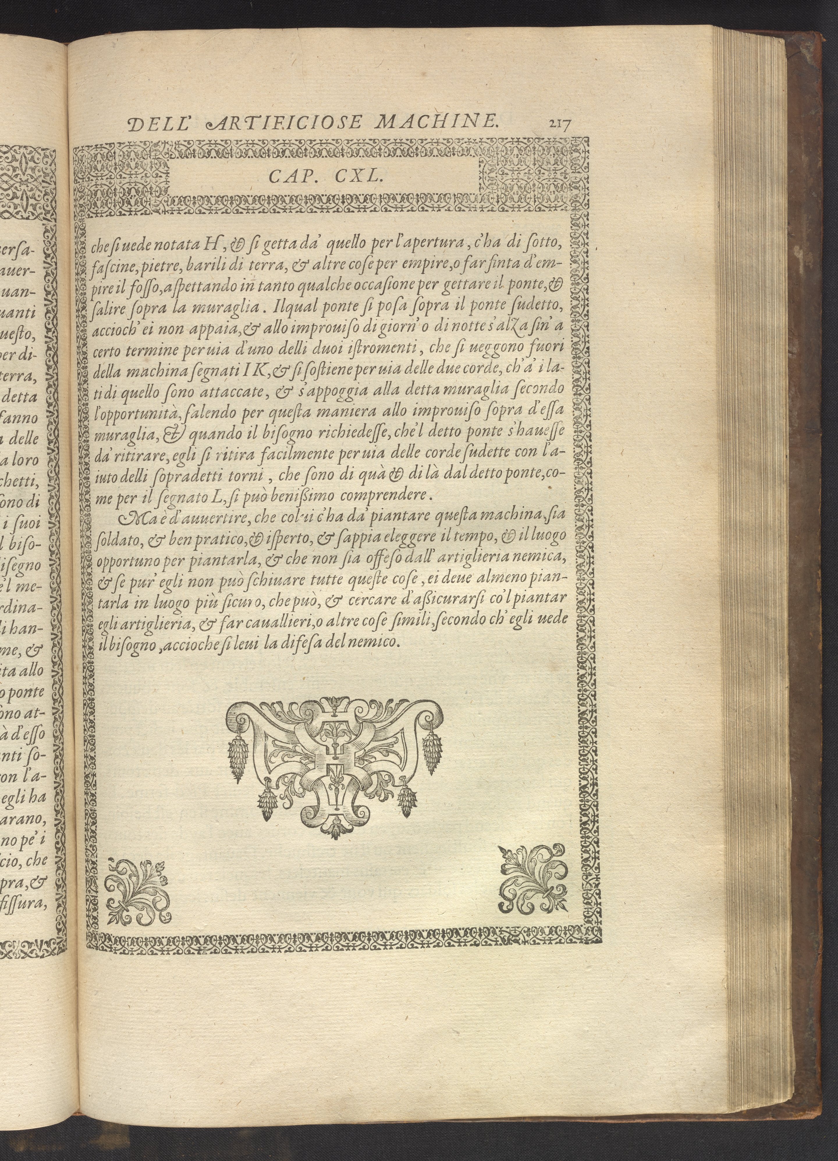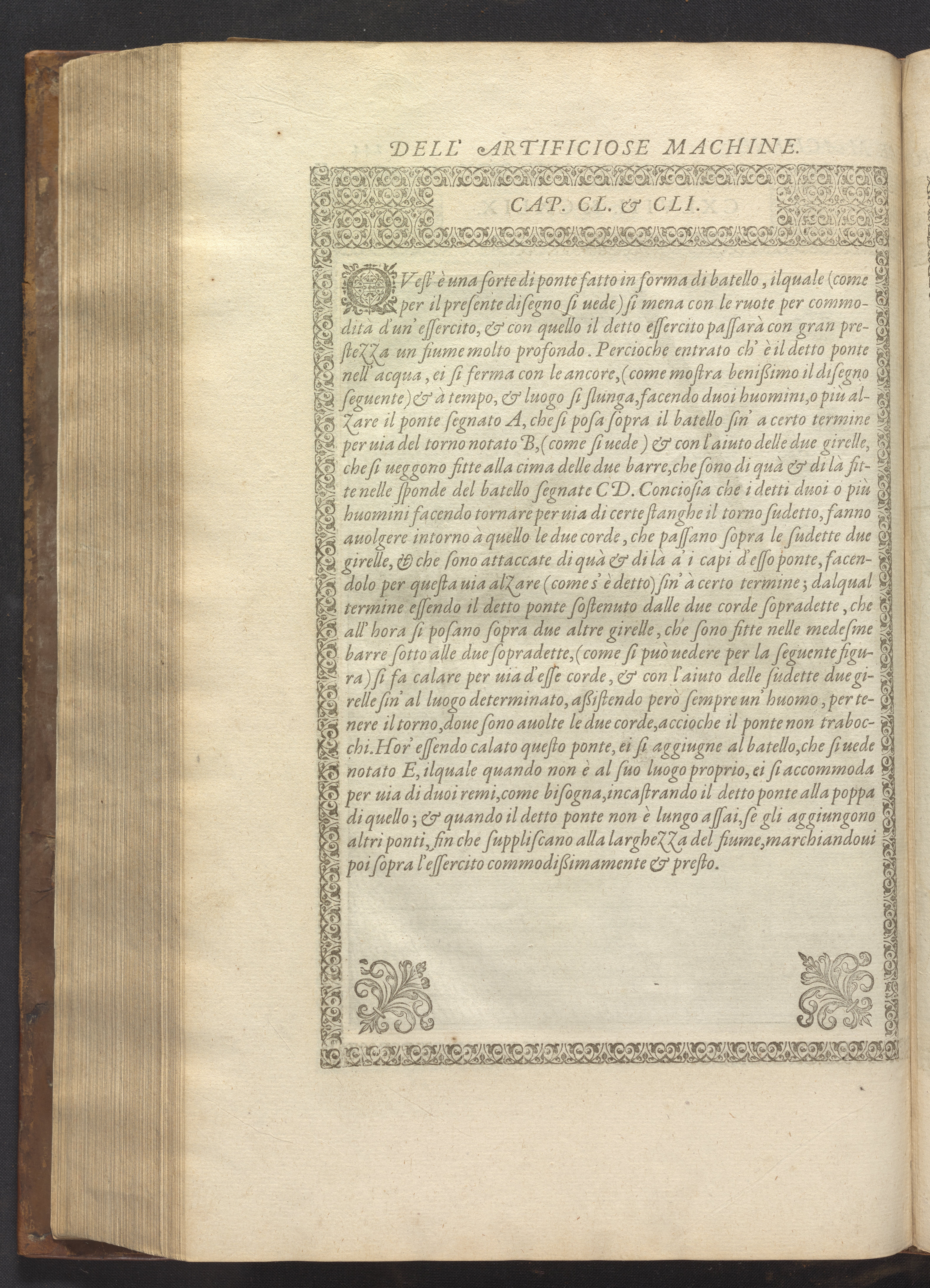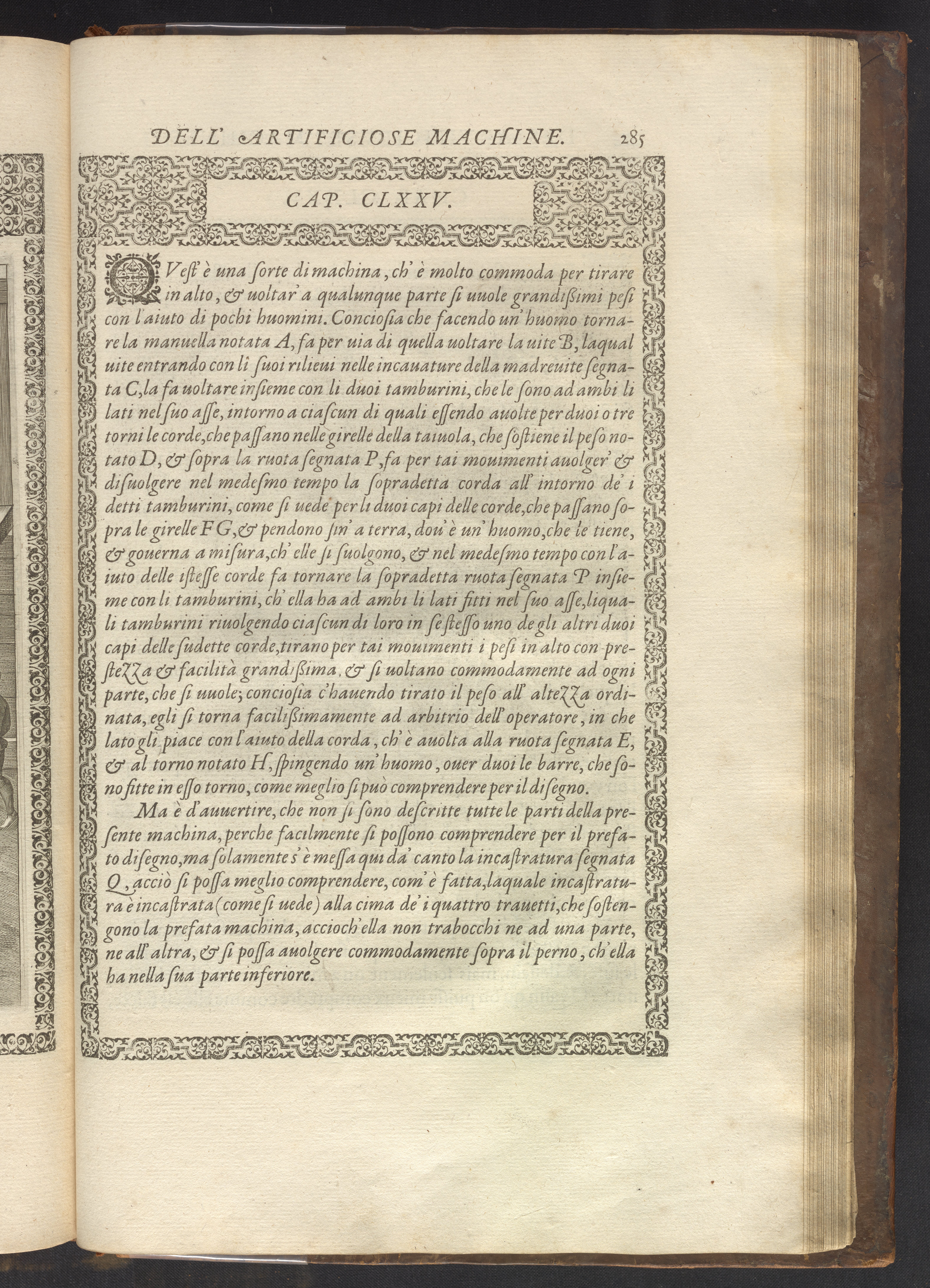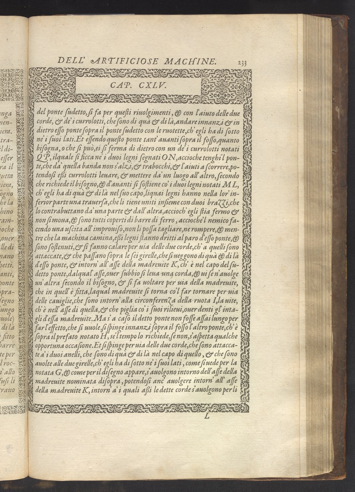 Le diverse et artificiose machine belongs to a new genre that emerged in the late 16th century, the "theatre of machines," which offered original mechanical solutions to the problems of everyday life. Ramelli's book includes ingenious designs to address water management, the milling of grain, excavation, the hauling of heavy objects, the siege and defense of cities, and even the entertainment of the social elite. Each of Ramelli's nearly two hundred machines is illustrated with a full-page or double-spread engraving accompanied by detailed textual descriptions of the mechanism in both Italian and French; Ramelli, an Italian military engineer, spent the latter half of his life and career in France as ingénieur du roi (engineer to the King) in the service of Henri III and Henri IV.