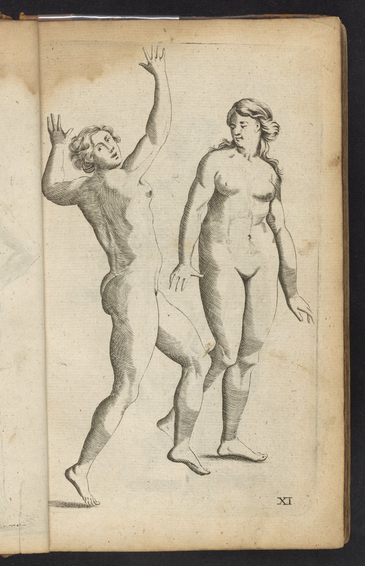 Salmon, William. “Plate XI: Artist Study of Standing Nude Females.” In Polygraphice, or, the Arts of Drawing, Engraving, Etching, Limning, Painting, Washing, Varnishing, Gilding, Colouring, Dying, Beautifying and Perfuming. London, England: Printed for Thomas Passinger at the Three Bibles on London Bridge and Thomas Sawbridge at the Three Flower de Luces in Little-Brittain, 1685. https://digital.sciencehistory.org/works/4b29b7195.