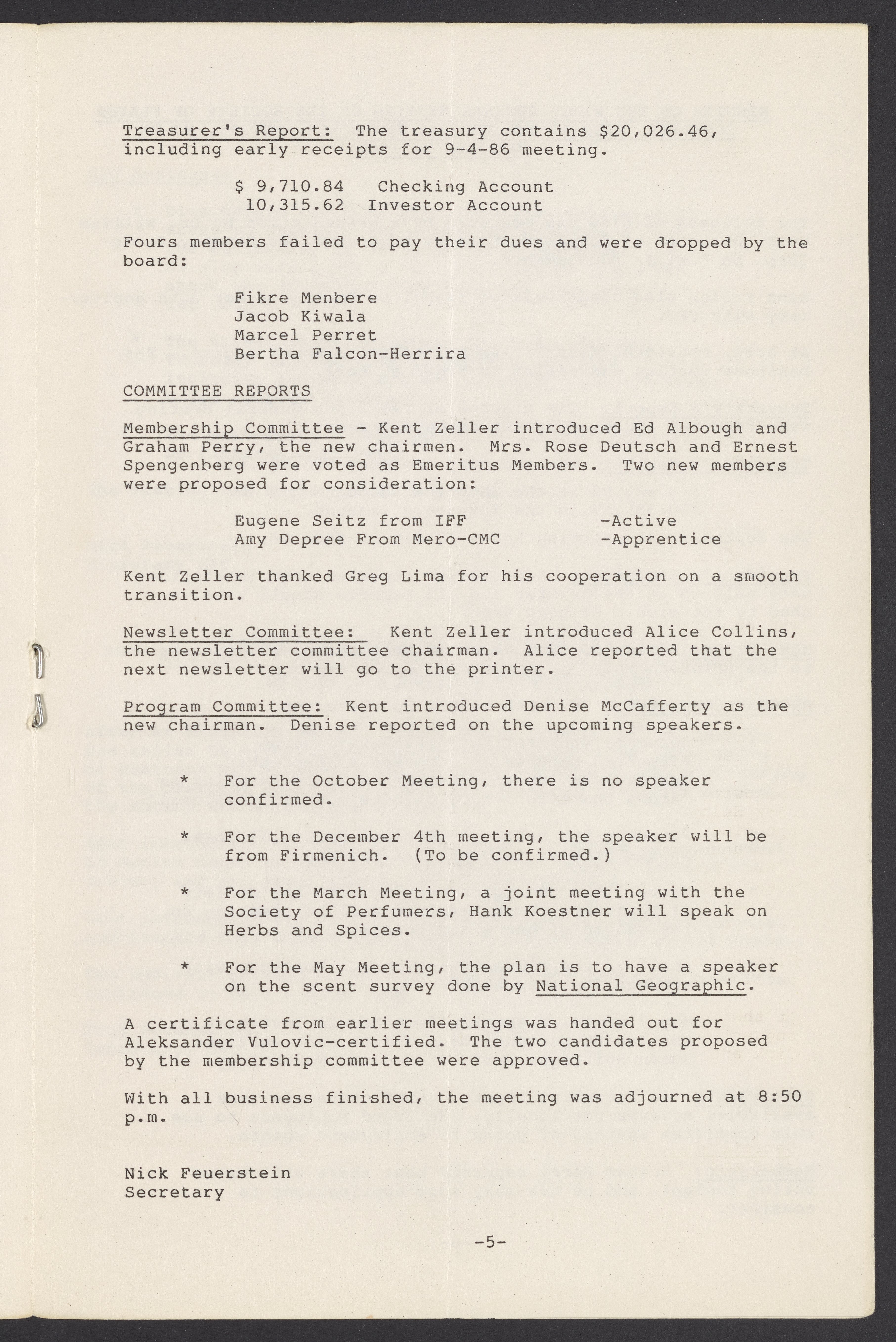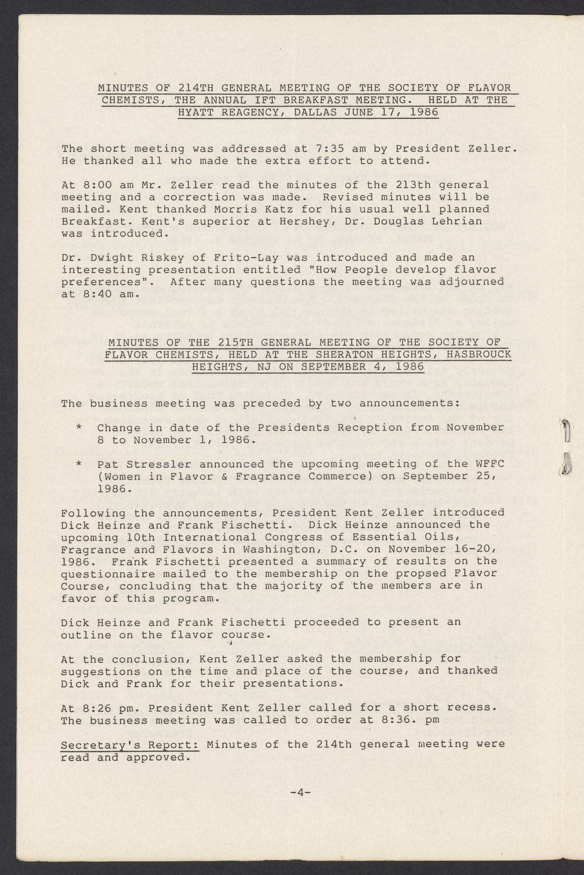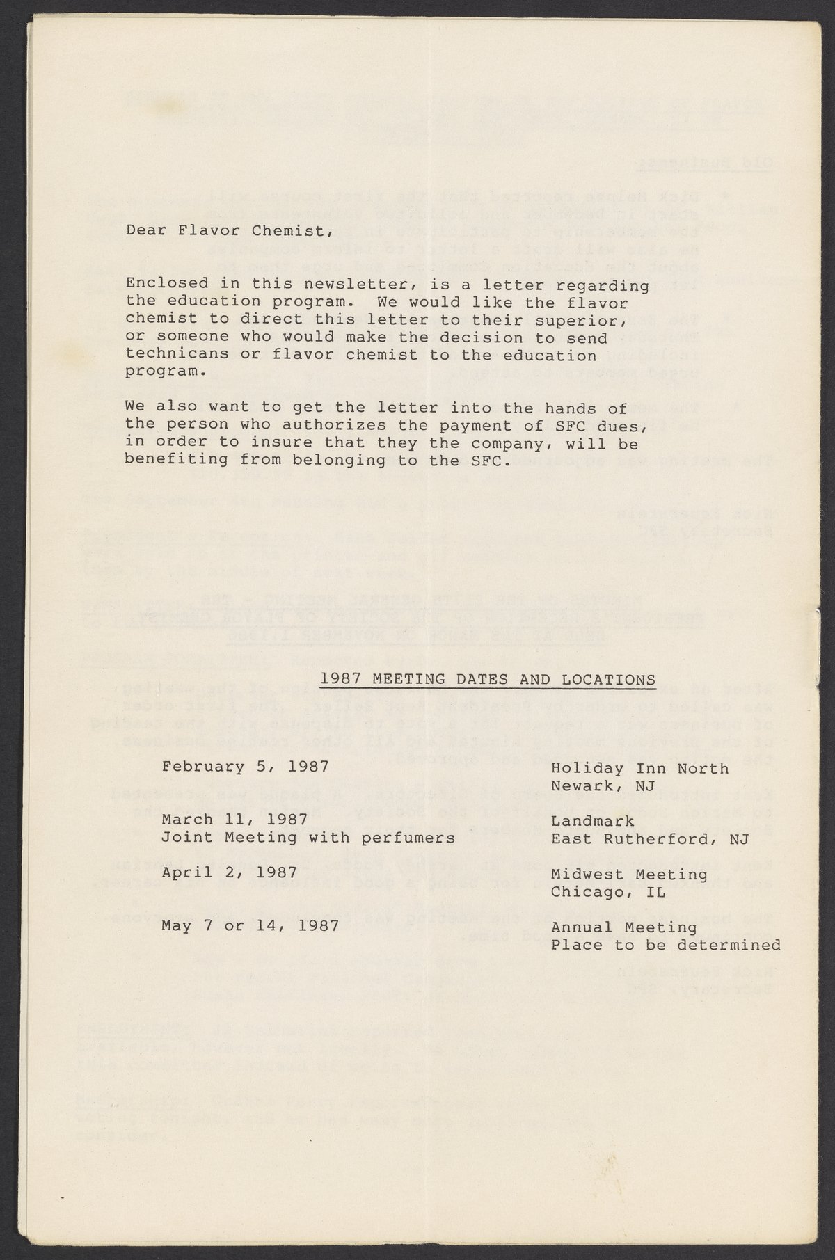 Society of Flavor Chemists. “Society of Flavor Chemists Newsletter, January 1987,” January 7, 1987. Society of Flavor Chemists Newsletters , Box 1, Folder 1. Science History Institute. Philadelphia. https://digital.sciencehistory.org/works/4cnqchv.