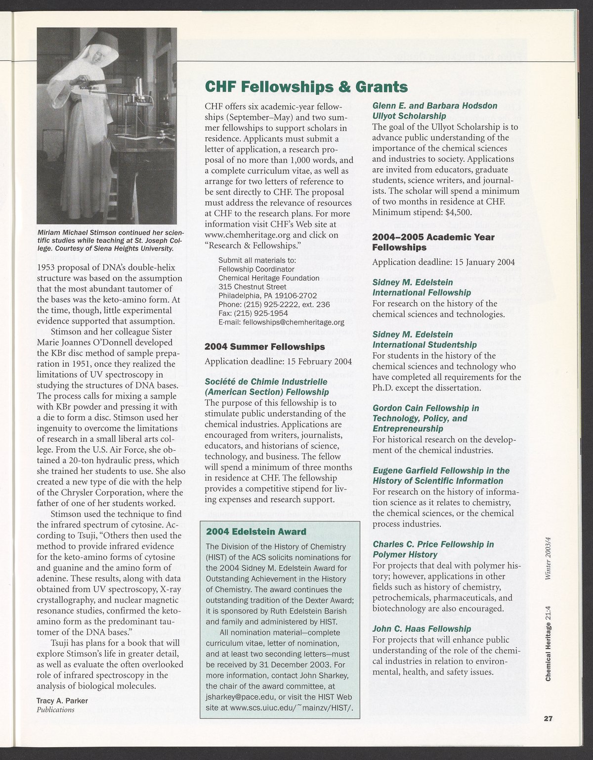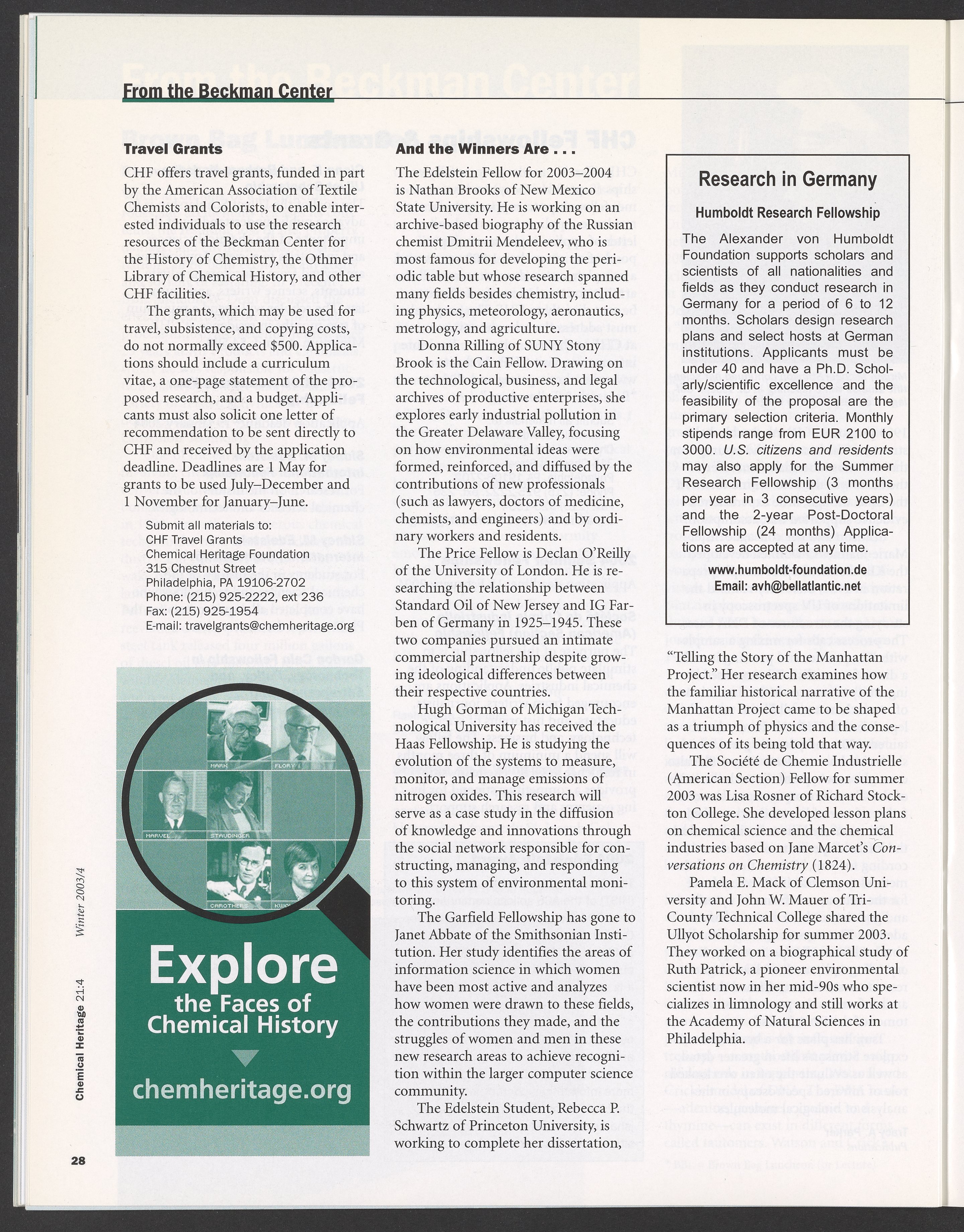 Chemical Heritage, Volume 21 Number 4