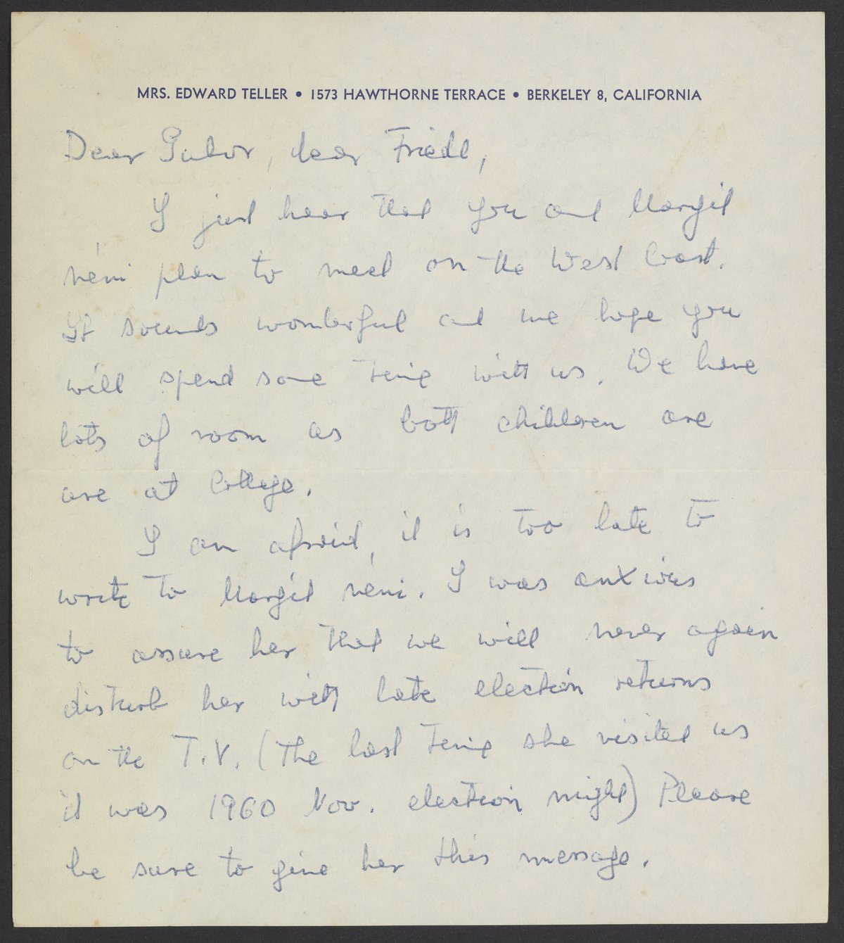 Small JPG1200 x 1340px — 191 KBLarge JPG2880 x 3216px — 1.2 MBFull-sized JPG3931 x 4390px — 2.2 MBOriginal fileTIFF — 3931 x 4390px — 49.4 MBHandwritten letter from Augusta Maria "Mici" Teller (1909-2000) to Gabor B. Levy (1913-1990) and his wife, Friedl Levy (1913-).